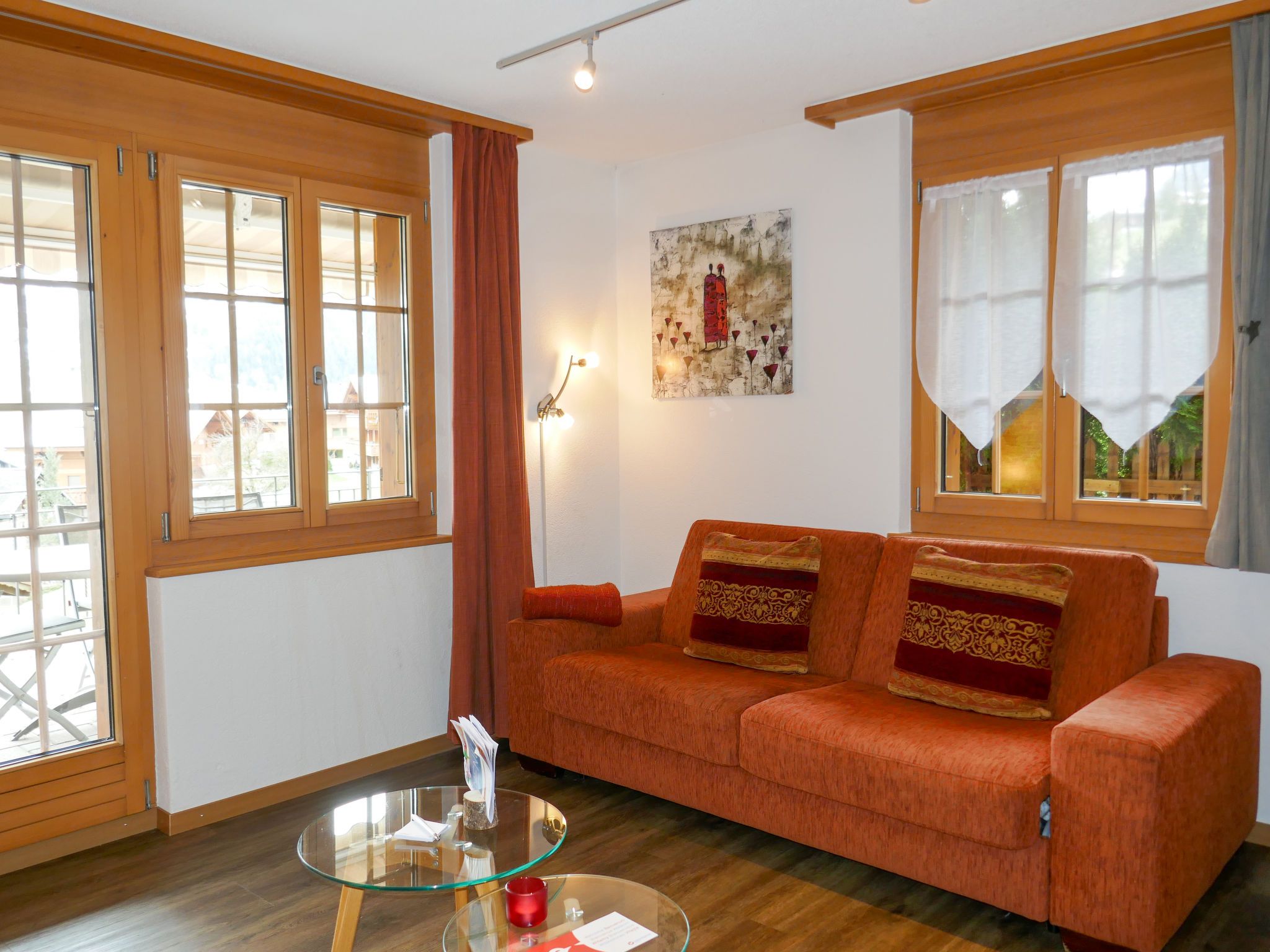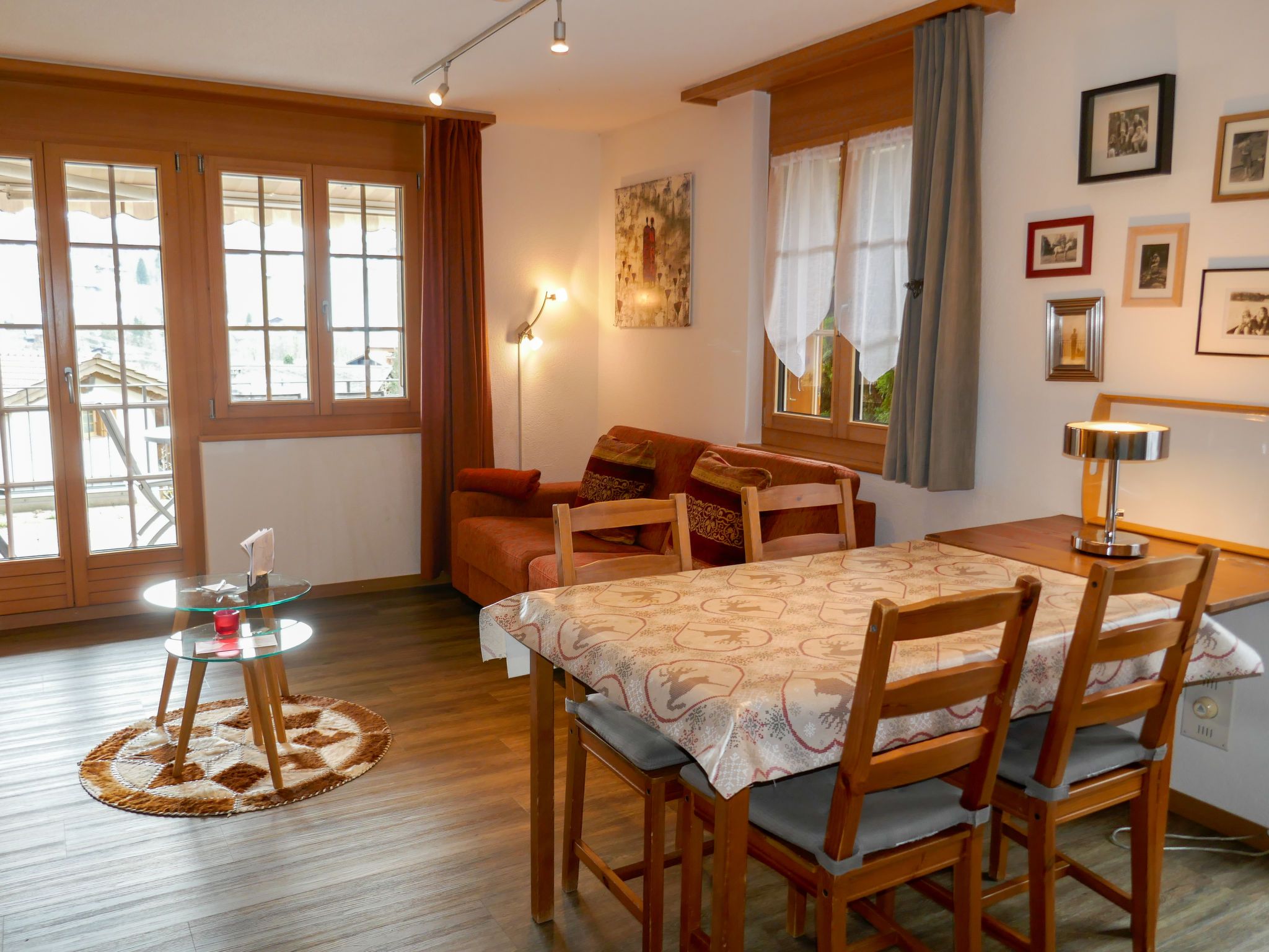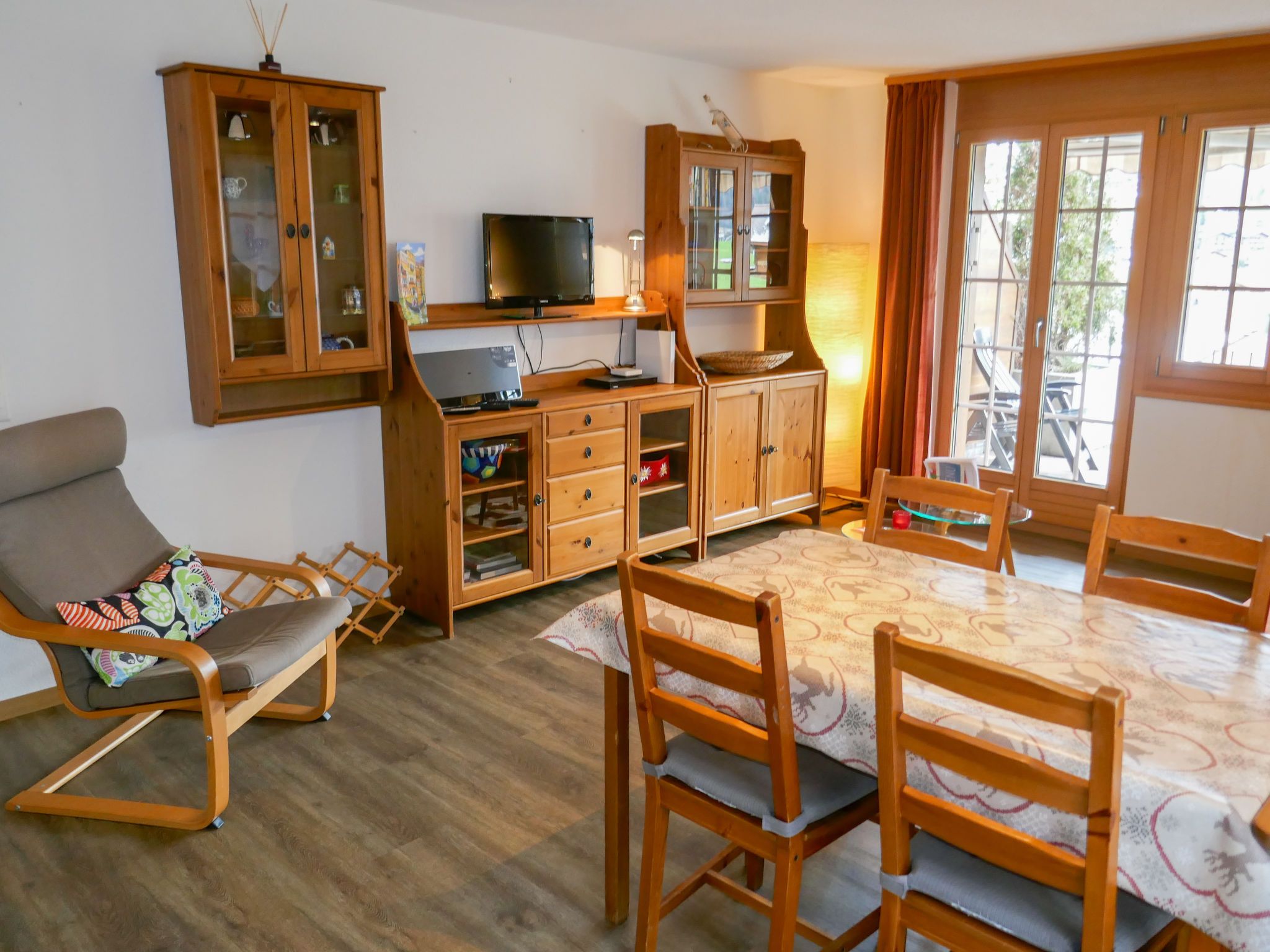 2-Zimmer-Wohnung 42 m2, im Erdgeschoss, Südwestlage. Modern und gemütlich eingerichtet: Wohn-/Schlafzimmer mit 1 Doppeldiwanbett (140 cm, Länge 200 cm), Internationale TV-Sender, Radio und CD. Ausgang zum Gartensitzplatz, Richtung Süden und Richtung Westen. 1 Zimmer mit 1 franz. Bett (140 cm, Länge 200 cm). Offene Küche (Backofen, Geschirrspüler, 4 Glaskeramikplatten, Toaster, Wasserkocher, Mikrowelle, elektrische Kaffeemaschine, Kapseln für die Kaffeemaschine (Nespresso) extra, Racletteofen, Fondue Set (Käse)). Dusche/WC. Fussbodenheizung. Parkettboden. Gartensitzplatz, Südlage und Westlage. Balkonmöbel. Sehr schöne Sicht auf die Berge, die Landschaft und Eigernordwand. Zur Verfügung: Haartrockner. Internet (WLAN, gratis). Parkplatz Nr. 22. Bitte beachten: Nichtraucher-Unterkunft. Maximal 1 Haustier/Hund erlaubt. Feuerlöscher.