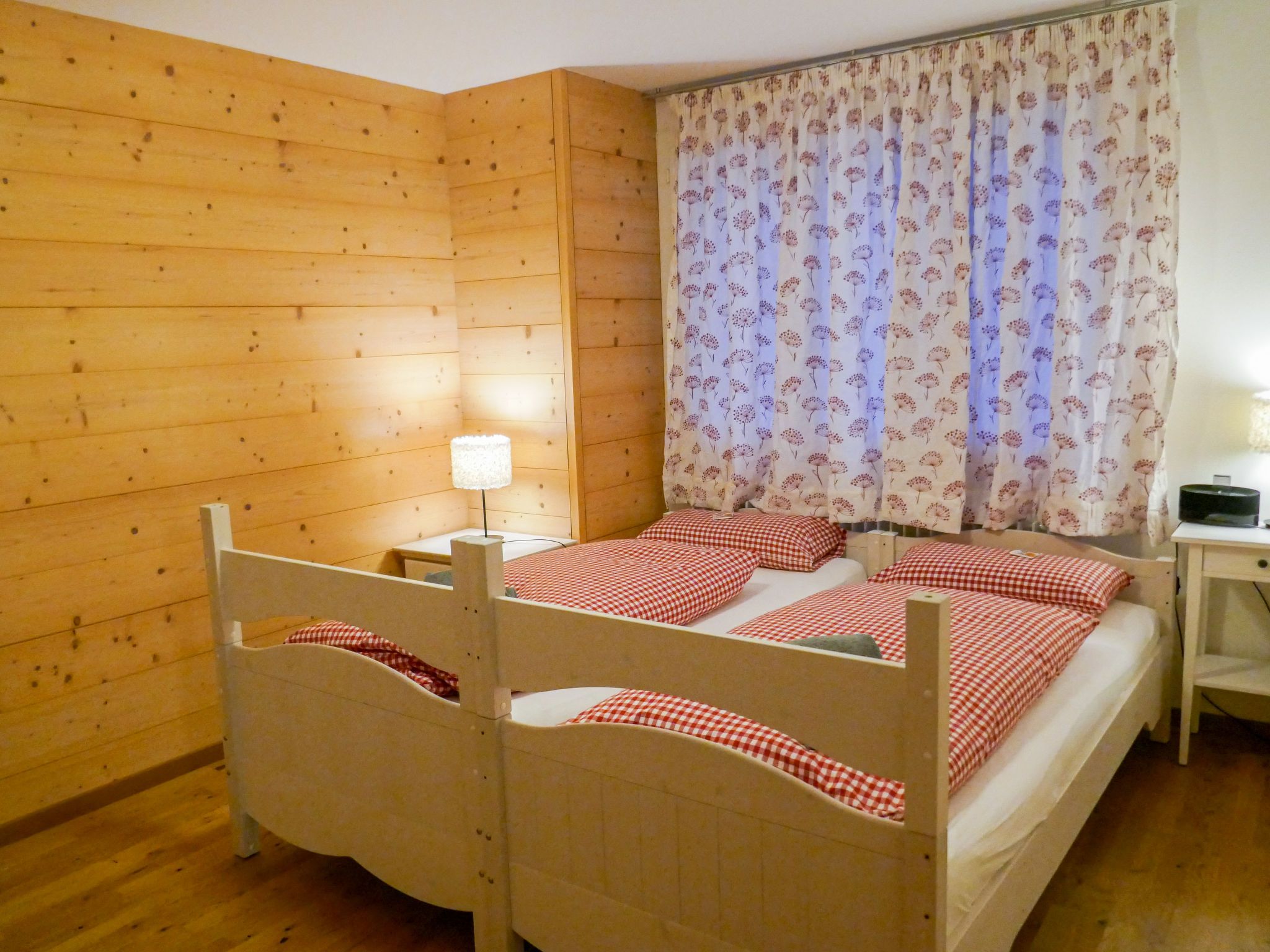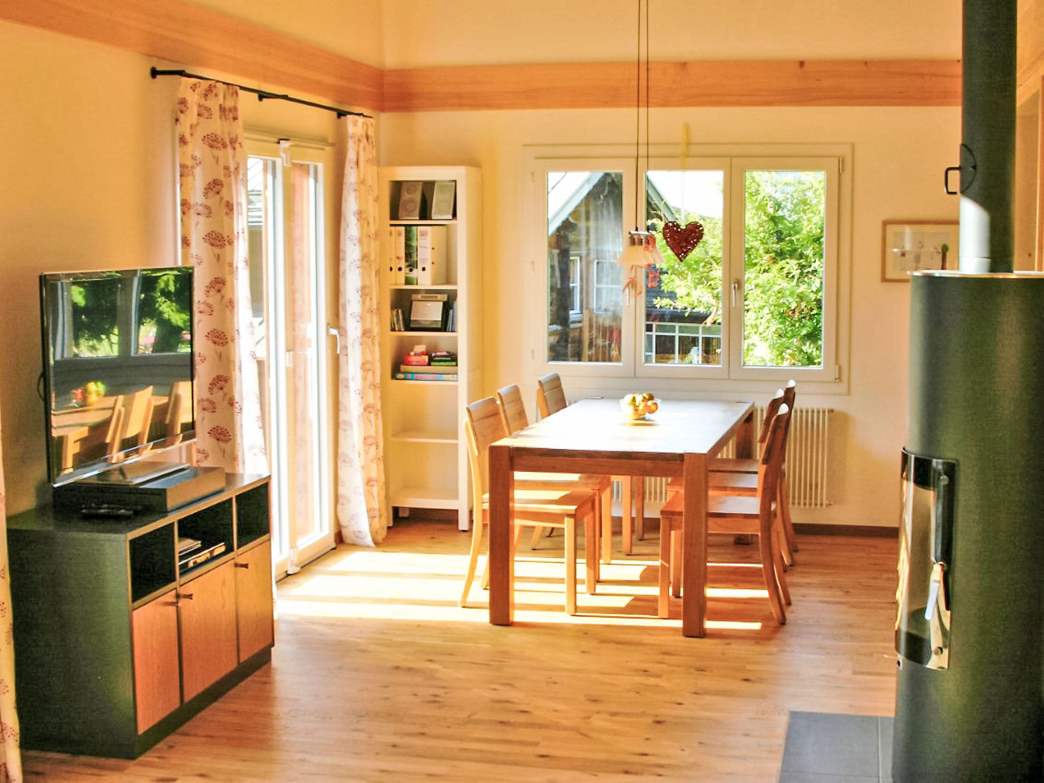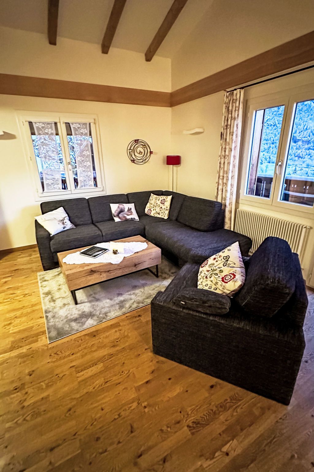 Chalet Ahornen, 4-Zimmer-Chalet 125 m2 auf 2 Stockwerken, Südlage. Schön und gemütlich eingerichtet: Wohn-/Esszimmer mit Schwedenofen und Sat-TV. Ausgang zum Balkon, Richtung Süden und Richtung Westen. 1 Zimmer mit 2 Betten (90 cm, Länge 200 cm). Offene Küche (Backofen, Geschirrspüler, 4 Glaskeramikplatten, Toaster, Wasserkocher, elektrische Kaffeemaschine, Kapseln für die Kaffeemaschine (Nespresso) extra, Racletteofen, Fondue Set (Käse)). Dusche/WC. Unteres Geschoss: 2 Doppelzimmer (2 x 90 cm, Länge 200 cm). Bad/WC. Holzdielenboden. Grosser Balkon 30 m2, Südlage und Westlage. Herrliche Sicht auf die Berge und Eigernordwand. Zur Verfügung: Waschmaschine, Kinderhochstuhl, Haartrockner, Holz (extra). Internet (WLAN, gratis). Bitte beachten: Nichtraucher-Haus. Eigener Eingang, Feuerlöscher.