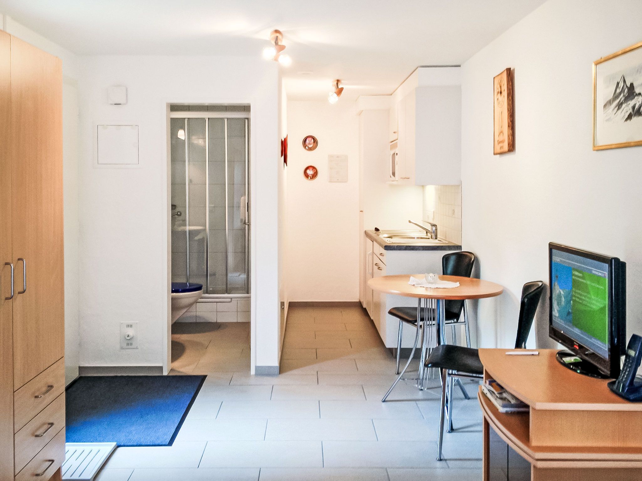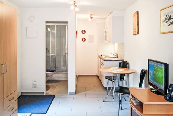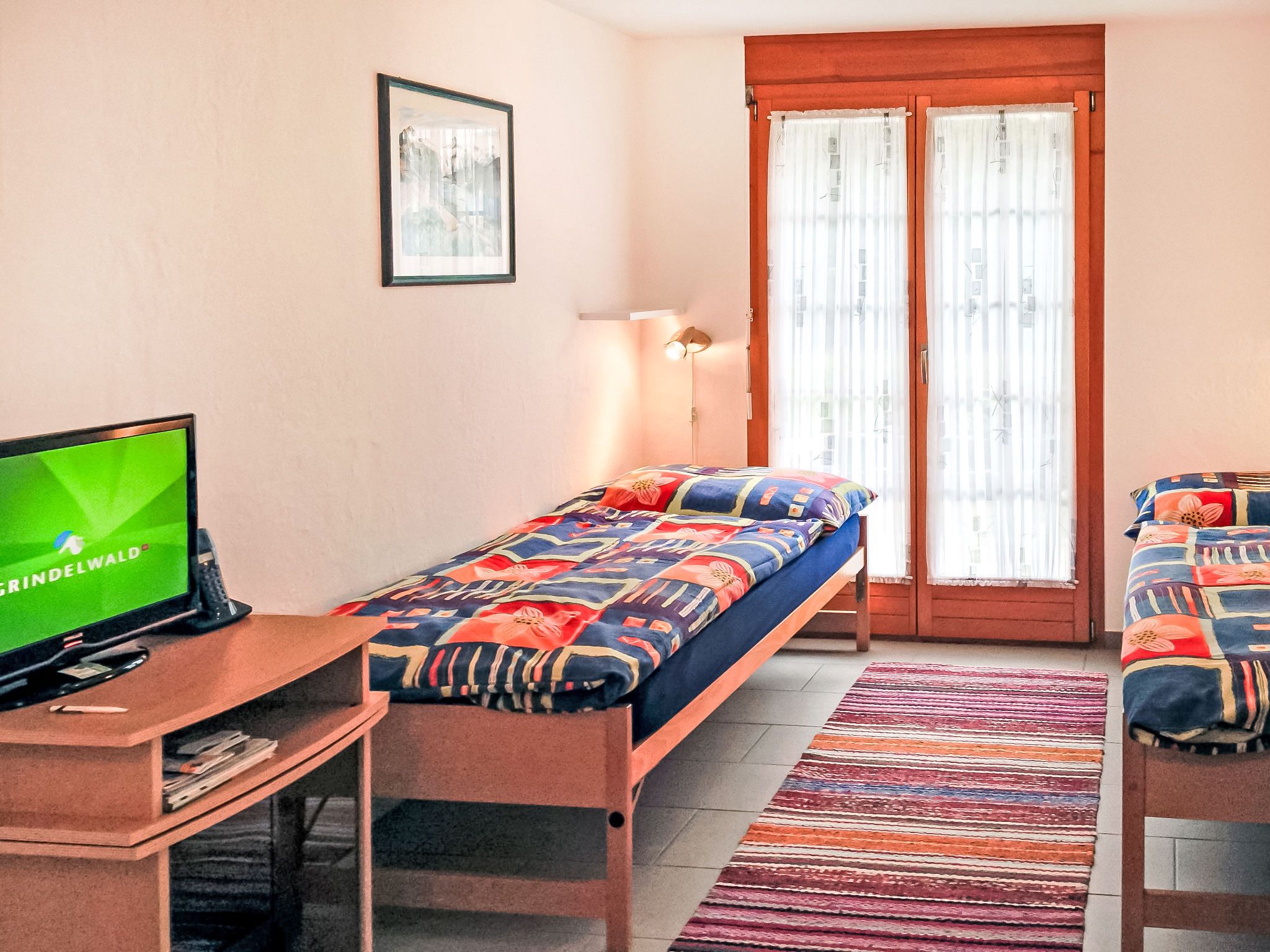 1-Zimmer-Wohnung 23 m2, im Erdgeschoss, Westlage. Zweckmässig eingerichtet: Wohn-/Schlafzimmer mit 2 Betten (90 cm, Länge 200 cm), Kabel-TV (Flachbildschirm). Ausgang zum Gartensitzplatz, Richtung Süden und Richtung Westen. Offene Küche (2 Glaskeramikplatten, Mikrowelle, elektrische Kaffeemaschine, Racletteofen, Fondue Set (Käse)). Dusche/WC. Natursteinboden. Gartensitzplatz, Südlage und Westlage. Terrassenmöbel, Gartengrill, Liegestühle. Schöne Sicht auf die Berge und Eiger. Zur Verfügung: Telefon (extra). Internet (Wireless LAN, gratis). Parkplatz (überdacht). Bitte beachten: Nichtraucher-Unterkunft. Eigener Eingang, Feuerlöscher.