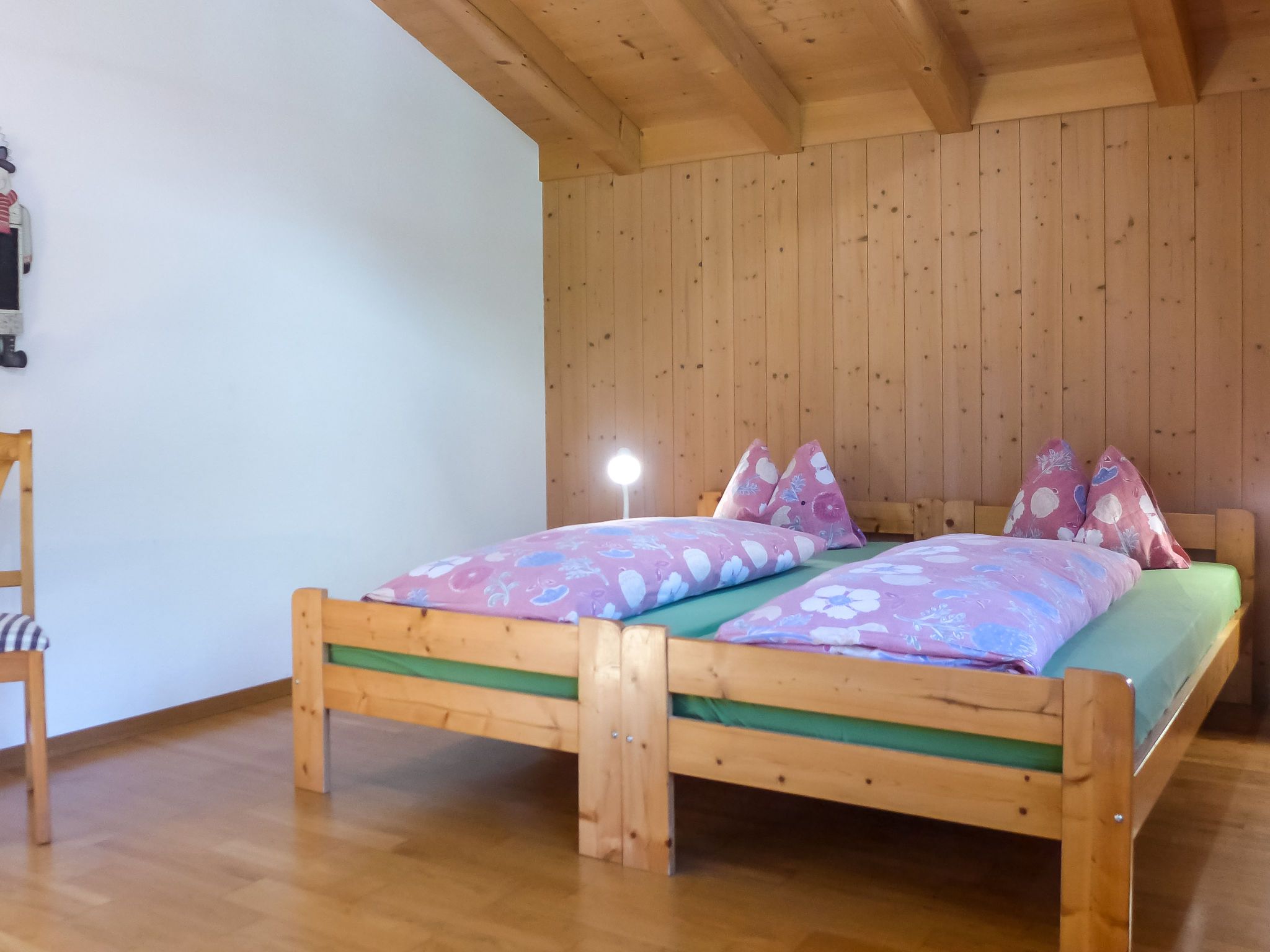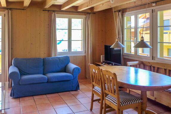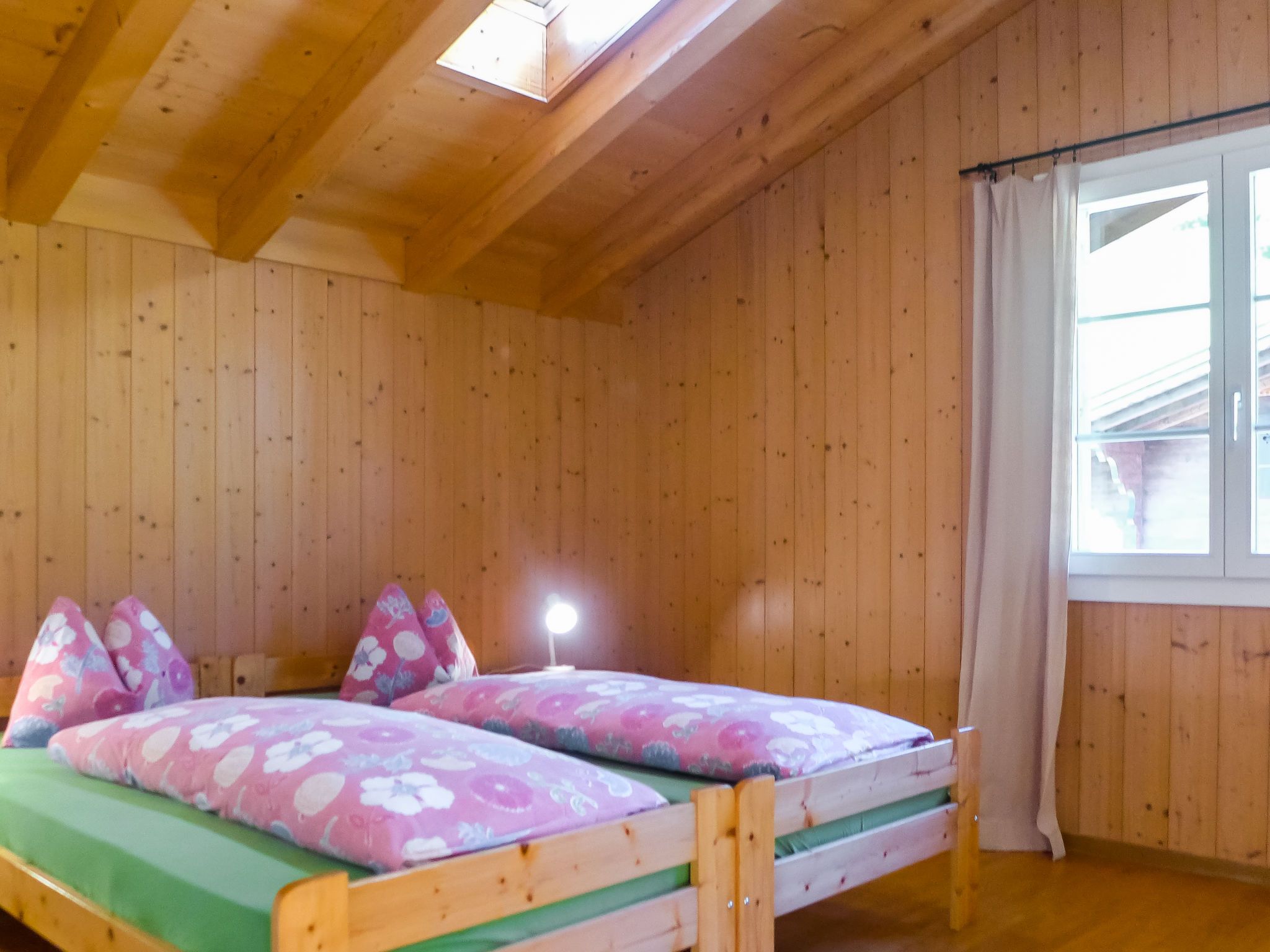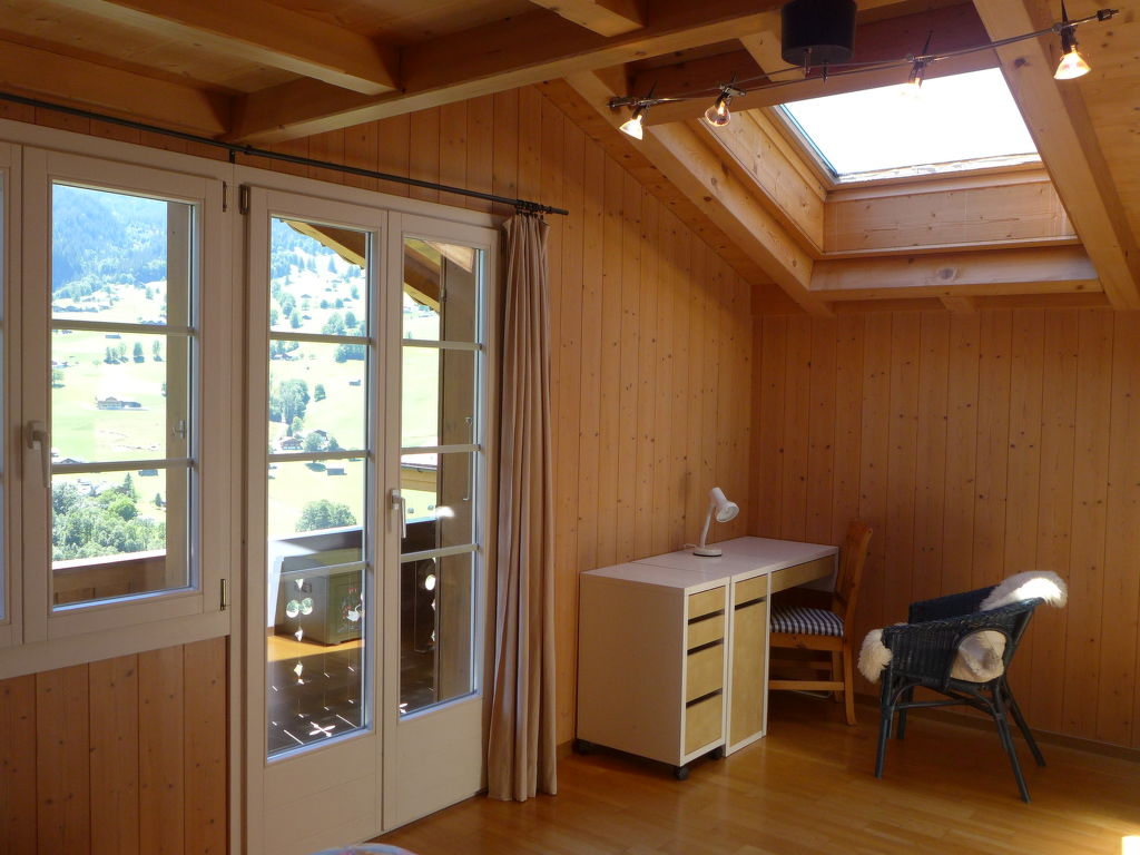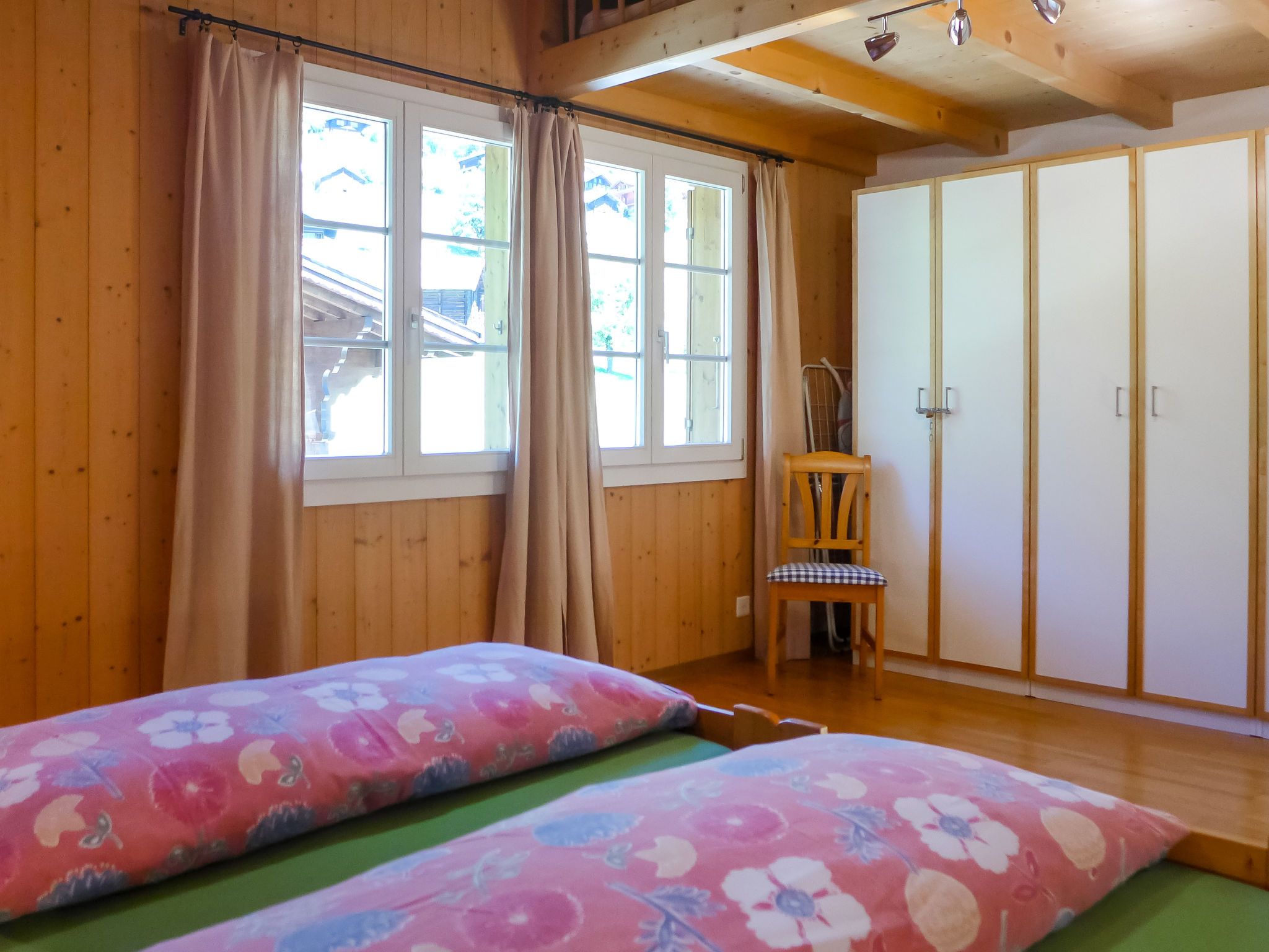 Stähli, 3-Zimmer-Wohnung 102 m2, im erhöhten Erdgeschoss, Südwestlage. Gemütlich eingerichtet: Wohn-/Esszimmer mit 1 Diwanbett, Schwedenofen und Kabel-TV (Flachbildschirm). Ausgang zur Terrasse. Offene Küche (Backofen, Geschirrspüler, 4 Glaskeramikplatten, Toaster, Wasserkocher, elektrische Kaffeemaschine, Kapseln für die Kaffeemaschine (Nespresso) extra, Racletteofen, Fondue Set (Käse)). Dusche/WC. Boiler (300 Liter). Obergeschoss: 1 Zimmer mit Dachfenster mit 2 Betten (90 cm, Länge 200 cm). 1 Zimmer mit Dachfenster mit 1 Doppelbett (2 x 90 cm, Länge 200 cm). Ausgang zum Balkon. Bad/WC. Fussbodenheizung. Holzdielenboden, Natursteinboden. Terrasse 20 m2, Südlage und Westlage. Balkonmöbel. Herrliche Sicht auf die Berge und Eigernordwand. Zur Verfügung: Bügeleisen, Haartrockner, Holz (extra). Internet (Wireless LAN, gratis). Garage (1 Auto) beim Haus, Höhe 210 cm, Breite 245 cm. Bitte beachten: Nichtraucher-Unterkunft. Eigener Eingang, Feuerlöscher.