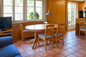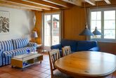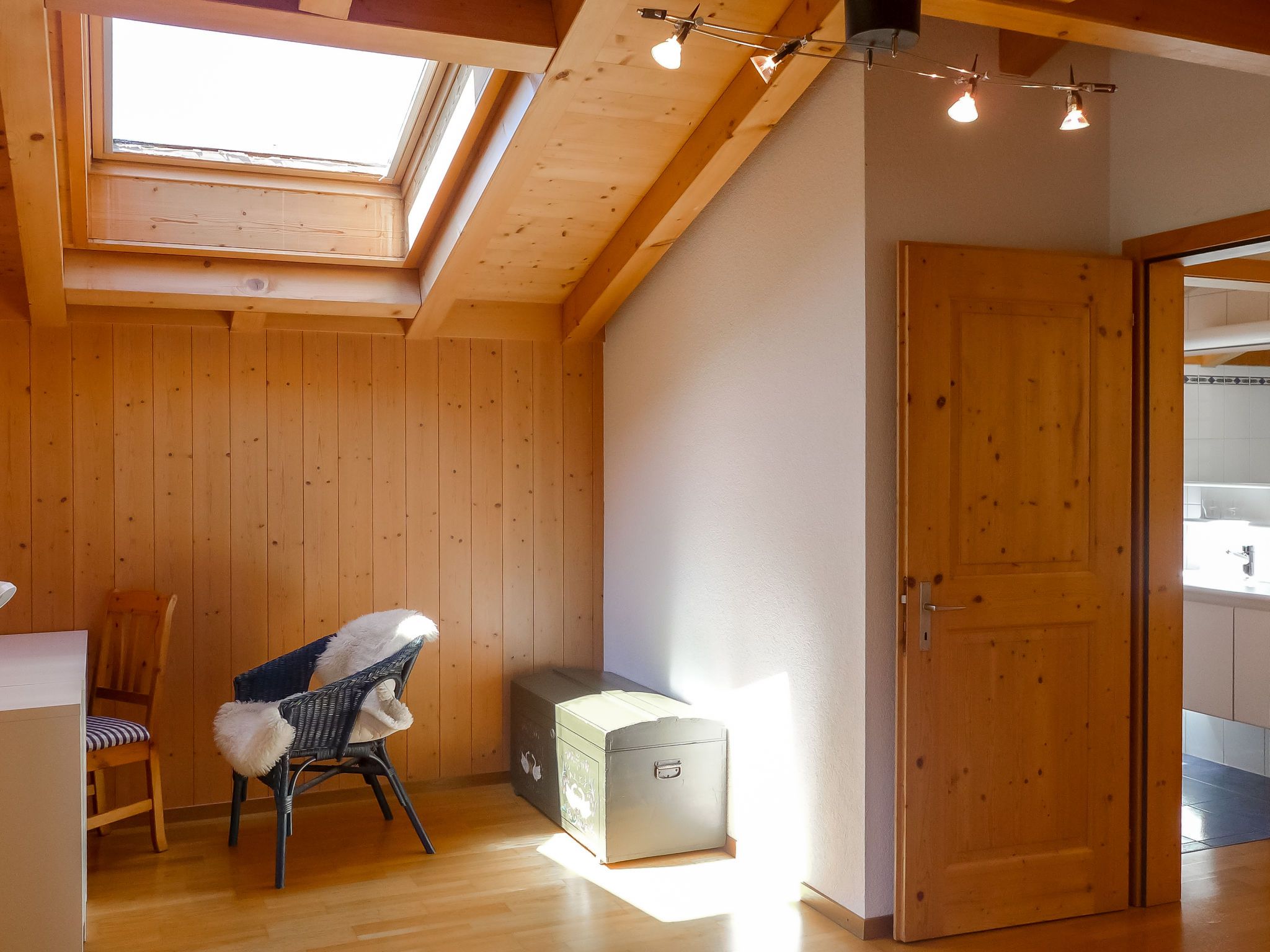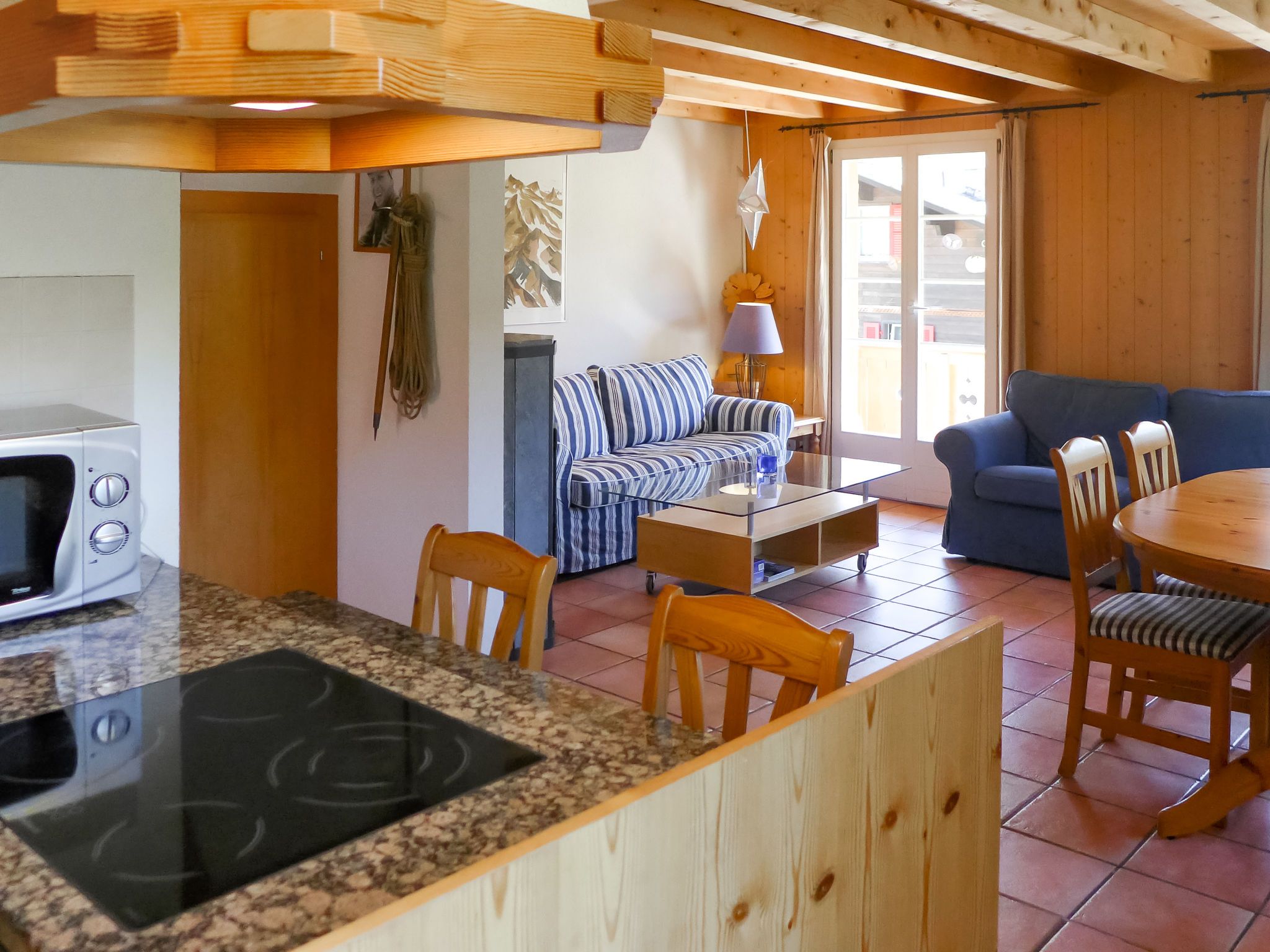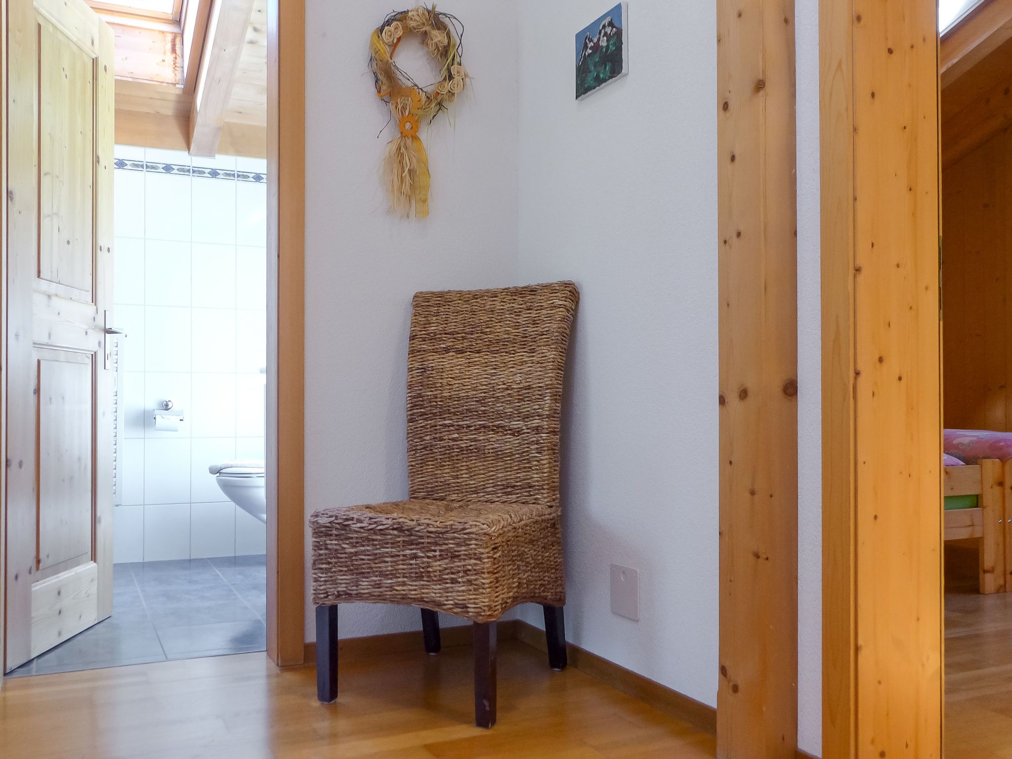 Stähli, 3-Zimmer-Wohnung 102 m2, im erhöhten Erdgeschoss, Südwestlage. Gemütlich eingerichtet: Wohn-/Esszimmer mit 1 Diwanbett, Schwedenofen und Kabel-TV (Flachbildschirm). Ausgang zur Terrasse. Offene Küche (Backofen, Geschirrspüler, 4 Glaskeramikplatten, Toaster, Wasserkocher, elektrische Kaffeemaschine, Kapseln für die Kaffeemaschine (Nespresso) extra, Racletteofen, Fondue Set (Käse)). Dusche/WC. Boiler (300 Liter). Obergeschoss: 1 Zimmer mit Dachfenster mit 2 Betten (90 cm, Länge 200 cm). 1 Zimmer mit Dachfenster mit 1 Doppelbett (2 x 90 cm, Länge 200 cm). Ausgang zum Balkon. Bad/WC. Fussbodenheizung. Holzdielenboden, Natursteinboden. Terrasse 20 m2, Südlage und Westlage. Balkonmöbel. Herrliche Sicht auf die Berge und Eigernordwand. Zur Verfügung: Bügeleisen, Haartrockner, Holz (extra). Internet (Wireless LAN, gratis). Garage (1 Auto) beim Haus, Höhe 210 cm, Breite 245 cm. Bitte beachten: Nichtraucher-Unterkunft. Eigener Eingang, Feuerlöscher.
