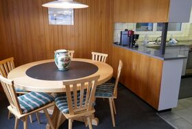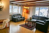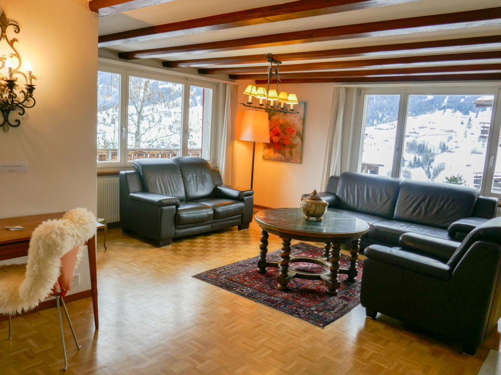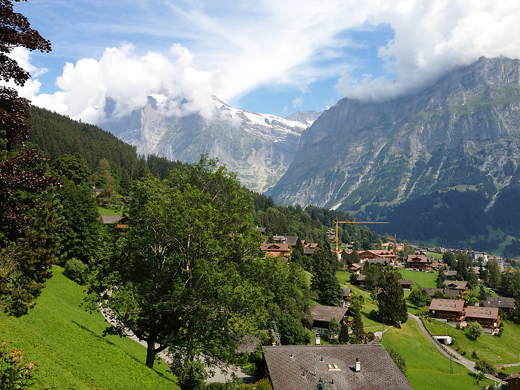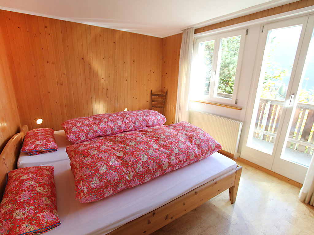 4-Zimmer-Wohnung 100 m2, im erhöhten Erdgeschoss, Südostlage. Geräumig und hell, rustikal und gemütlich eingerichtet: offenes Wohn-/Esszimmer mit offenem Kamin, Essecke, Digital-TV, Stereoanlage und DVD. Ausgang zum Balkon, Richtung Süden und Richtung Westen. 1 grosses Zimmer mit 2 Betten (90 cm, Länge 200 cm), Waschbecken. 1 Zimmer mit 1 x 2 Etagenbetten (90 cm, Länge 200 cm), Waschbecken. 1 Zimmer mit 1 Doppelbett (2 x 80 cm, Länge 200 cm). Ausgang zum Balkon. Grosse, offene Küche 20 m2 (Backofen, Geschirrspüler, 4 Glaskeramikplatten, Toaster, Wasserkocher, Mikrowelle, Tiefkühler, elektrische Kaffeemaschine, Racletteofen, Fondue Set (Käse)) mit Durchreiche. Bad/WC, Dusche, sep. WC. Parkettboden. Grosse Terrasse 30 m2, Südlage und Westlage. Balkonmöbel. Herrliche Panoramasicht auf die Berge, das Tal und Wetterhorn und Eigernordwand. Zur Verfügung: Waschmaschine, Wäschetrockner, Holz (extra). Internet (WLAN, gratis). Parkplatz (1 Auto) beim Haus. Bitte beachten: Nichtraucher-Unterkunft. Eigener Eingang, Feuerlöscher.