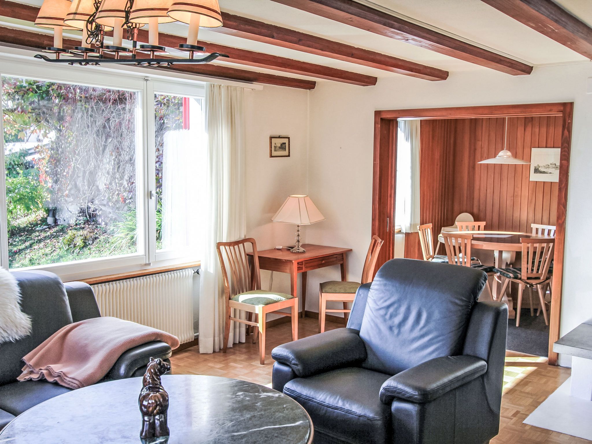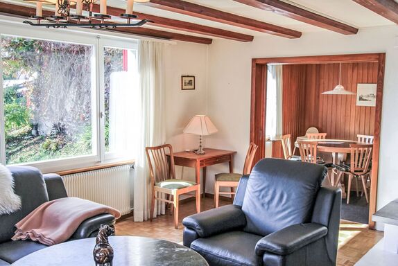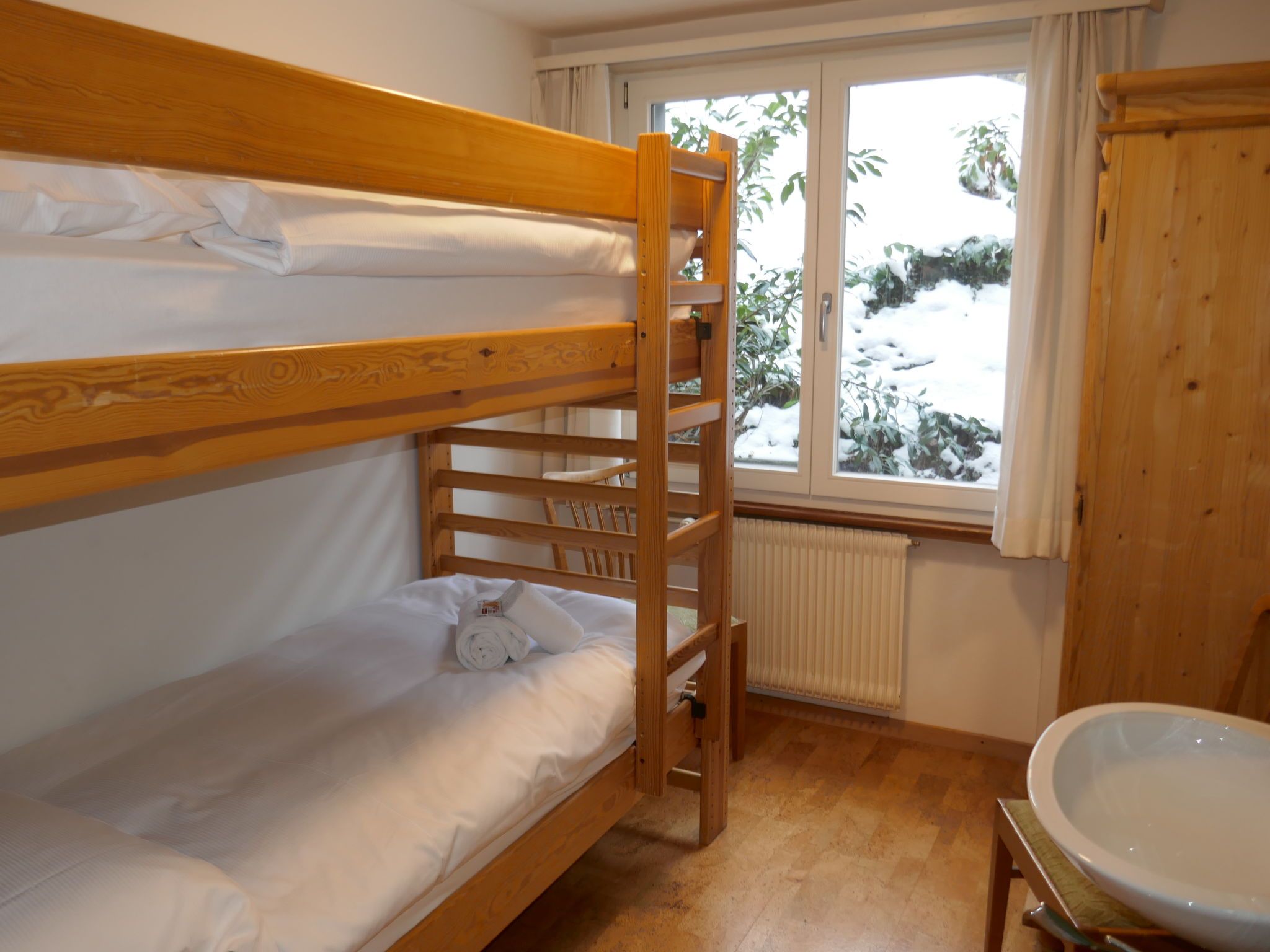 4-Zimmer-Wohnung 100 m2, im erhöhten Erdgeschoss, Südostlage. Gemütlich eingerichtet: Wohn-/Esszimmer mit offenem Kamin, Digital-TV, Stereoanlage und DVD. Ausgang zur Terrasse, Richtung Süden und Richtung Westen. 2 Zimmer, jedes Zimmer mit 2 Betten (90 cm, Länge 200 cm). 1 Zimmer mit 1 x 2 Etagenbetten (90 cm, Länge 200 cm). Küche 20 m2 (Backofen, Geschirrspüler, 4 Glaskeramikplatten, Toaster, Wasserkocher, Mikrowelle, elektrische Kaffeemaschine, Racletteofen, Fondue Set (Käse)) mit Durchreiche. Bad/WC, Dusche, sep. WC. Parkettboden, Natursteinboden. Grosse Terrasse 30 m2, Südlage und Westlage. Balkonmöbel. Herrliche Sicht auf die Berge, das Tal und Wetterhorn und Eigernordwand. Zur Verfügung: Waschmaschine, Wäschetrockner, Holz (extra). Internet (WLAN, gratis). Parkplatz (1 Auto) beim Haus. Bitte beachten: Nichtraucher-Unterkunft. Eigener Eingang, Feuerlöscher.