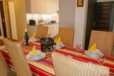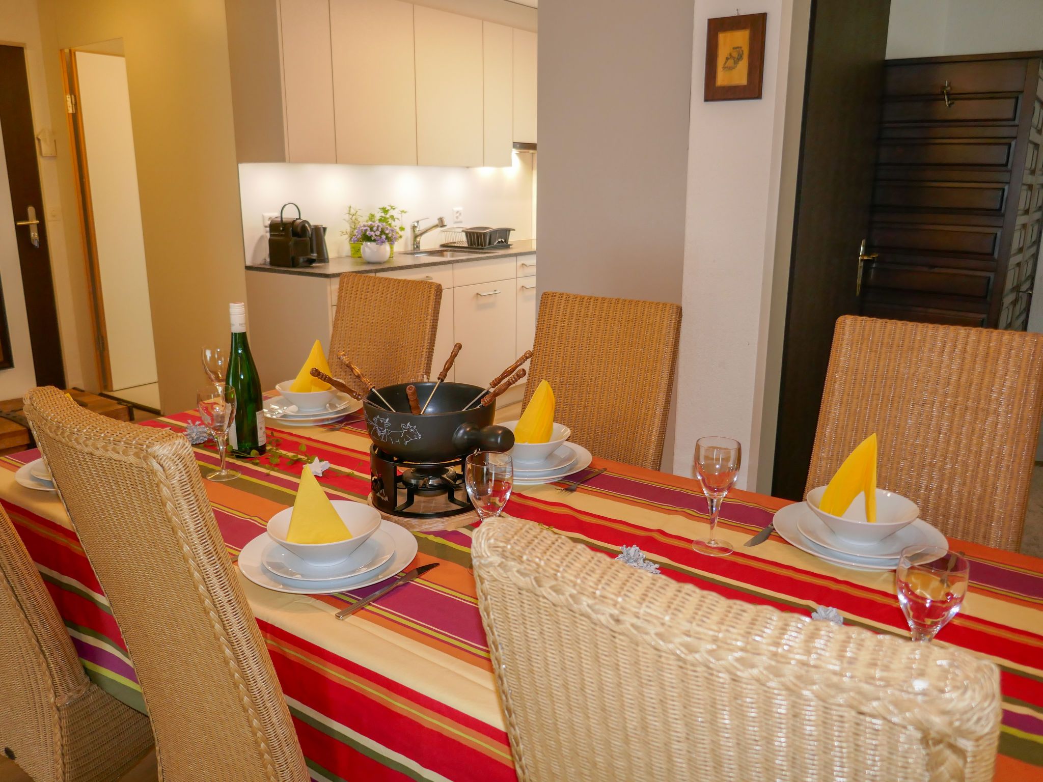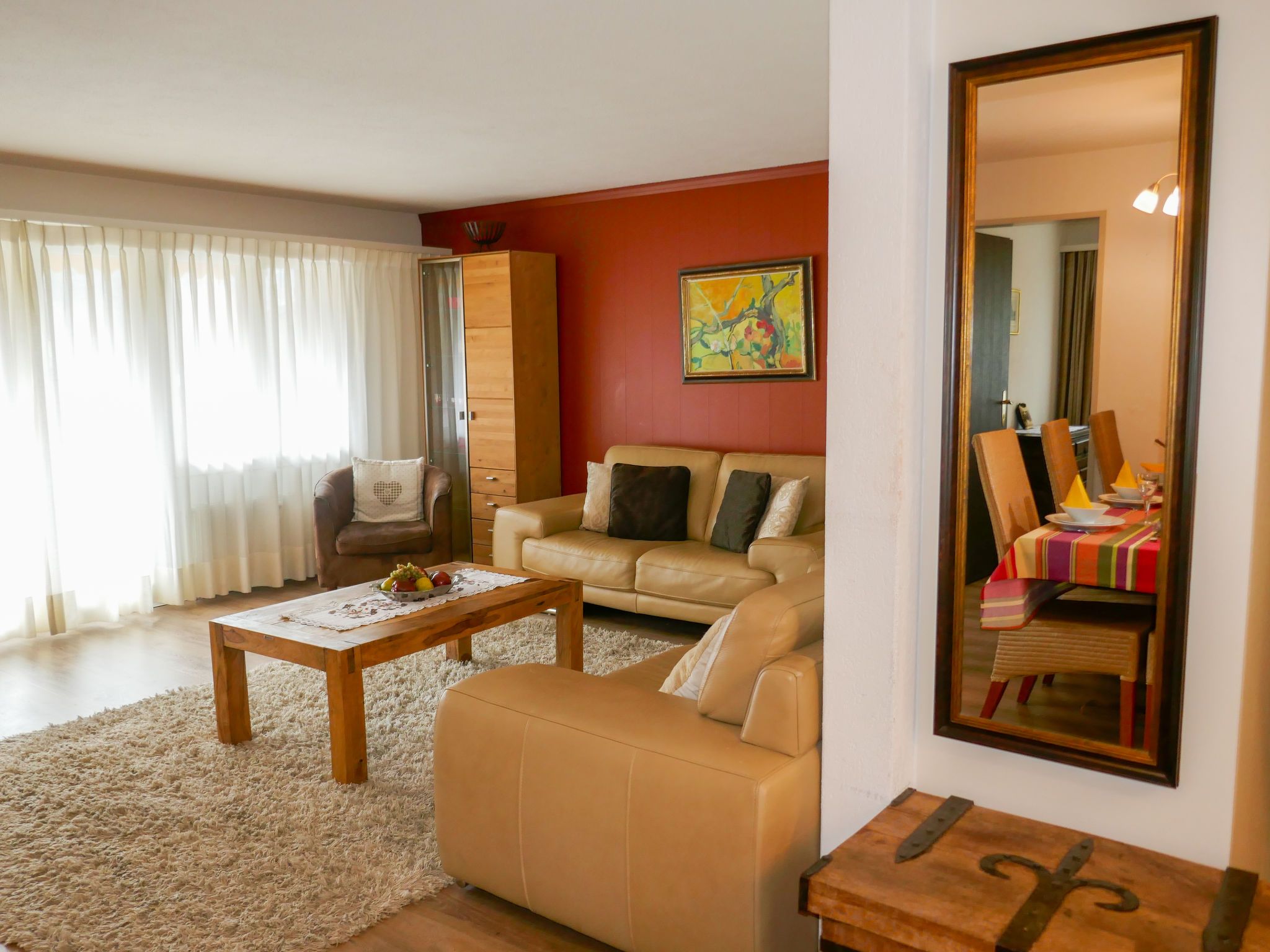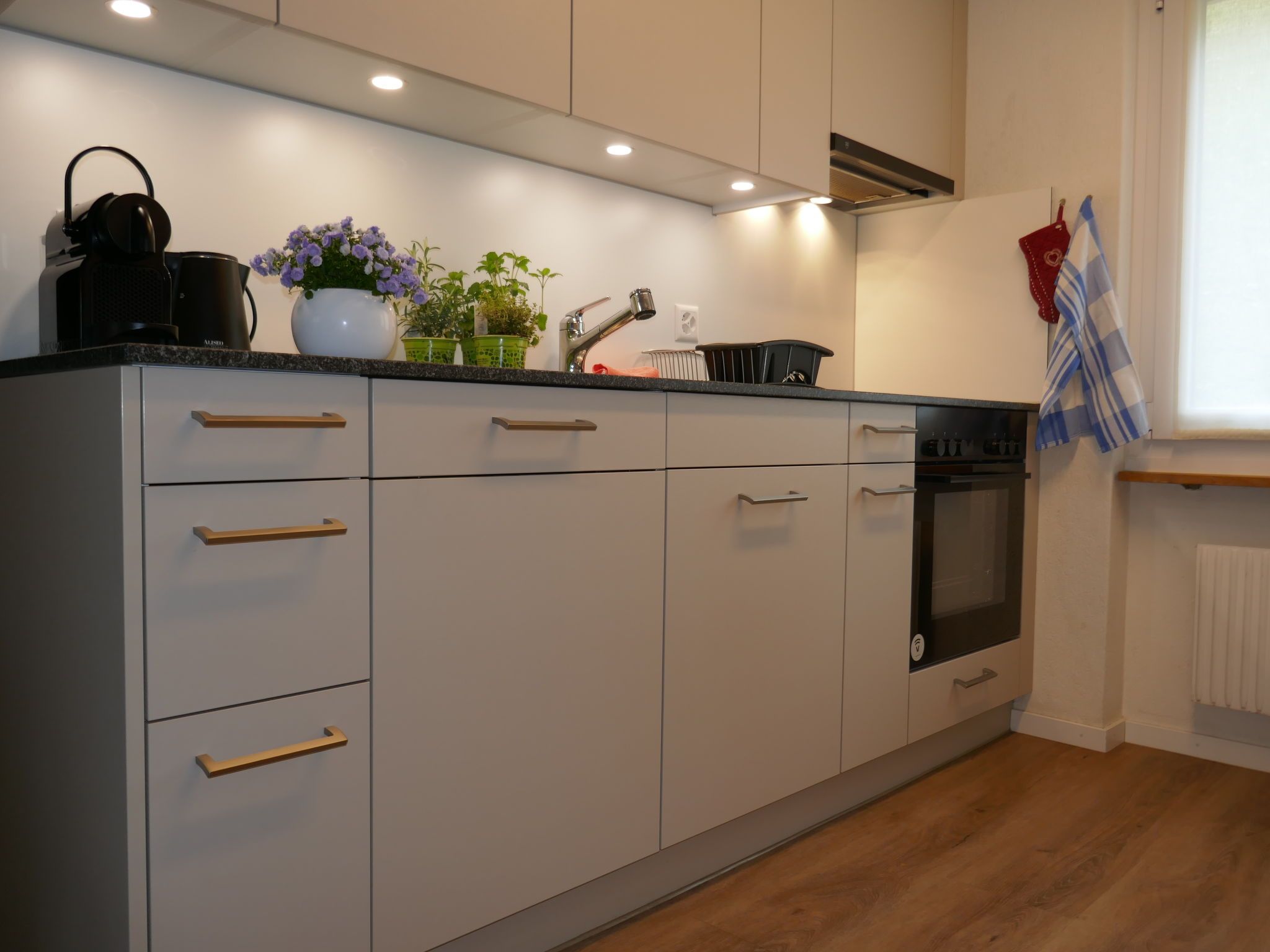 4-Zimmer-Wohnung 100 m2, im erhöhten Erdgeschoss, Südlage. Komfortabel und gemütlich eingerichtet: Wohn-/Esszimmer mit Sat-TV (Flachbildschirm). Ausgang zum Balkon. 2 Zimmer, jedes Zimmer mit 2 Betten (90 cm, Länge 200 cm). 1 Zimmer mit 1 Bett (90 cm, Länge 200 cm). Offene Küche (Backofen, Geschirrspüler, 4 Glaskeramikplatten, Wasserkocher, Mikrowelle, elektrische Kaffeemaschine, Kapseln für die Kaffeemaschine (Nespresso) extra, Racletteofen, Fondue Set (Chinoise, Käse)). Bad/WC. Parkettboden. Grosser Balkon, Südlage und Westlage. Balkonmöbel. Herrliche Sicht auf die Berge und Eigernordwand. Zur Verfügung: Haartrockner. Internet (Wireless LAN, gratis). Parkplatz beim Haus. Bitte beachten: Nichtraucher-Unterkunft. Feuerlöscher.