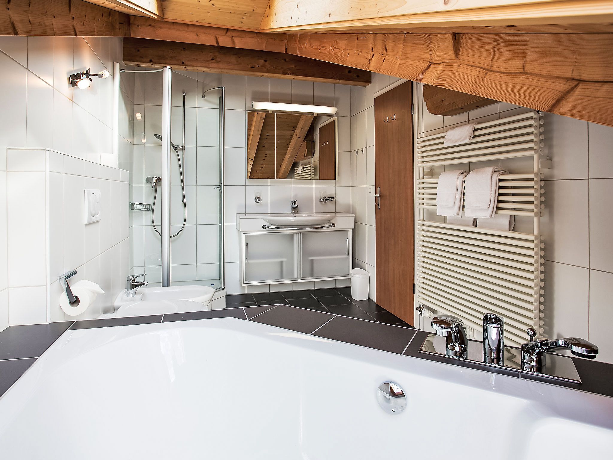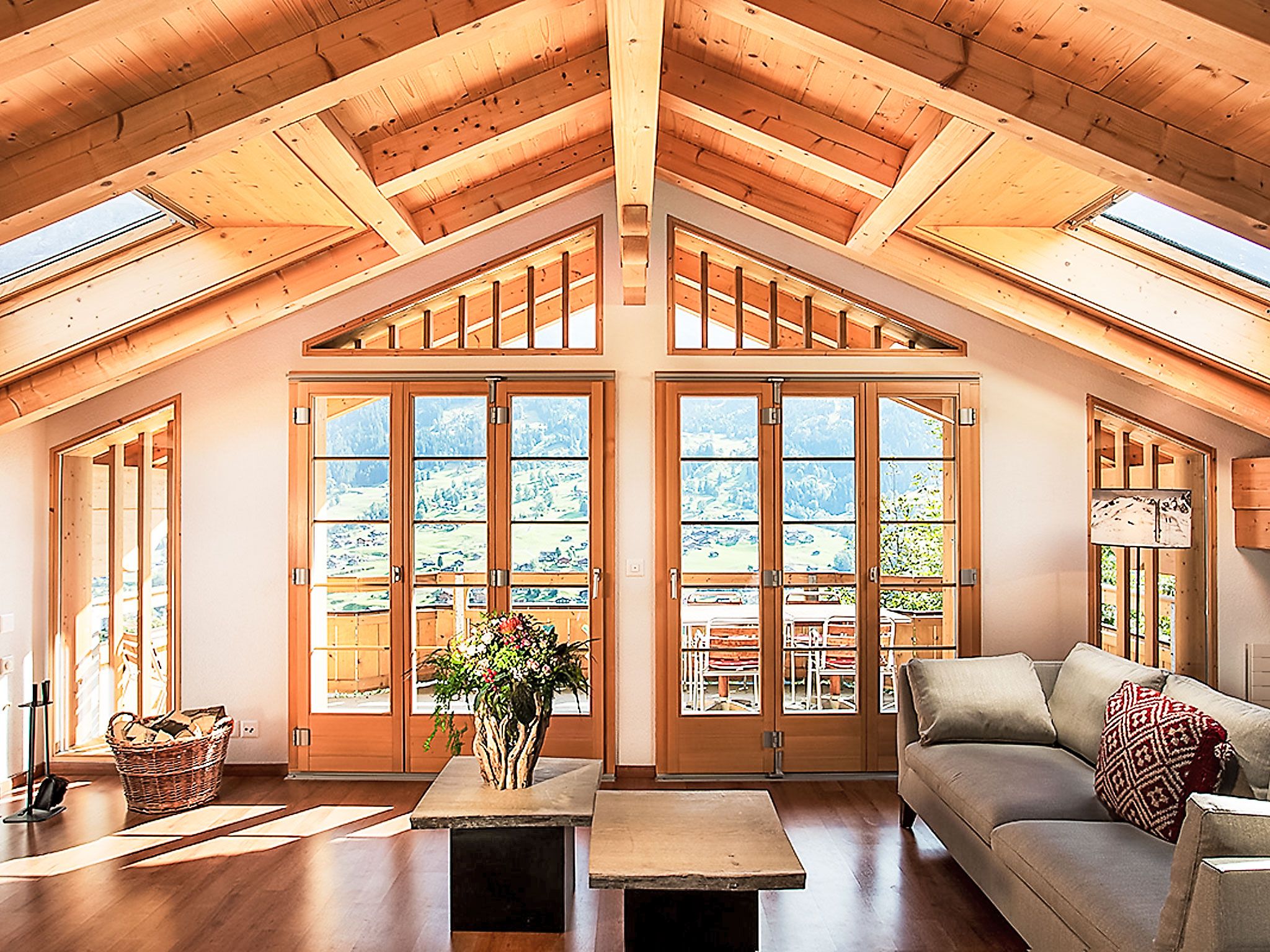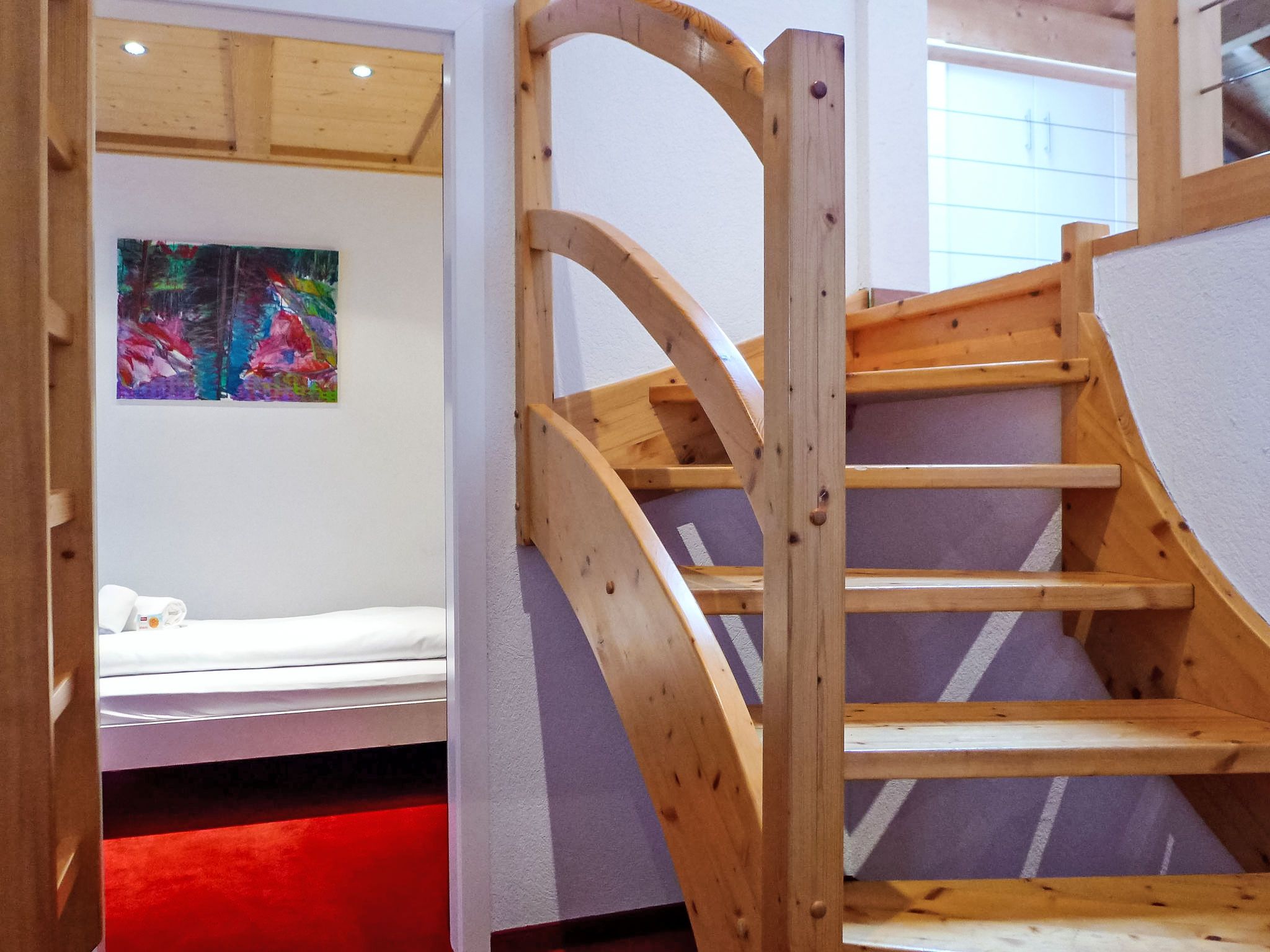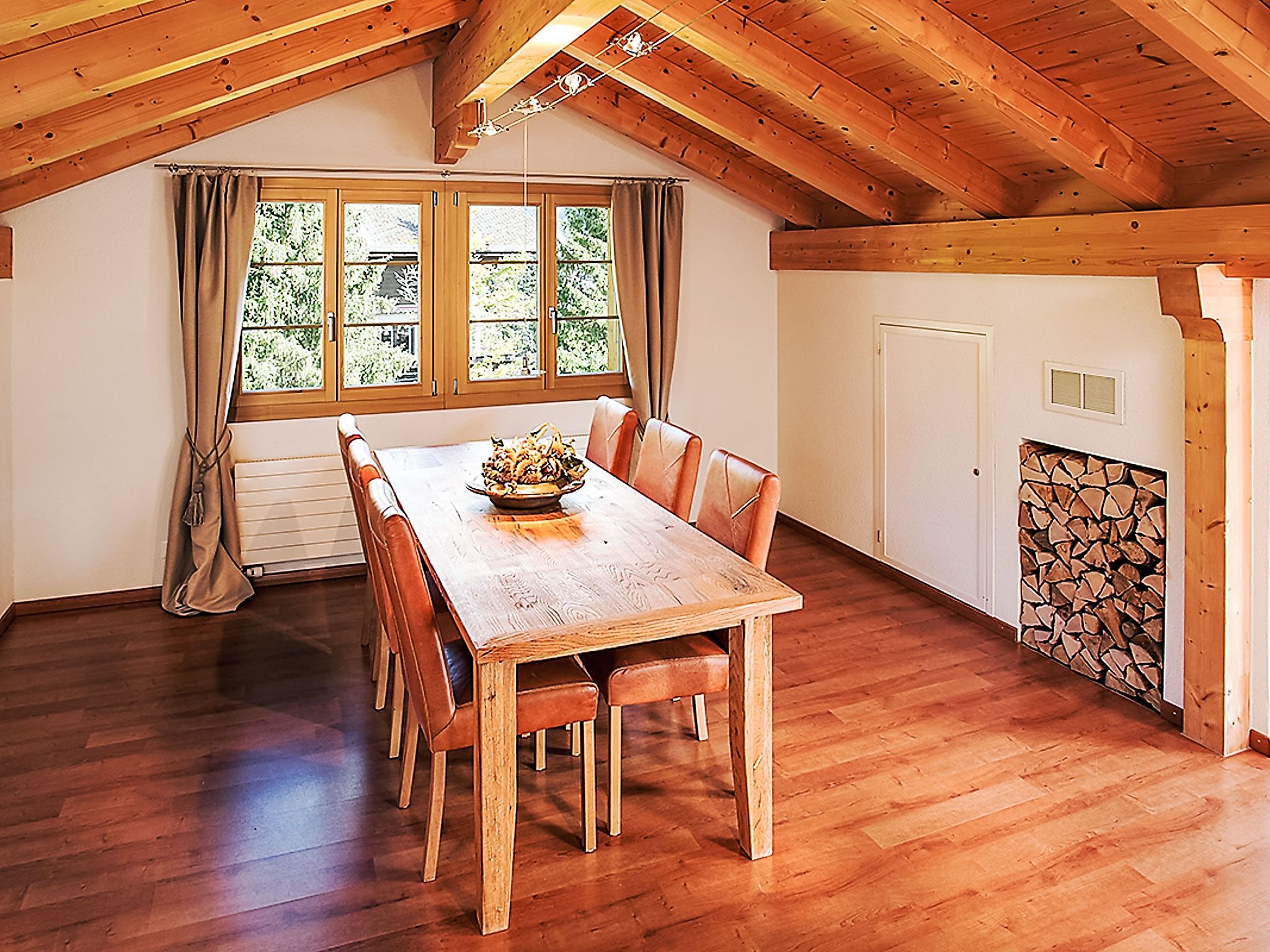 4-Zimmer-Wohnung 130 m2, im Dachgeschoss, Südlage. Teilweise abgeschrägt, schön und geschmackvoll eingerichtet: abgeschrägtes, offenes Wohn-/Esszimmer mit offenem Kamin und Kabel-TV (Flachbildschirm), Radio. Ausgang zum Balkon, Richtung Süden. 1 Zimmer mit 1 Doppelbett (2 x 90 cm, Länge 200 cm). 1 Zimmer mit 2 Betten (90 cm, Länge 200 cm). 1 kleines Zimmer mit 1 Bett (90 cm, Länge 200 cm). Offene Küche (Backofen, Geschirrspüler, 4 Glaskeramikplatten, elektrische Kaffeemaschine, Kapseln für die Kaffeemaschine (Nespresso) extra, Racletteofen, Fondue Set (Käse)). Bad/WC, Dusche/WC. Bodenheizung, Boiler (300 Liter). Grosser Balkon, Südlage. Balkonmöbel. Herrliche Sicht auf die Berge, das Tal und Eigernordwand. Zur Verfügung: Haartrockner. Internet (Wireless LAN, gratis). Parkplatz Nr. 2 (überdacht, 1 Auto). Bitte beachten: Nichtraucher-Unterkunft. Eigener Eingang, Feuerlöscher.