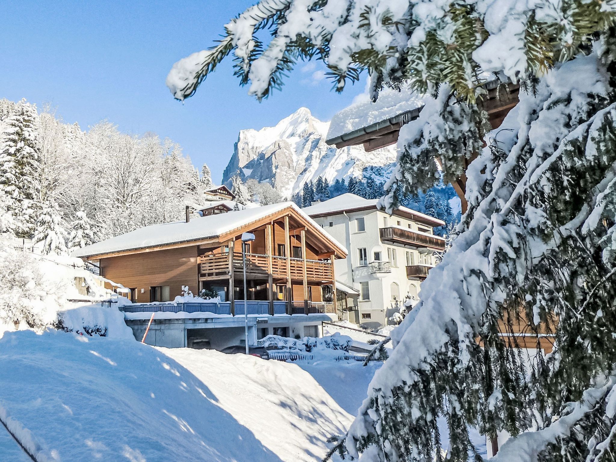 Schönes Zweifamilienhaus Chalet La Muntaniala, Baujahr 2018. Im Ortsteil Spillstatt, 650 m vom Zentrum, Richtung Süden. Zur Alleinbenutzung: Sitzplatz, Gartenmöbel. Im Hause: Skiraum, Zentralheizung, Skischuhtrockner. Wohnungsreinigung (extra). Im Winter bitte Schneeketten mitbringen. Parkplatz (überdacht) beim Haus. Supermarkt 650 m, Einkaufszentrum 650 m, Restaurant 600 m, Bäckerei 700 m, Fahrradverleih 900 m, Zentrum zu Fuss in 5 Minuten erreichbar, Bushaltestelle Altersheim 200 m, Bahnstation Grindelwald Dorf 600 m, Freibad 2.5 km, Hallenbad 700 m. Golfplatz (9 Loch) 3 km, Tennis 2.5 km, Minigolf 900 m, Sportzentrum 700 m, Bergeisenbahn 650 m, Gondelbahn 900 m, Skiverleih 800 m, Skibushaltestelle 50 m, Langlaufloipe 2.5 km, Kinderspielplatz 700 m. Bekannte Seen in der Umgebung sind gut erreichbar: Thuner-/Brienzersee 18 km. Bitte beachten: kein Fahrstuhl vorhanden. Gratis Skibus. Der Besitzer wohnt im selben Haus.