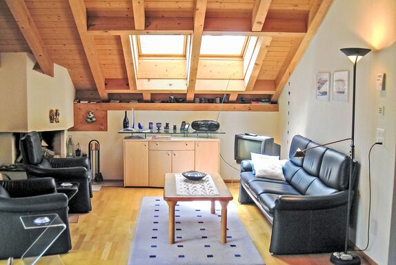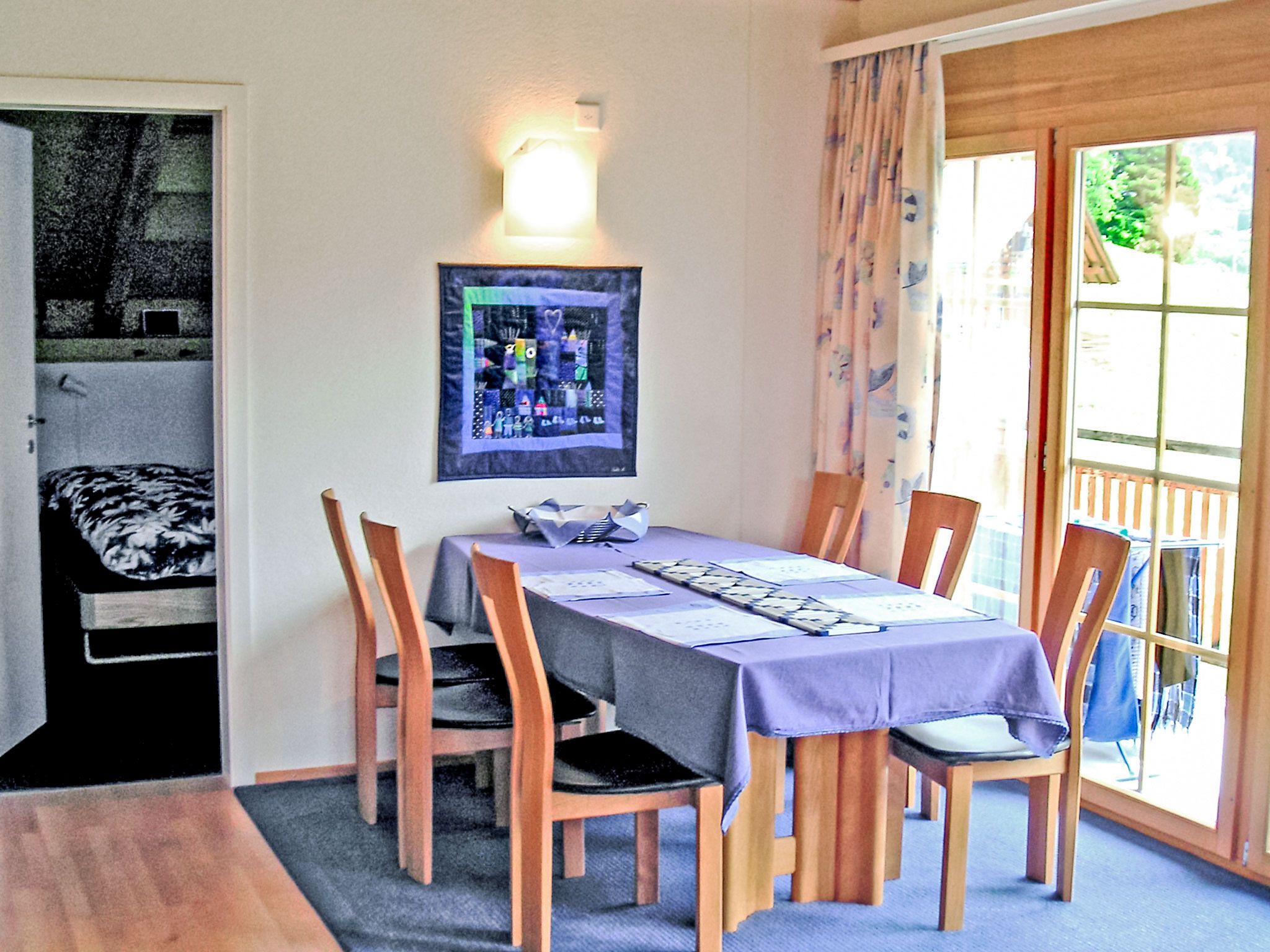 3-Zimmer-Wohnung 83 m2, im Dachgeschoss, Südlage. Schön und gemütlich eingerichtet: abgeschrägtes Wohn-/Esszimmer mit offenem Kamin (nur Deko), Kabel-TV (Flachbildschirm), Radio und CD. Ausgang zur Terrasse, Richtung Süden. 2 abgeschrägte Zimmer, jedes Zimmer mit 2 Betten (90 cm, Länge 200 cm). Küche (Backofen, Geschirrspüler, 4 Glaskeramikplatten, Mikrowelle, elektrische Kaffeemaschine, Racletteofen, Fondue Set (Käse)). Bad/Dusche/WC. Bodenheizung. Parkettboden. Terrasse 15 m2, Südlage und Ostlage. Balkonmöbel. Herrliche Sicht auf die Berge und Fiescherwand und Wetterhorn. Zur Verfügung: Waschmaschine, Wäschetrockner. Internet (Wireless LAN, gratis). Garage Nr. 2. Bitte beachten: Nichtraucher-Unterkunft. Feuerlöscher.
