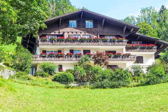 Mehrfamilienhaus Chalet Im Klusi. Im Ortsteil Terrassenweg/Klusi, 2.3 km vom Zentrum, ruhige, sonnige Lage, Richtung Süden. Im Hause: Skiraum, Zentralheizung. Im Winter bitte Schneeketten mitbringen. Parkplatz beim Haus. Lebensmittelgeschäft 1.8 km, Supermarkt 2.1 km, Einkaufszentrum 2.1 km, Restaurant 1.5 km, Fahrradverleih 1.5 km, Bushaltestelle Im Klusi 150 m, Bahnstation Grindelwald Dorf 2.3 km, Freibad 3.2 km, Hallenbad 2.1 km. Golfplatz (9 Loch) 2.6 km, Tennis 2.5 km, Sportzentrum 2.1 km, Gondelbahn 1.6 km, Skisportanlagen, Skiverleih 700 m, Skibushaltestelle 150 m, Skischule, Kinderskischule 700 m, Langlaufloipe 2.6 km, Eisfeld 2.1 km, Kinderspielplatz 2.1 km. Nahe gelegene Sehenswürdigkeiten: Jungfrau Top of Europe. Bekannte Skigebiete sind gut erreichbar: First, Männlichen, Kl. Scheideeg. Bekannte Seen in der Umgebung sind gut erreichbar: Thuner-/Brienzersee 20 km. Wandergebiete: Jungfrau Region. Bitte beachten: kein Fahrstuhl vorhanden. Gratis Skibus. Die Schlüsselübergabe findet bei der Agentur Interhome in Grindelwald statt.