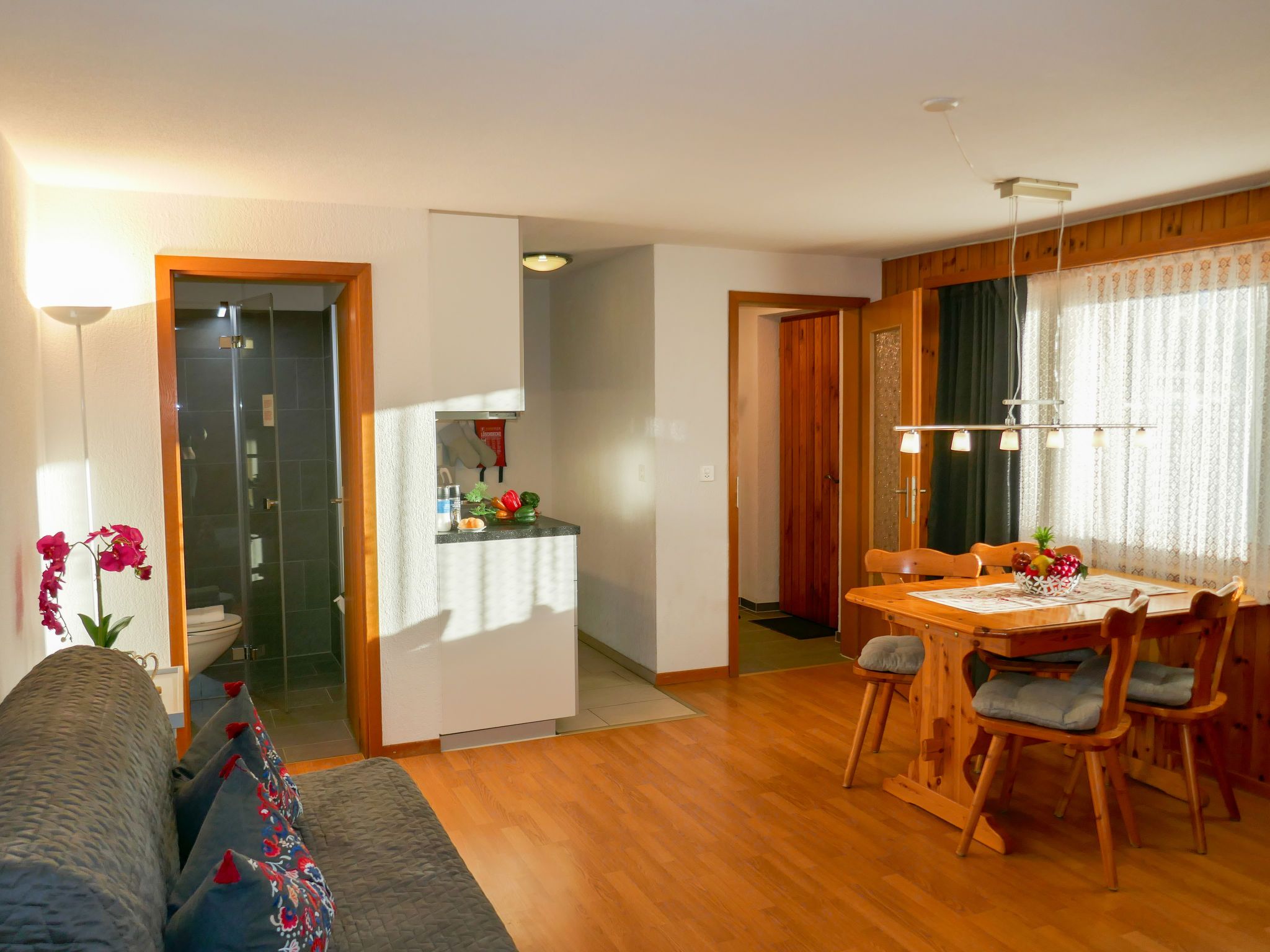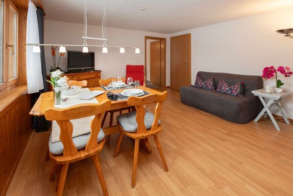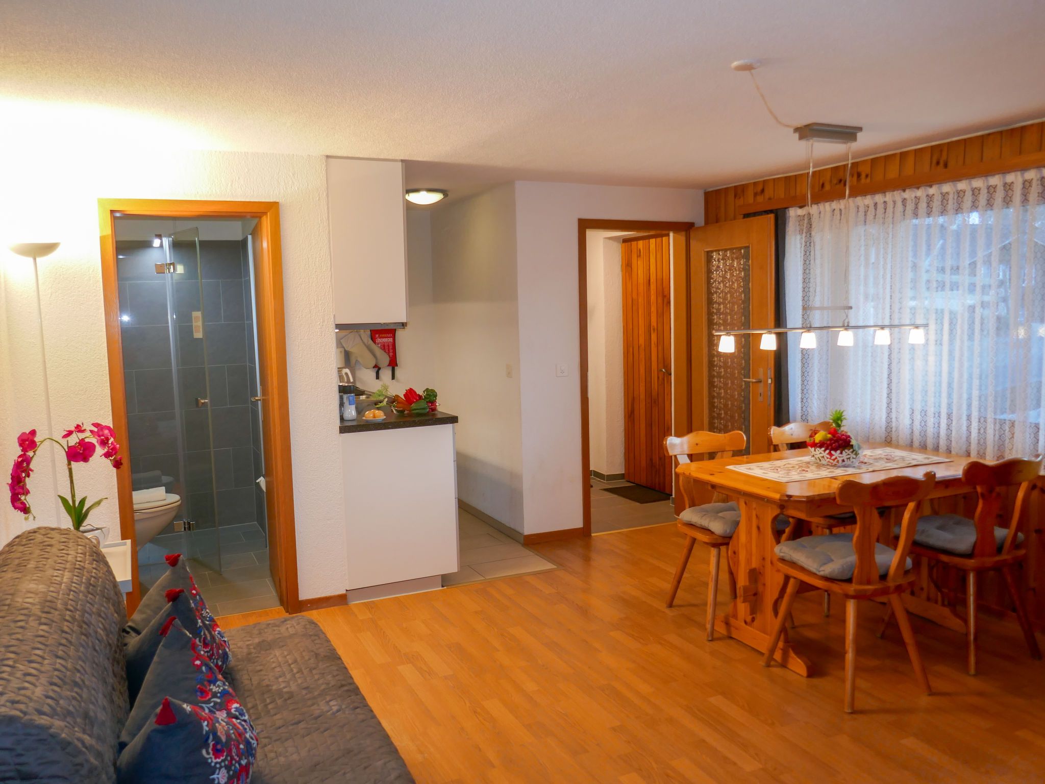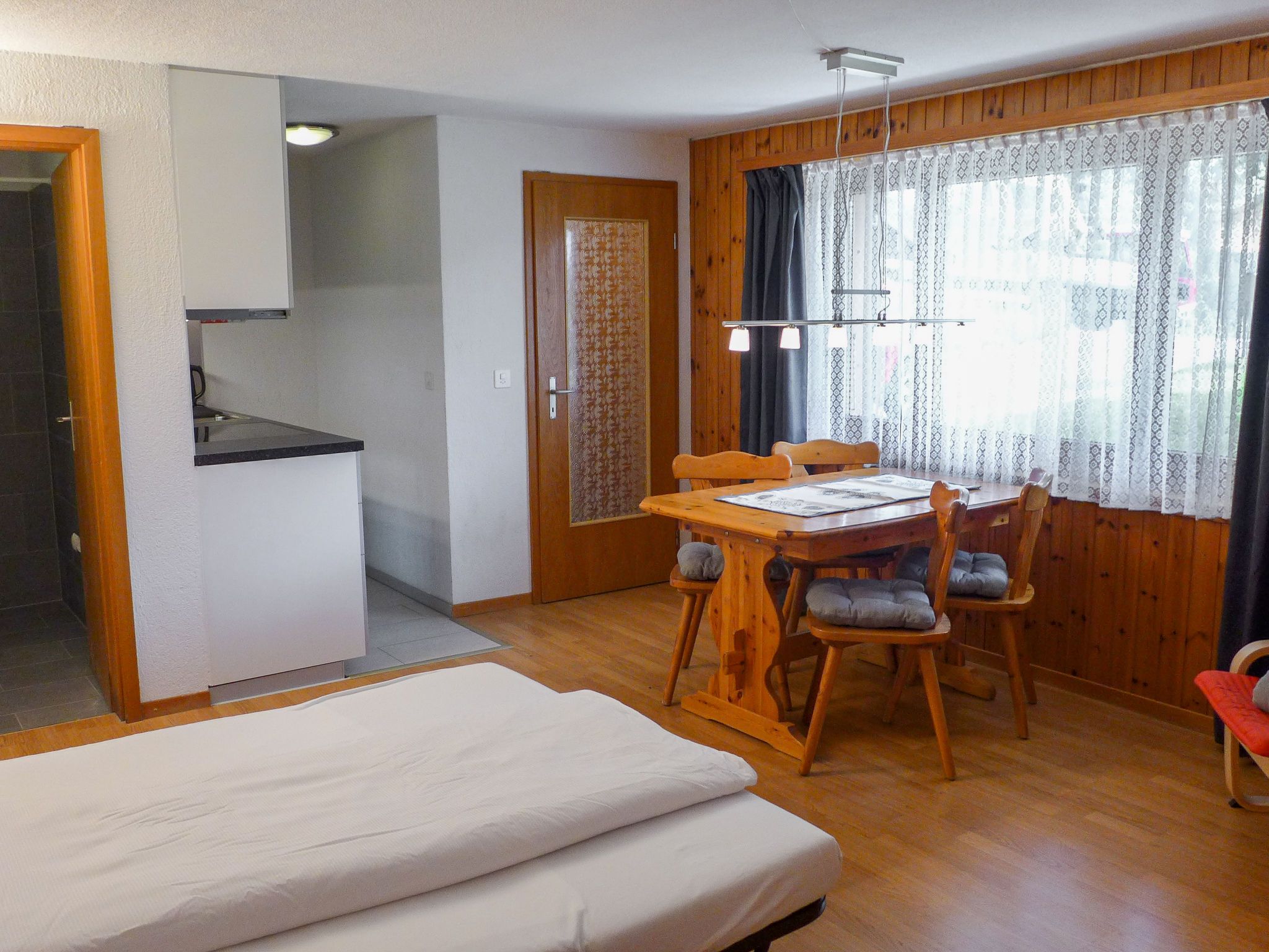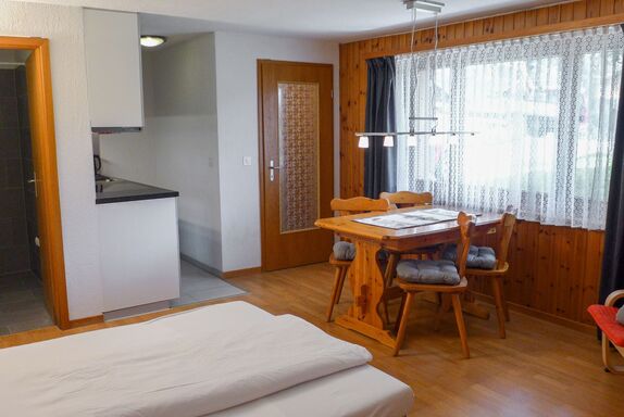 2-Zimmer-Wohnung 45 m2, im Erdgeschoss, Südlage. Teilweise renoviert im Jahre 2022, gemütlich eingerichtet: Wohn-/Esszimmer mit Internationale TV-Sender und Radio. Ausgang zum Gartensitzplatz, Richtung Süden. 1 Zimmer mit 2 Betten (90 cm, Länge 200 cm). Offene Küche (Backofen, 4 Glaskeramikplatten, Mikrowelle, elektrische Kaffeemaschine, Racletteofen, Fondue Set (Käse)). Dusche/WC. Fussbodenheizung. Parkettboden, Teppichboden. Gartensitzplatz 70 m2, Südlage und Westlage. Terrassenmöbel, Liegestühle (2), Abstellkammer. Herrliche Sicht auf die Berge und Eigernordwand. Zur Verfügung: Haartrockner. Internet (Wireless LAN, gratis). Garage beim Haus. Bitte beachten: Nichtraucher-Unterkunft. Eigener Eingang, Feuerlöscher.