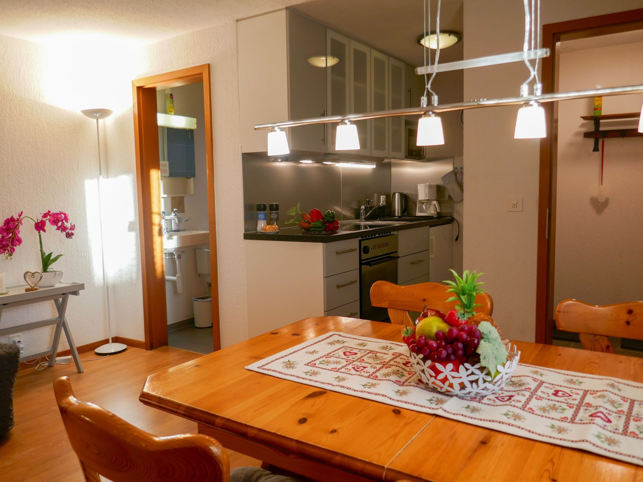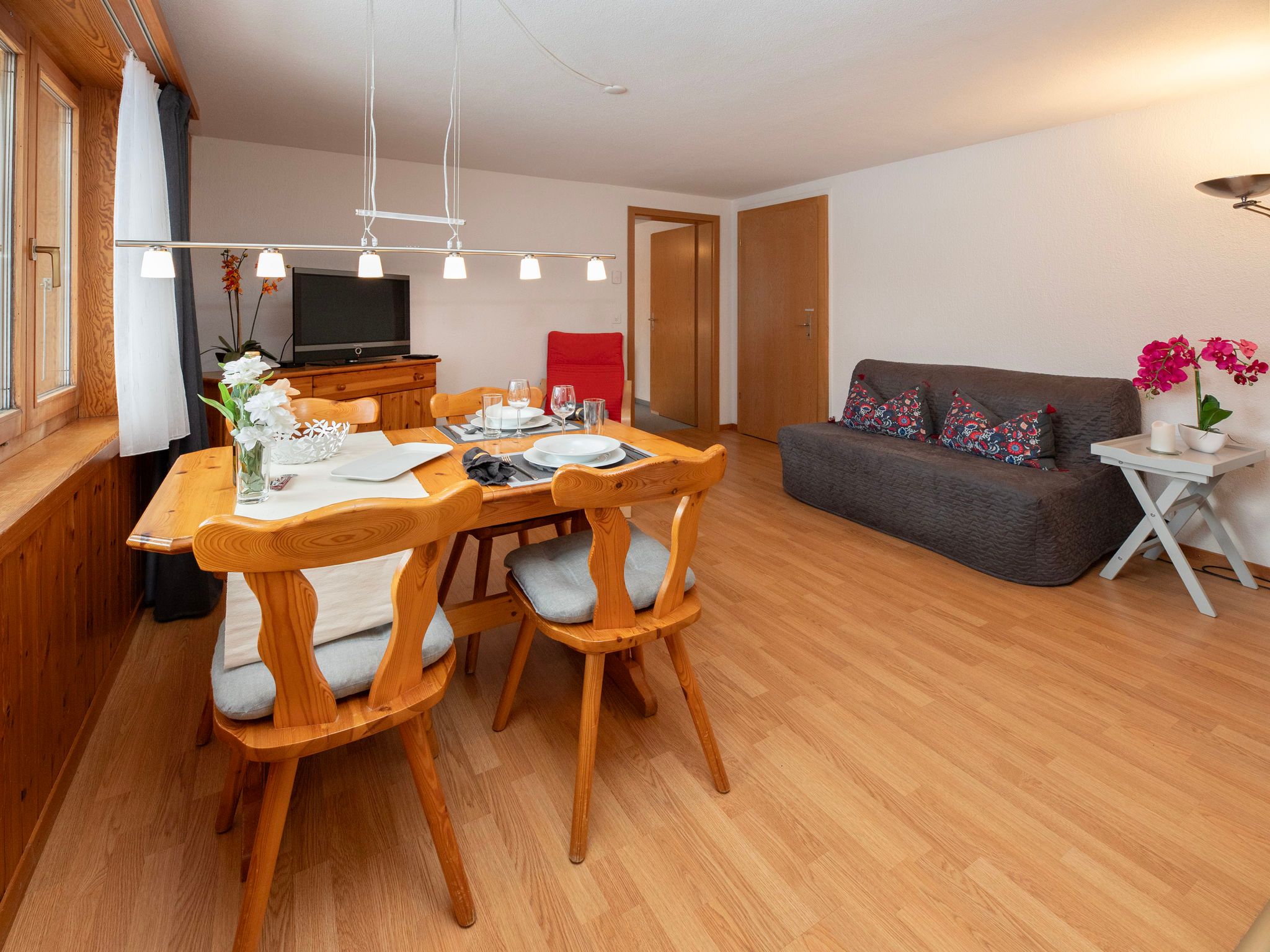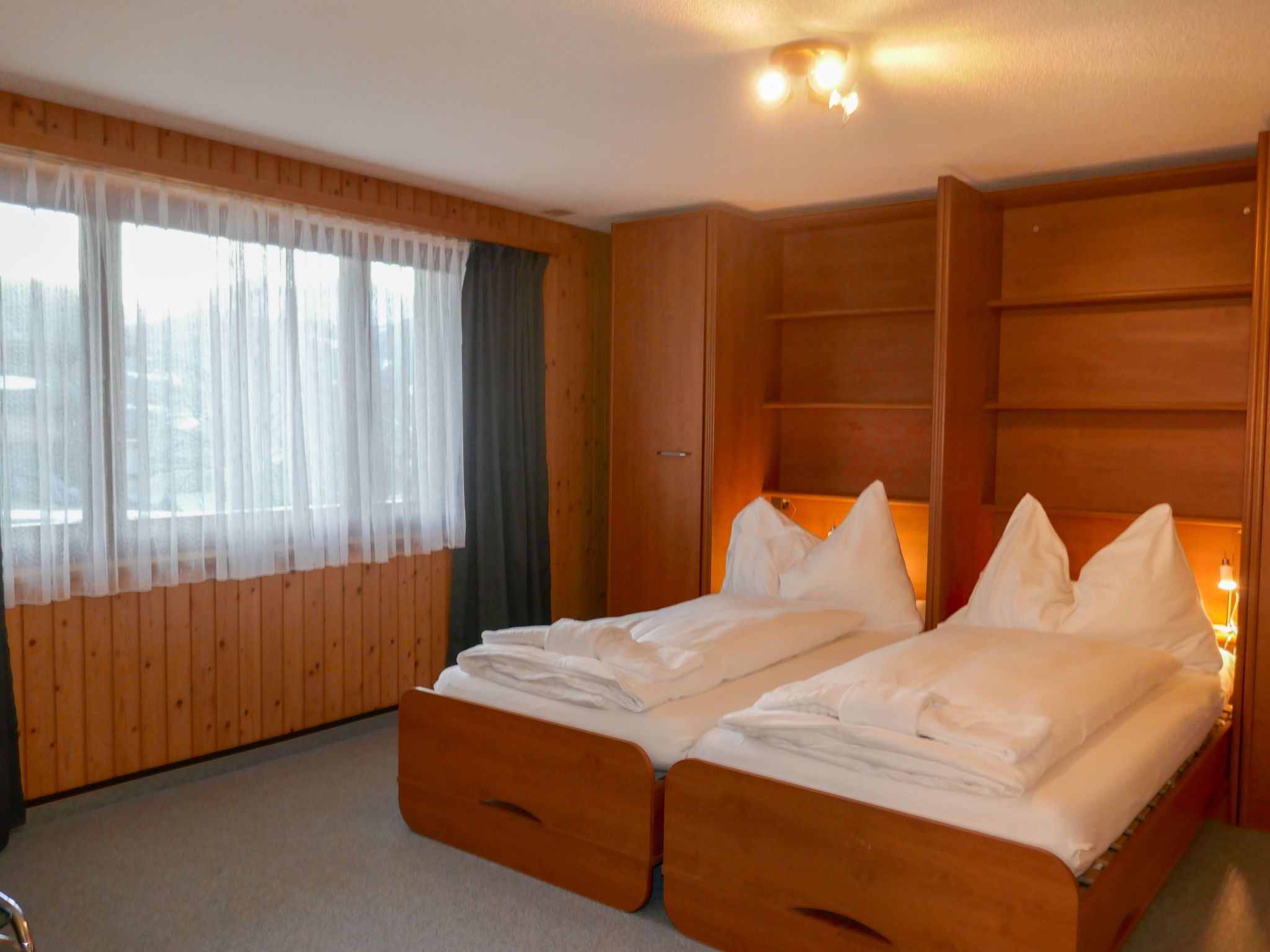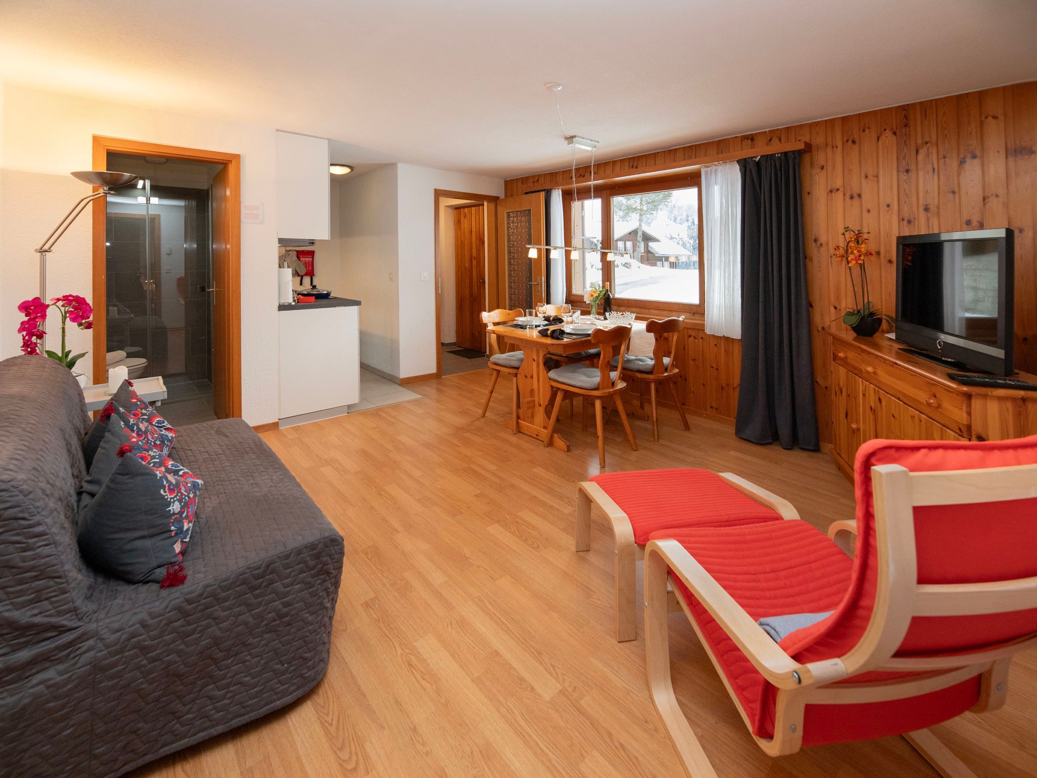 2-Zimmer-Wohnung 45 m2, im Erdgeschoss, Südlage. Teilweise renoviert im Jahre 2022, gemütlich eingerichtet: Wohn-/Esszimmer mit Internationale TV-Sender und Radio. Ausgang zum Gartensitzplatz, Richtung Süden. 1 Zimmer mit 2 Betten (90 cm, Länge 200 cm). Offene Küche (Backofen, 4 Glaskeramikplatten, Mikrowelle, elektrische Kaffeemaschine, Racletteofen, Fondue Set (Käse)). Dusche/WC. Fussbodenheizung. Parkettboden, Teppichboden. Gartensitzplatz 70 m2, Südlage und Westlage. Terrassenmöbel, Liegestühle (2), Abstellkammer. Herrliche Sicht auf die Berge und Eigernordwand. Zur Verfügung: Haartrockner. Internet (Wireless LAN, gratis). Garage beim Haus. Bitte beachten: Nichtraucher-Unterkunft. Eigener Eingang, Feuerlöscher.