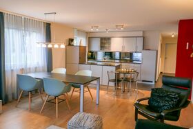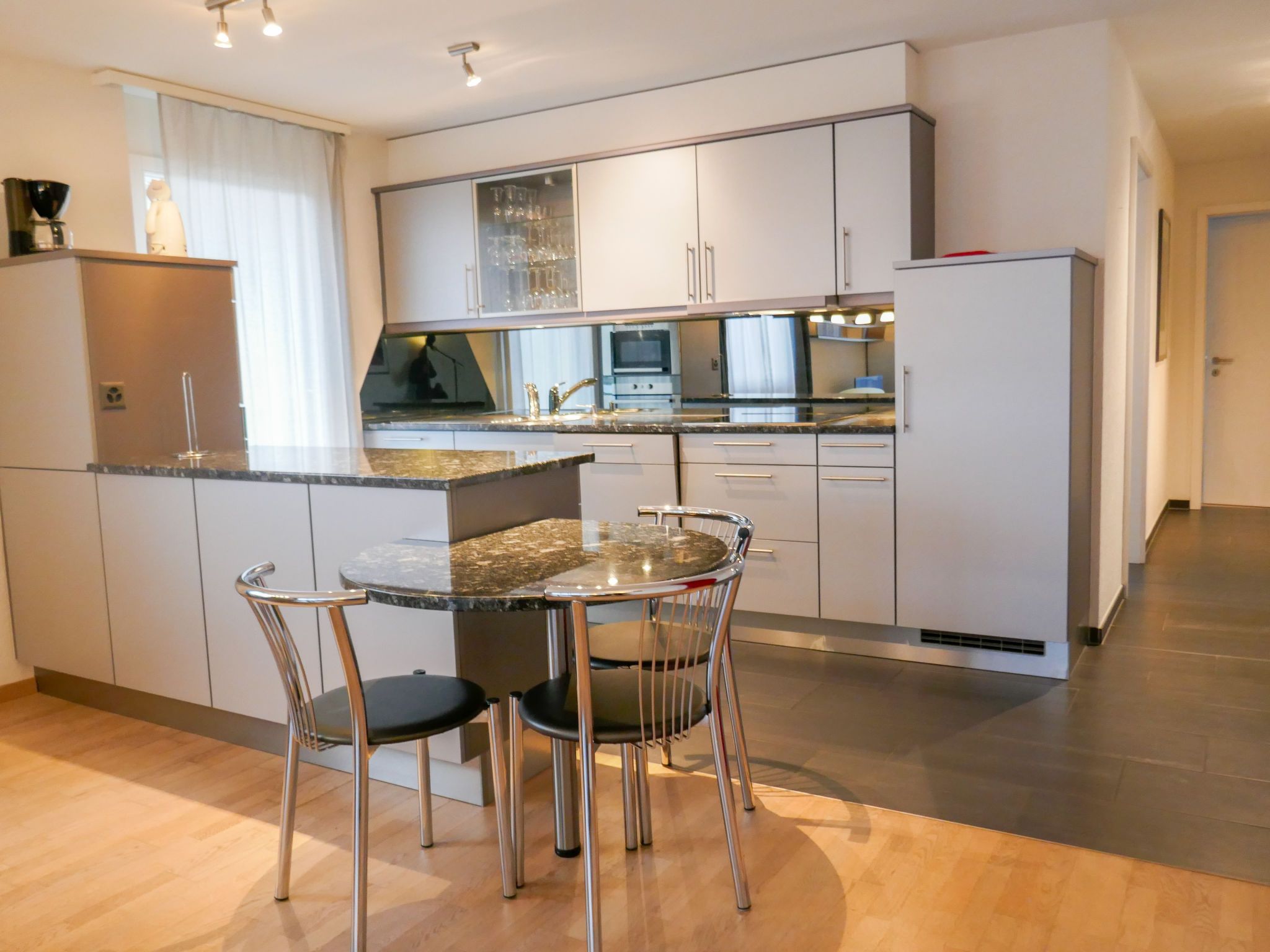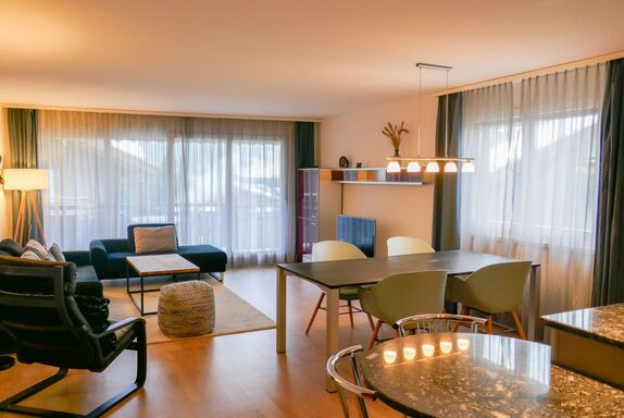 3-Zimmer-Wohnung 108 m2 im 1. Stock, Südlage. Hell, schön und modern eingerichtet: Wohn-/Esszimmer mit Kabel-TV und Flachbildschirm. Ausgang zum Balkon, Richtung Süden und Richtung Westen. 1 Zimmer mit 1 Bett (90 cm, Länge 200 cm), 1 franz. Bett (160 cm, Länge 200 cm). 1 Zimmer mit 1 franz. Bett (160 cm, Länge 200 cm). Ausgang zum Balkon, Richtung Westen. Offene Küche (Backofen, Geschirrspüler, 4 Glaskeramikplatten, Mikrowelle, elektrische Kaffeemaschine, Kapseln für die Kaffeemaschine (Nespresso) extra, Racletteofen, Fondue Set (Käse)). Bad/WC, Dusche/WC. Fussbodenheizung. Parkettboden, Natursteinboden. Südlage und Westlage. Balkonmöbel. Herrliche Sicht auf die Berge und Eiger Nordwand. Zur Verfügung: Waschmaschine, Wäschetrockner, Bügeleisen. Internet (Wireless LAN, gratis). Parkplatz, Garage Nr. 12, Höhe 198 cm. Bitte beachten: Nichtraucher-Unterkunft. Feuerlöscher.