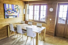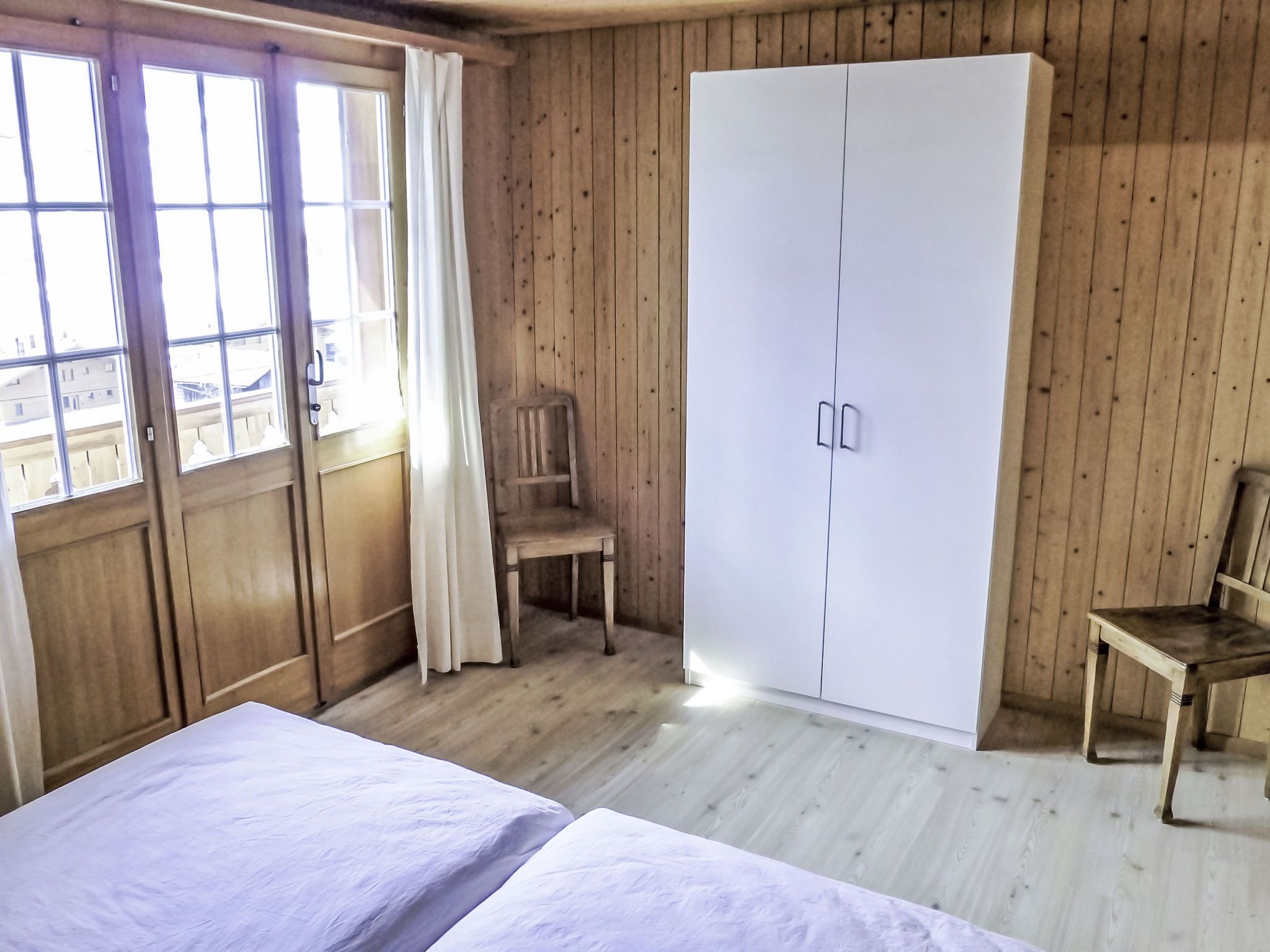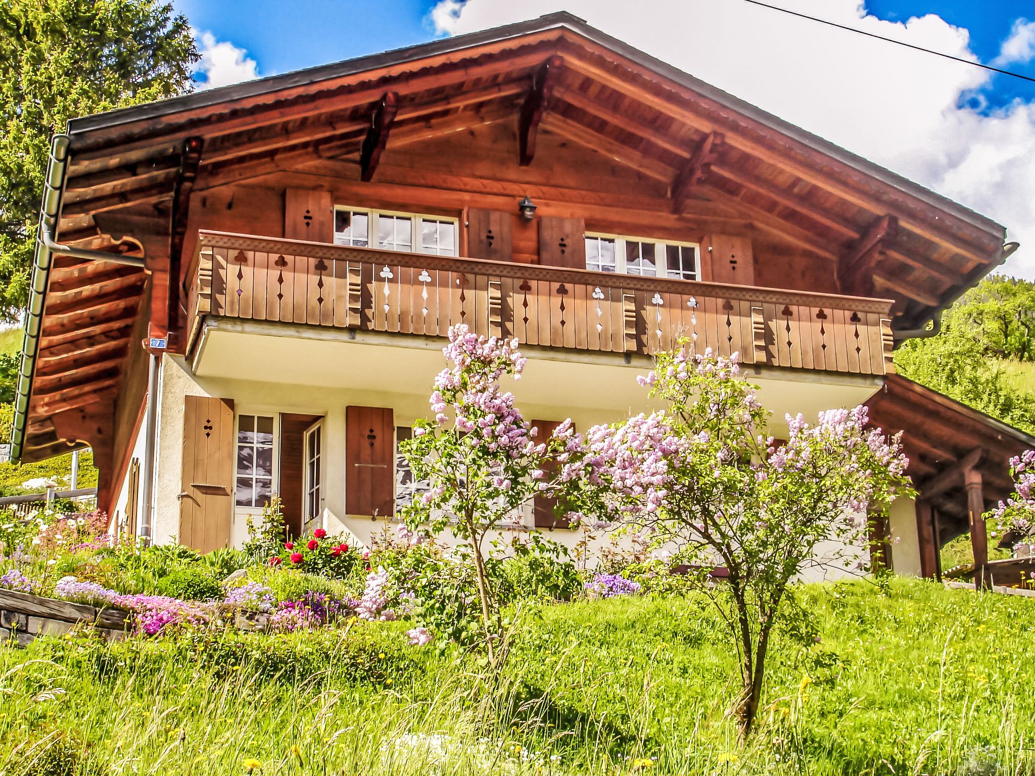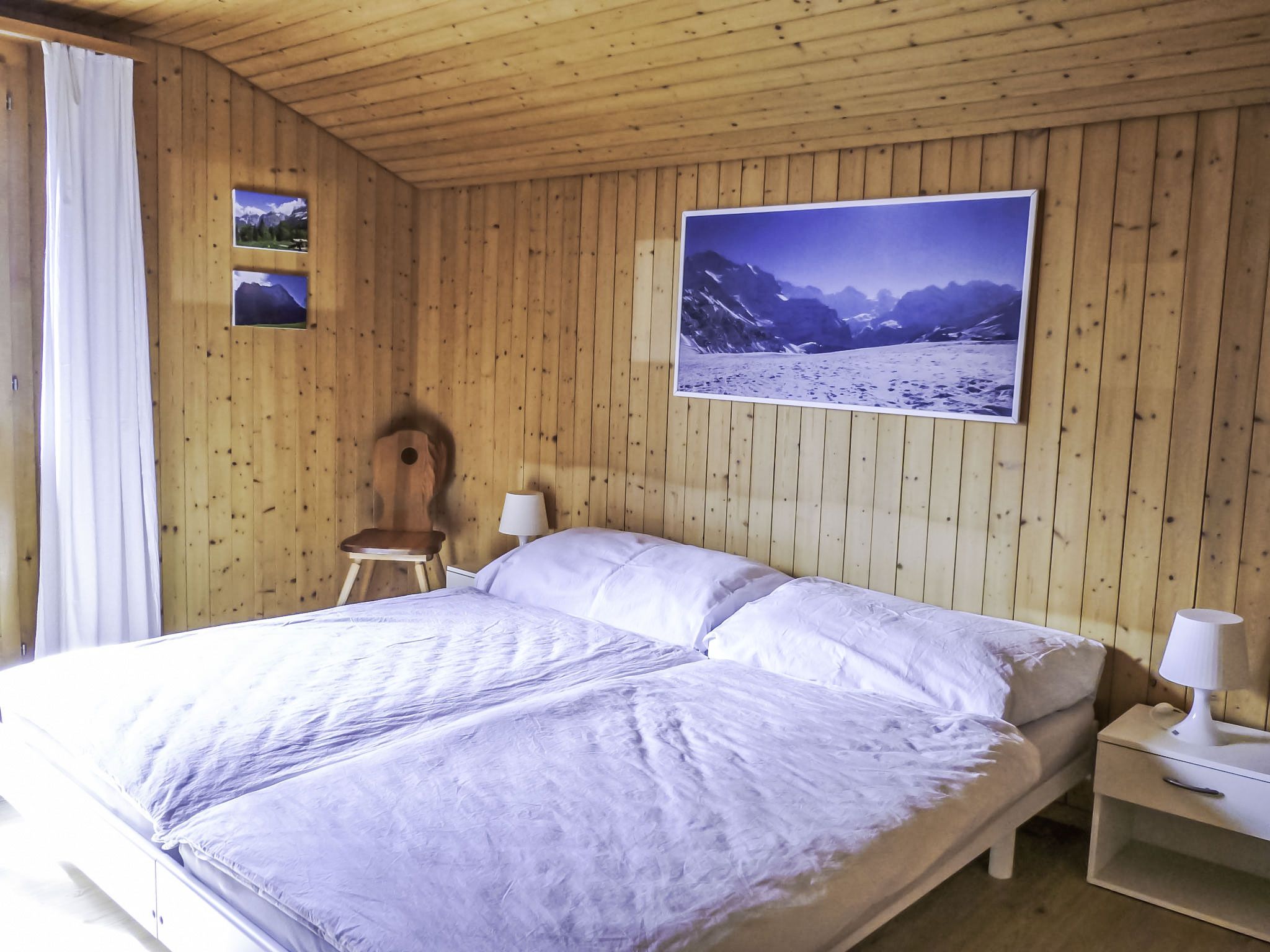 4-Zimmer-Chalet 110 m2 auf 2 Stockwerken, Südlage. Renoviert im Jahre 2014, gemütlich eingerichtet: Wohn-/Esszimmer mit Schwedenofen und Sat-TV (Flachbildschirm), Radio, CD und DVD. Ausgang zum Gartensitzplatz, Richtung Süden. Offene Küche 8 m2 (Backofen, Geschirrspüler, 4 Glaskeramikplatten, Mikrowelle, elektrische Kaffeemaschine, Kapseln für die Kaffeemaschine (Nespresso) extra, Fondue Set (Käse)). Ausgang zum Gartensitzplatz, Richtung Süden und Richtung Westen. Dusche/WC. Bodenheizung. Obergeschoss: 2 Zimmer, jedes Zimmer mit 2 Betten (90 cm, Länge 200 cm). Ausgang zum Balkon, Richtung Süden. 1 Zimmer mit 2 Betten (90 cm, Länge 200 cm). Bad/WC. Bodenheizung. Parkettboden, Natursteinboden. Balkon, Südlage und Westlage, Gartensitzplatz, Südlage. Terrassenmöbel, Gartengrill. Herrliche Sicht auf die Berge und Eigernordwand. Zur Verfügung: Haartrockner. Internet (Wireless LAN, gratis). Parkplatz, Garage. Bitte beachten: geeignet für Familien. Nichtraucher-Unterkunft. Feuerlöscher.