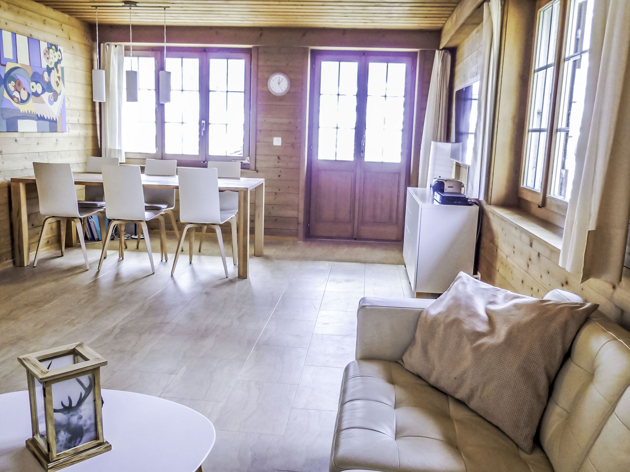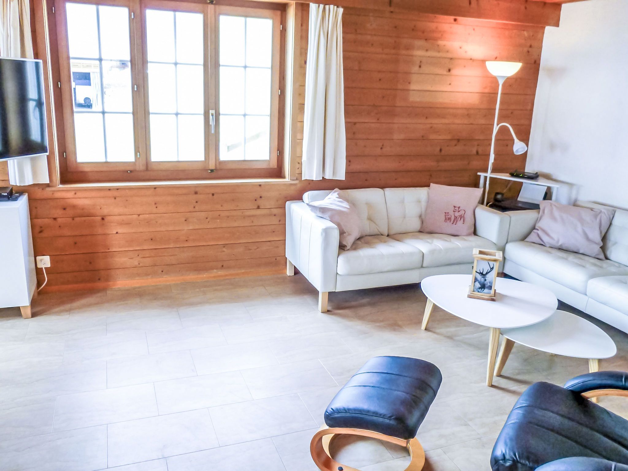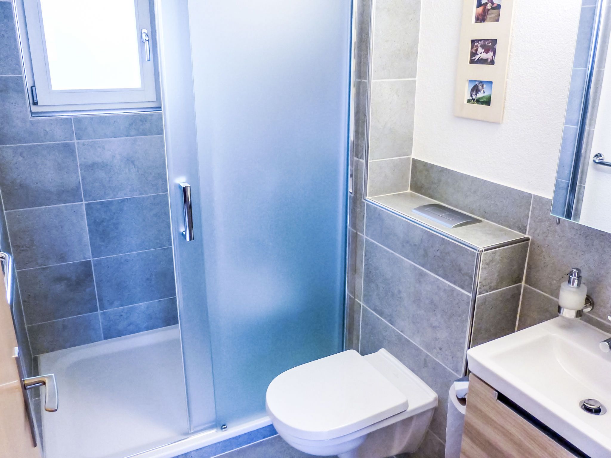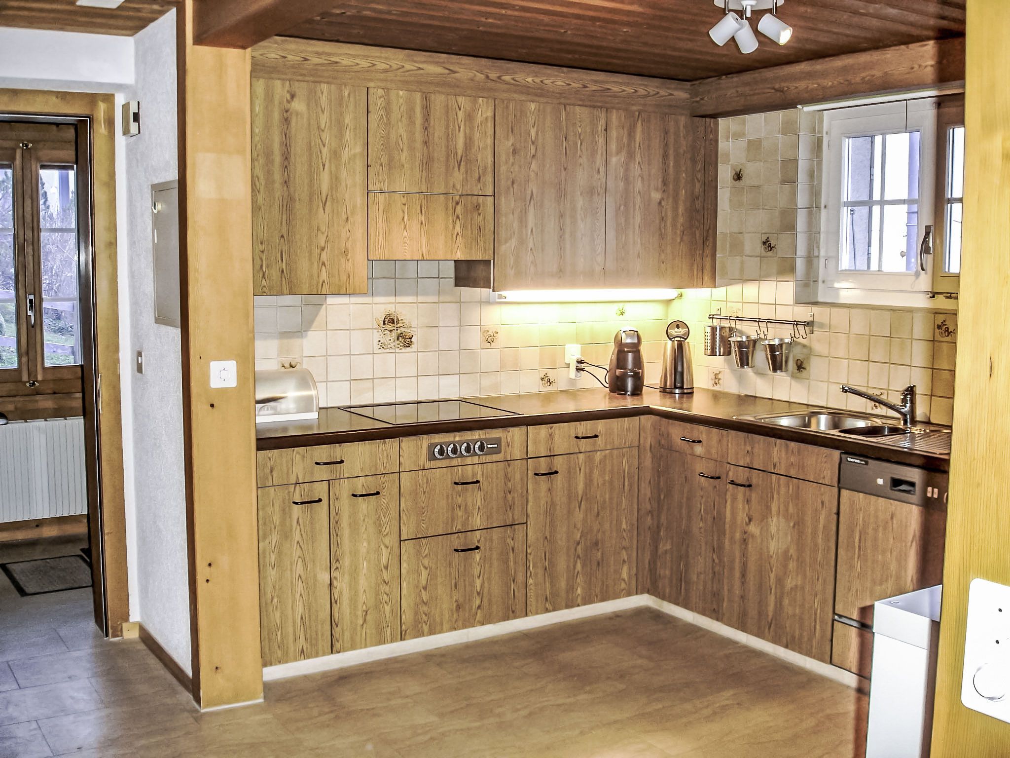 4-Zimmer-Chalet 110 m2 auf 2 Stockwerken, Südlage. Renoviert im Jahre 2014, gemütlich eingerichtet: Wohn-/Esszimmer mit Schwedenofen und Sat-TV (Flachbildschirm), Radio, CD und DVD. Ausgang zum Gartensitzplatz, Richtung Süden. Offene Küche 8 m2 (Backofen, Geschirrspüler, 4 Glaskeramikplatten, Mikrowelle, elektrische Kaffeemaschine, Kapseln für die Kaffeemaschine (Nespresso) extra, Fondue Set (Käse)). Ausgang zum Gartensitzplatz, Richtung Süden und Richtung Westen. Dusche/WC. Bodenheizung. Obergeschoss: 2 Zimmer, jedes Zimmer mit 2 Betten (90 cm, Länge 200 cm). Ausgang zum Balkon, Richtung Süden. 1 Zimmer mit 2 Betten (90 cm, Länge 200 cm). Bad/WC. Bodenheizung. Parkettboden, Natursteinboden. Balkon, Südlage und Westlage, Gartensitzplatz, Südlage. Terrassenmöbel, Gartengrill. Herrliche Sicht auf die Berge und Eigernordwand. Zur Verfügung: Haartrockner. Internet (Wireless LAN, gratis). Parkplatz, Garage. Bitte beachten: geeignet für Familien. Nichtraucher-Unterkunft. Feuerlöscher.