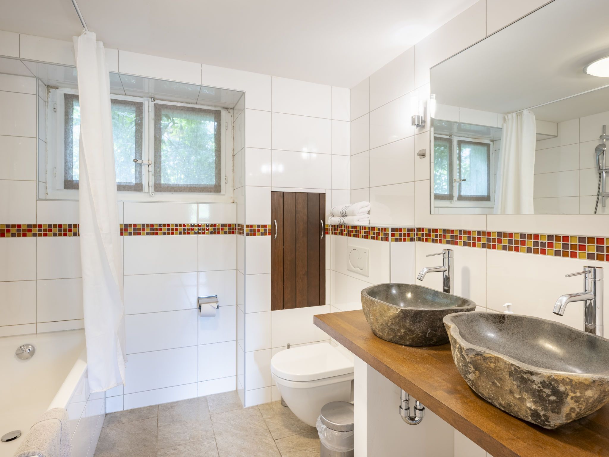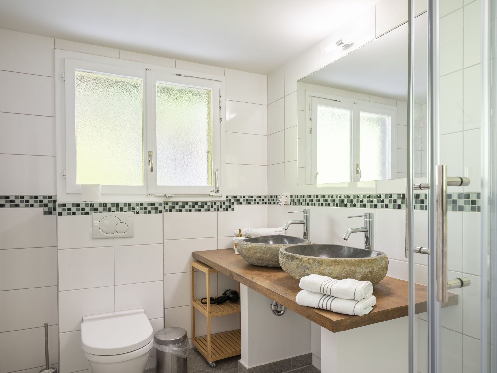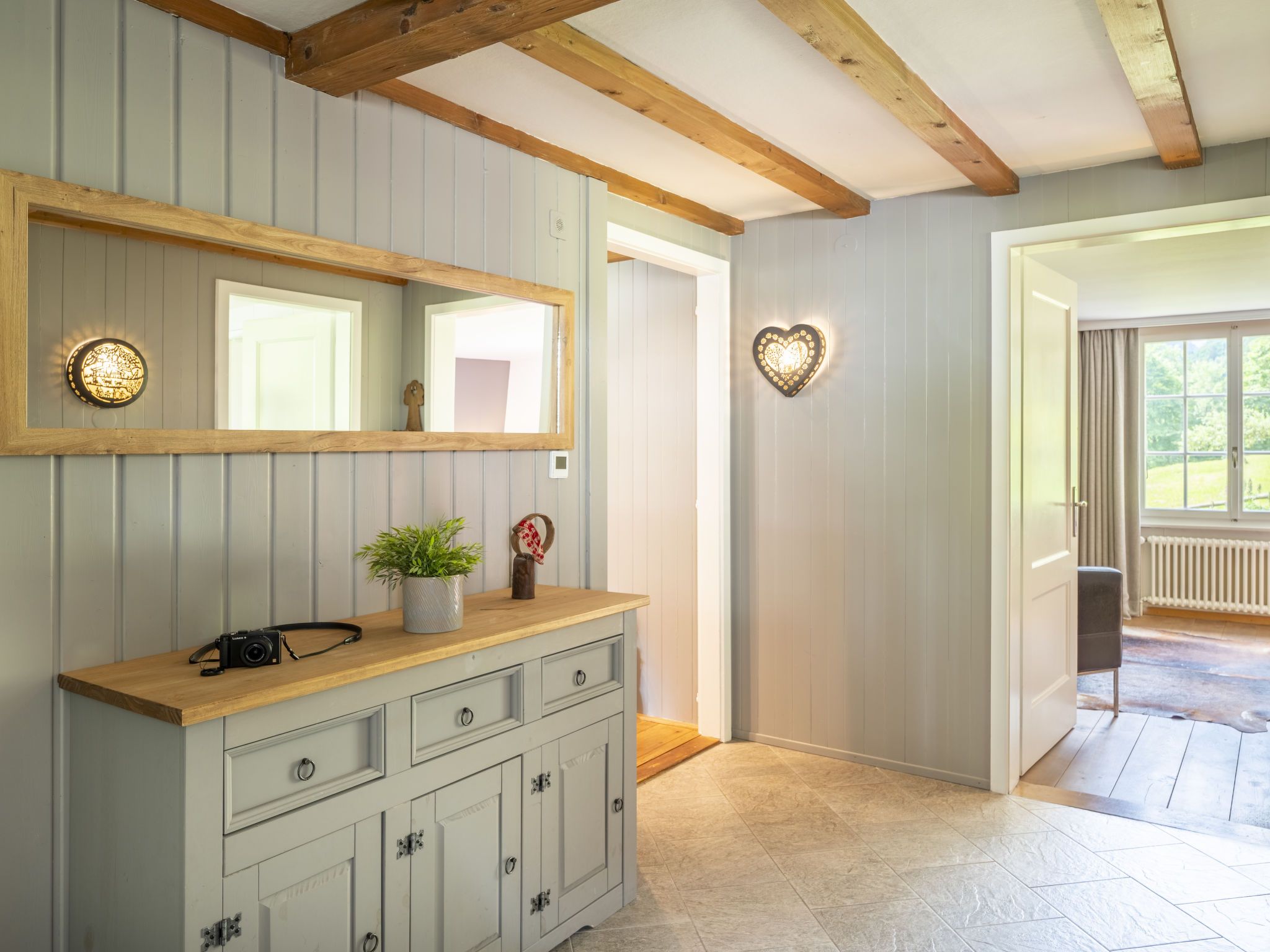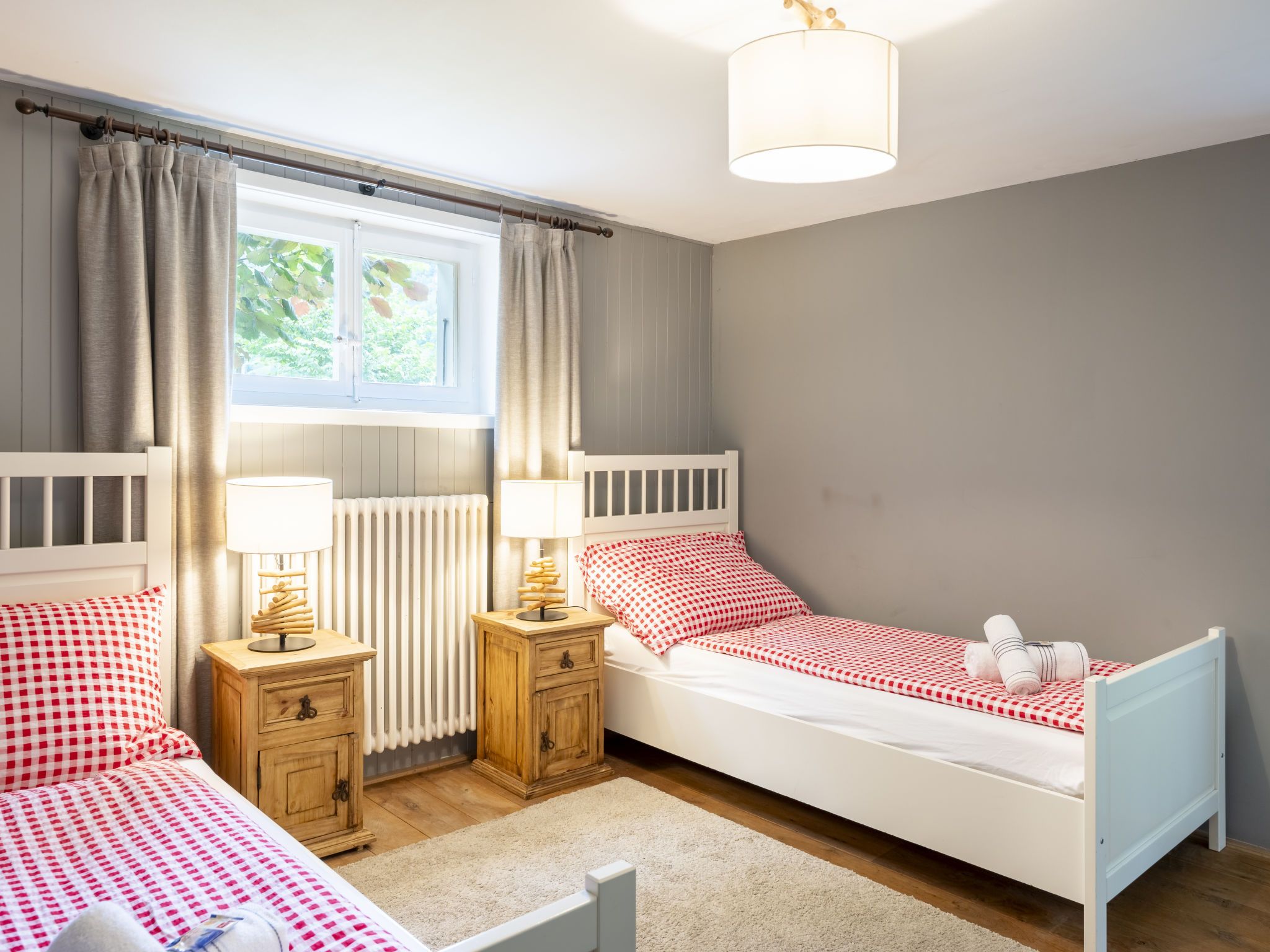 Chalet am Schärm, 7-Zimmer-Chalet 200 m2 auf 3 Stockwerken. Geräumig und hell, teilweise renoviert im Jahre 2022, geschmackvoll und gemütlich eingerichtet: offenes Wohn-/Esszimmer 35 m2 mit offenem Kamin, Kabel-TV, Digital-TV, Internationale TV-Sender und Flachbildschirm. Ausgang zum Balkon. 1 Zimmer 20 m2 mit 1 franz. Bett (160 cm, Länge 200 cm). Offene Küche 12 m2 (Backofen, Geschirrspüler, 5 Glaskeramikplatten, Mikrowelle, Tiefkühler, elektrische Kaffeemaschine, Racletteofen, Fondue Set (Käse)). Dusche/WC. Unteres Geschoss: 1 Zimmer 28 m2 mit 1 Diwanbett (130 cm, Länge 200 cm), 1 franz. Bett (160 cm, Länge 200 cm). 1 Zimmer 15 m2 mit 2 Betten (90 cm, Länge 200 cm). Ausgang zum Garten. Bad/WC, Doppelwaschbecken. Obergeschoss: 3 abgeschrägte Zimmer, jedes Zimmer mit 1 franz. Bett (160 cm, Länge 200 cm). Dusche/WC. Balkon 35 m2, Gartensitzplatz. Balkonmöbel, Liegestühle (6), Abstellkammer. Herrliche Panoramasicht auf die Berge und die Landschaft. Zur Verfügung: Bügeleisen, Kinderhochstuhl, Babybett bis 4 Jahre (extra), Haartrockner. Internet (Wireless LAN, gratis). Bitte beachten: Nichtraucher-Haus. Rauchmelder, Feuerlöscher.