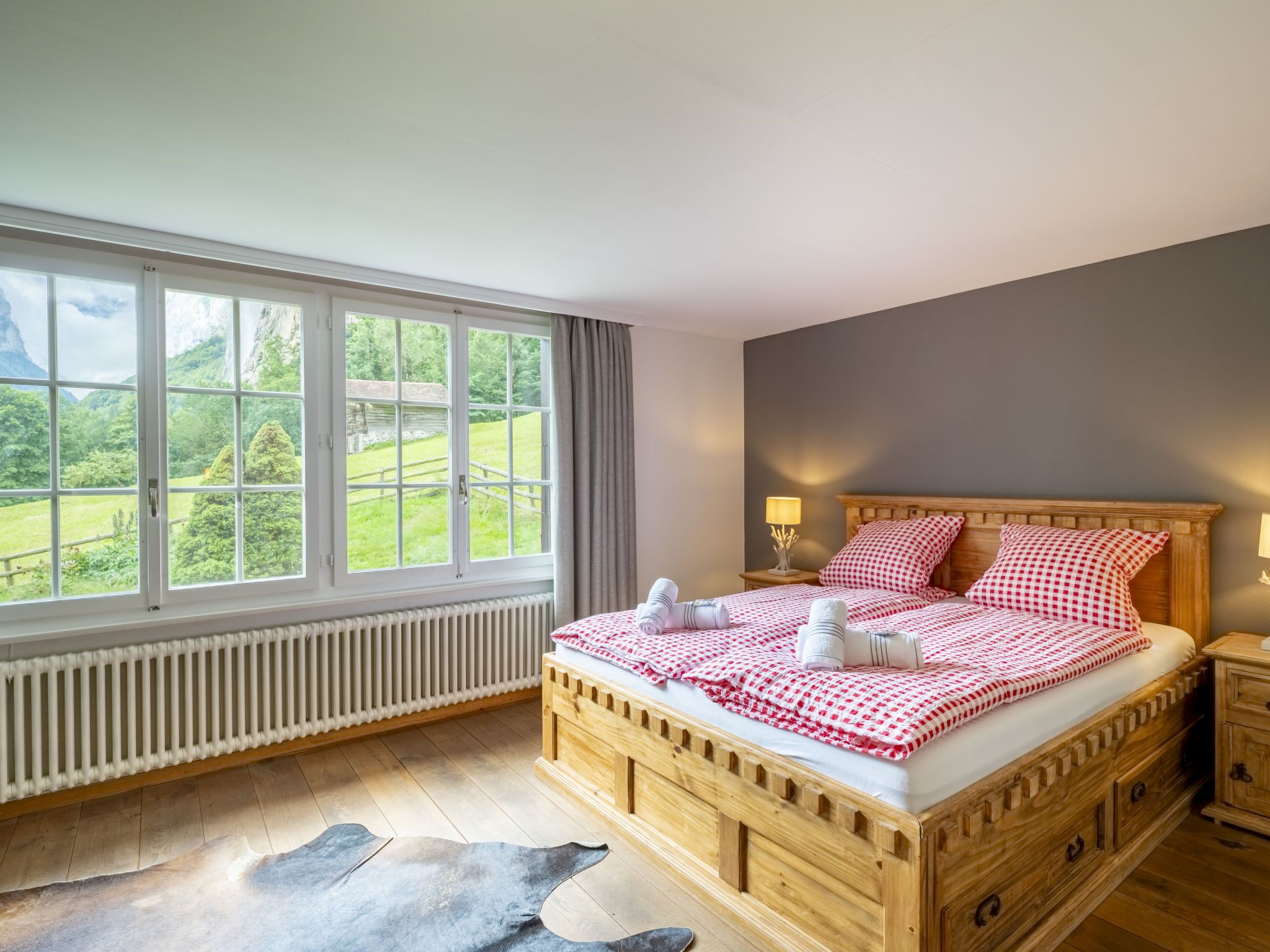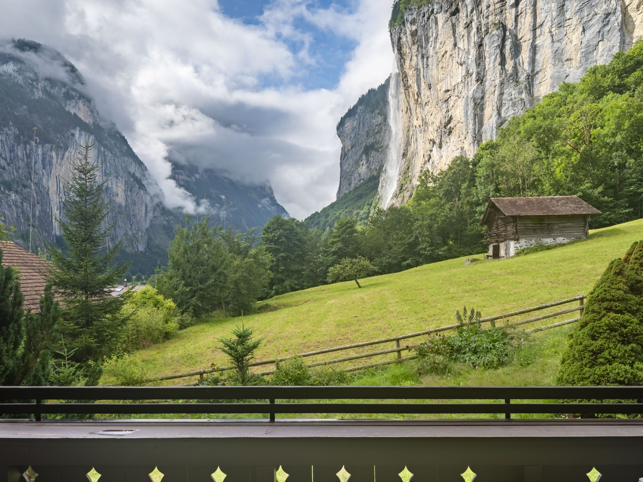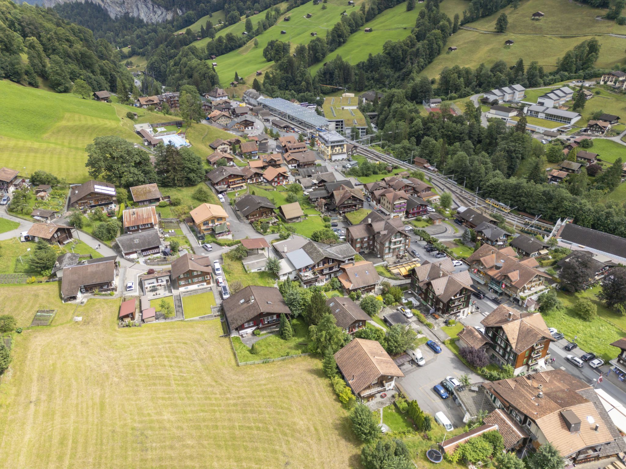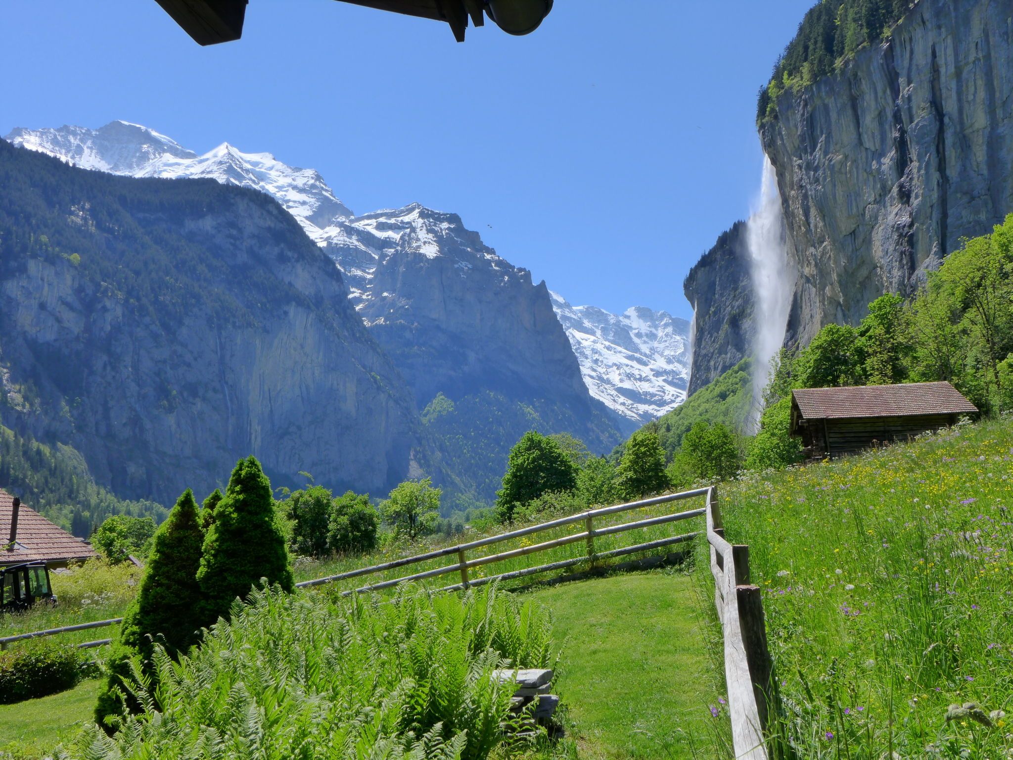 Lauterbrunnen 10 km von Interlaken: Grosses, komfortables Chalet am Schärm, auf 3 Stockwerken, umgeben von Bäumen und Wiesen. Im Ortszentrum von Lauterbrunnen, zentrale, ruhige, sonnige Lage am Hang. Zur Alleinbenutzung: grosser Garten Rasen und Pflanzen. Gartenmöbel, Grill. Im Hause: Skiraum, Zentralheizung, Waschmaschine, Wäschetrockner, Skischuhtrockner. Wäschewechsel (zusätzlich extra). Wohnungsreinigung möglich (extra). Schmale Zufahrt bis zum Haus. Im Winter 4x4 empfohlen. Breite der Zufahrtsstrasse: 320 cm. Parkplatz (für 4 Autos) beim Haus. Einkaufsgeschäft 300 m, Supermarkt 500 m, Restaurant, Bäckerei 400 m, Bushaltestelle 300 m, Bahnstation Lauterbrunnen, Freibad 500 m. Golfplatz (18 Loch) 11 km, Tennis 600 m, Minigolf 600 m, Luftseilbahn 500 m, Skiverleih 250 m, Skibushaltestelle 200 m. Nahe gelegene Sehenswürdigkeiten: Jungfraujoch, Schilthorn, Interlaken 12 km. Bekannte Skigebiete sind gut erreichbar: Wengen - Kleine Scheidegg, Mürren Schilthorn. Bekannte Seen in der Umgebung sind gut erreichbar: Thunersee, Brienzersee. Wandergebiete: Jungfrau Region, Hinteres Lauterbrunnental. Bitte beachten: geeignet für Familien, Babyausstattung (extra). Jugendgruppen nur auf Anfrage. Bei guter Schneelage Zufahrt mit den Skiern bis zum Haus.