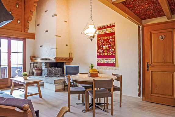 Bergkristall Apt. P, 3-Zimmer-Attikawohnung 50 m2. Hell, teilweise abgeschrägt, komfortabel und gemütlich eingerichtet: Wohn-/Esszimmer mit offenem Kamin und TV. 1 Zimmer mit 1 Doppelbett (2 x 90 cm, Länge 200 cm). 1 Zimmer mit 2 Betten (90 cm, Länge 200 cm). Küche (Backofen, Geschirrspüler, 4 Glaskeramikplatten, Toaster, Wasserkocher, elektrische Kaffeemaschine, Kapseln für die Kaffeemaschine (Nespresso) extra, Fondue Set (Käse)). Dusche/WC. Balkon. Herrliche Panoramasicht auf die Berge und das Tal. Zur Verfügung: Haartrockner, Holz (extra). Internet (Wireless LAN, gratis). Bitte beachten: Nichtraucher-Unterkunft.