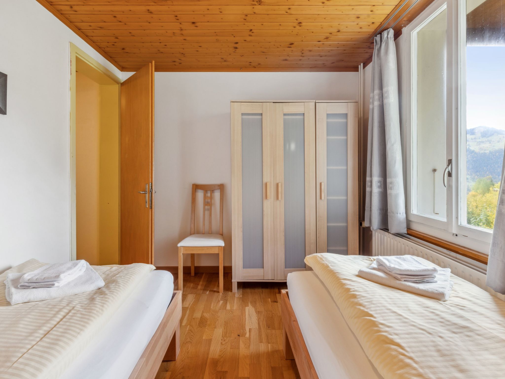 Bristol Apt.18, 3-Zimmer-Wohnung 60 m2 im 1. Stock. Komfortabel und gemütlich eingerichtet: Wohn-/Esszimmer mit Esstisch. 1 Zimmer mit 1 franz. Bett (140 cm, Länge 200 cm). 1 Zimmer mit 2 Betten (90 cm, Länge 200 cm). Küche (Backofen, 4 Glaskeramikplatten, Toaster, Wasserkocher, Mikrowelle, elektrische Kaffeemaschine, Kapseln für die Kaffeemaschine (Nespresso) extra). Bad/Dusche/WC. Kleiner Balkon. Sicht auf die Berge. Zur Verfügung: Haartrockner. Internet (Wireless LAN, gratis). Bitte beachten: Nichtraucher-Unterkunft.
