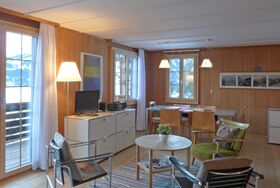 Wengen: Gemütliches, freistehendes Chalet Jungfrau an der Ledi. Ausserhalb des Ortes, 1 km vom Zentrum von Wengen, im Bezirk Ledi, ruhige, sonnige Lage am Hang. Zur Mitbenutzung: naturbelassenes Grundstück. Sitzplatz, Gartenmöbel. Einkaufsservice vor Anreise möglich. Zufahrt bis 50 m zum Haus. Einkaufsgeschäft 1 km, Supermarkt 1.2 km, Restaurant 800 m, Bäckerei 1 km, Bushaltestelle Lauterbrunnen (by train) 4.2 km, Bahnstation Wengen 1.2 km. Luftseilbahn 1 km, Skisportanlagen 1 km, Skischule 1 km, Kinderskischule 1 km. Bekannte Seen in der Umgebung sind gut erreichbar: Thunersee 13 km, Brienzersee 13 km. Bitte beachten: autofreie Ferienanlage. Die Anreise erfolgt mit der Bergbahn.