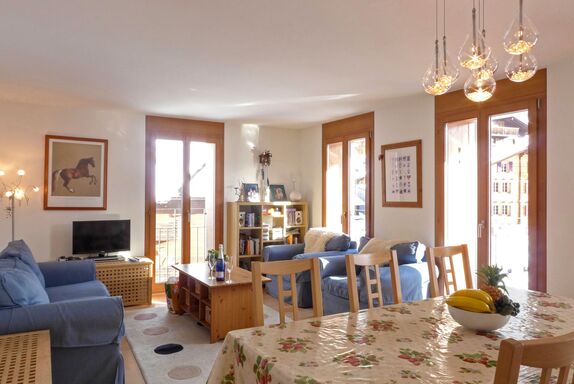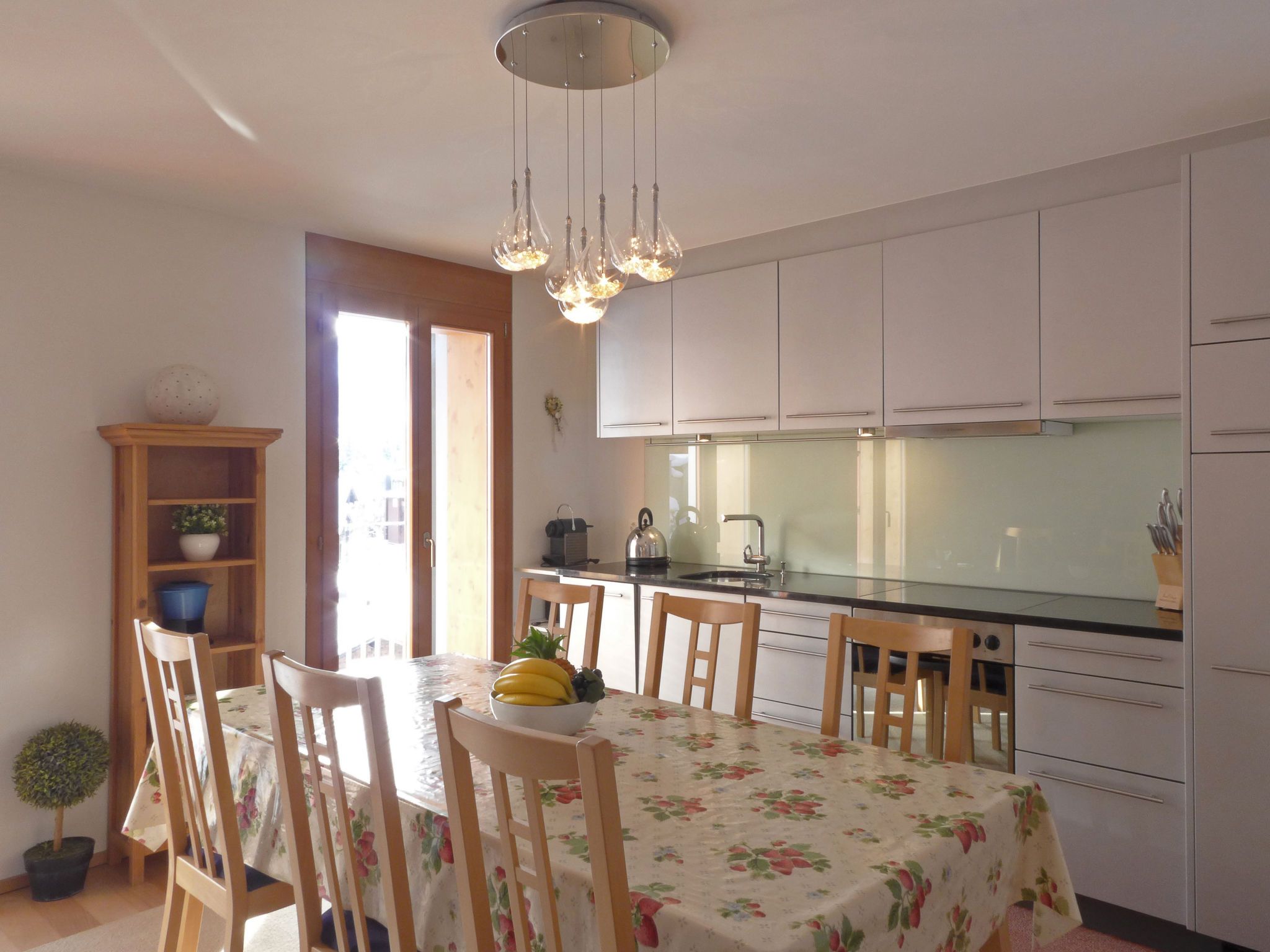 Eden Apt.D, 3-Zimmer-Wohnung 61 m2 im 2. Stock. Stilvoll und gemütlich eingerichtet: Wohn-/Esszimmer mit Kabel-TV, Radio, CD und DVD. 2 Zimmer, jedes Zimmer mit 2 Betten (90 cm, Länge 200 cm). Offene Küche (Backofen, Geschirrspüler, 4 Glaskeramikplatten, Toaster, Wasserkocher, Mikrowelle, elektrische Kaffeemaschine, Kapseln für die Kaffeemaschine (Nespresso) extra, Fondue Set (Käse)). Dusche/WC, Bad/Dusche/WC. Kleiner Balkon. Sehr schöne Panoramasicht auf die Berge. Zur Verfügung: Waschmaschine, Wäschetrockner, Bügeleisen, Haartrockner. Internet (Wireless LAN, gratis). Bitte beachten: Nichtraucher-Unterkunft.