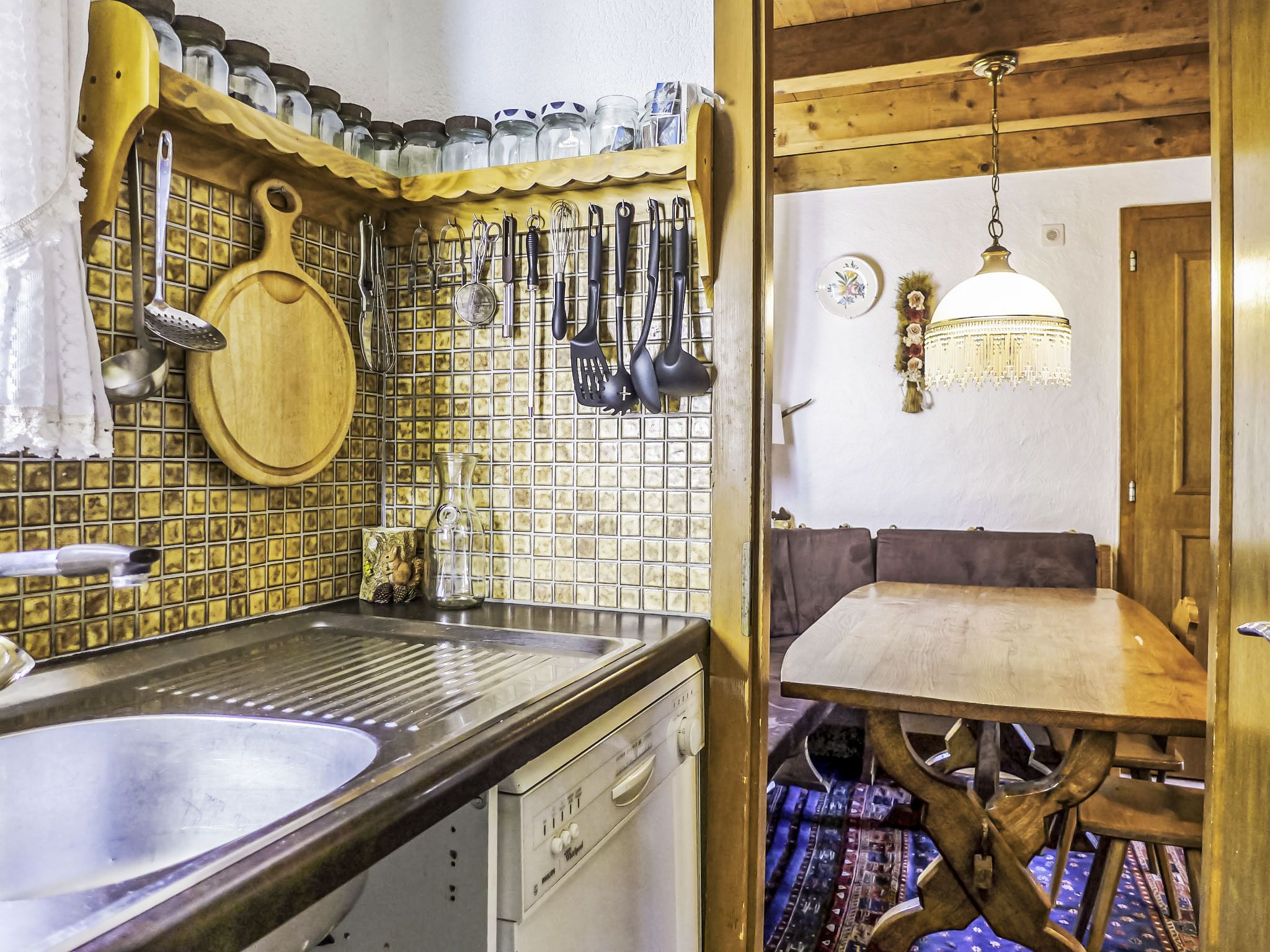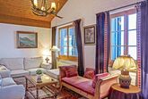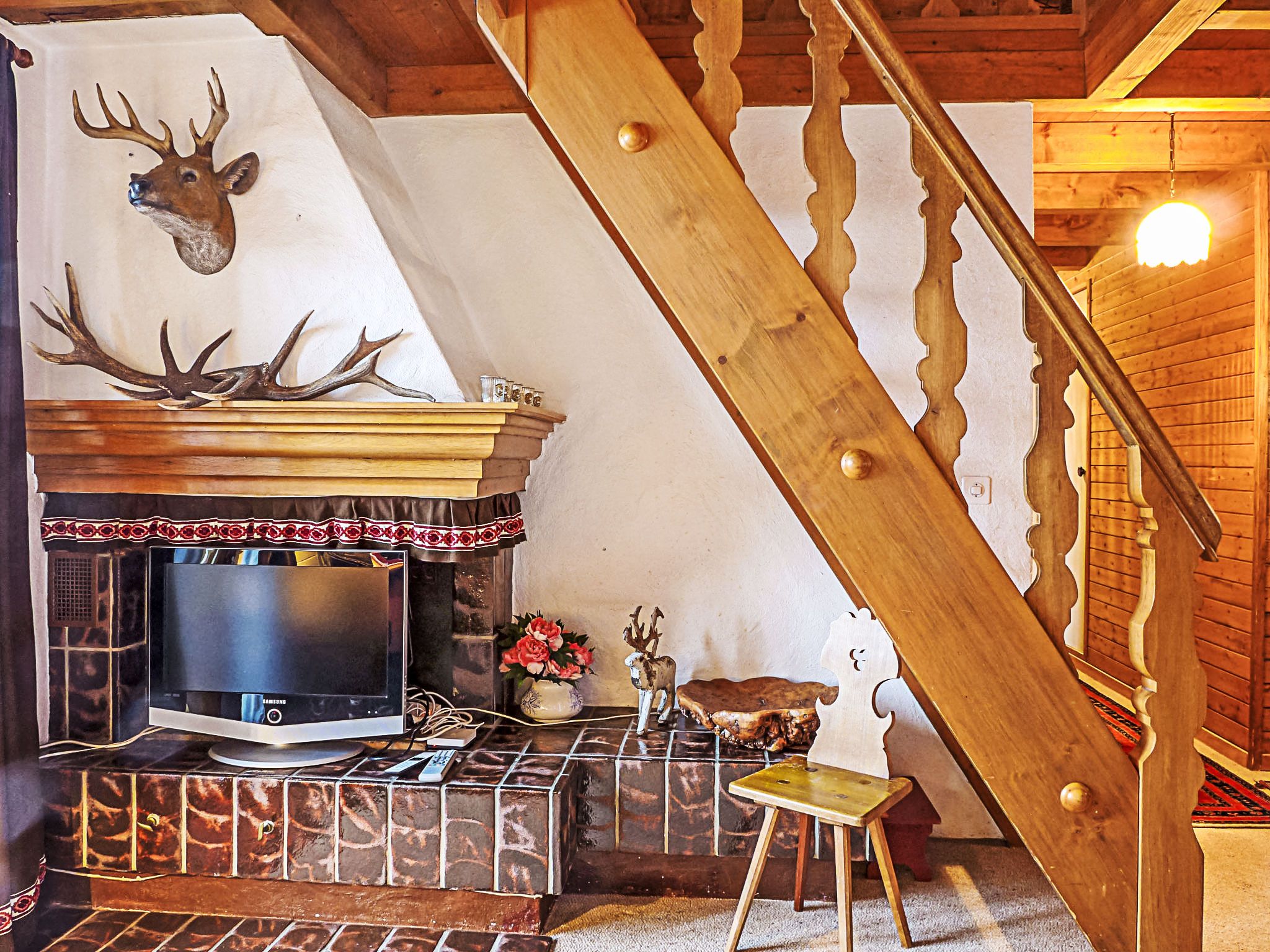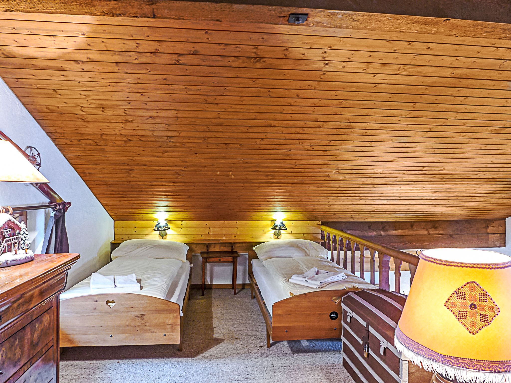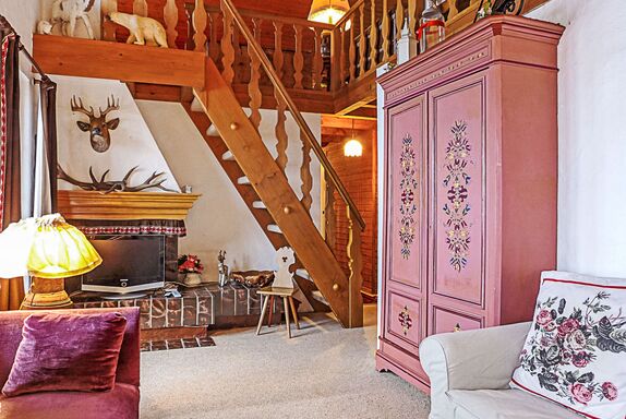Biwak, 4-Zimmer-Wohnung 90 m2 auf 2 Stockwerken im 1. Stock. Hell, teilweise abgeschrägt, gemütlich und mit viel Holz eingerichtet: Wohn-/Esszimmer 23 m2, Deckenhöhe 230 - 420 cm mit Kabel-TV. Ausgang zum Balkon. 1 Zimmer 12 m2 mit 1 Doppelbett (1 x 160 cm, Länge 200 cm). 1 Zimmer 12 m2 mit 2 Betten (90 cm, Länge 190 cm). Kleine Küche (Backofen, Geschirrspüler, 4 Glaskeramikplatten, Toaster, Wasserkocher, elektrische Kaffeemaschine, Kapseln für die Kaffeemaschine (Nespresso) extra). Bad/WC, sep. WC. Obergeschoss: (steile Treppe) Galerie 25 m2, ohne Schrank mit 3 Betten (90 cm, Länge 190 cm). Grosser Balkon. Balkonmöbel. Herrliche Panoramasicht auf die Berge und das Tal. Zur Verfügung: Internet (Wireless LAN, gratis). Bitte beachten: geeignet für Familien. Nichtraucher-Unterkunft. Anstelle eines abgeschlossenen Schlafzimmers befinden sich manche Schlafplätze in einem offenen Bereich (Galerie, Nische etc.).