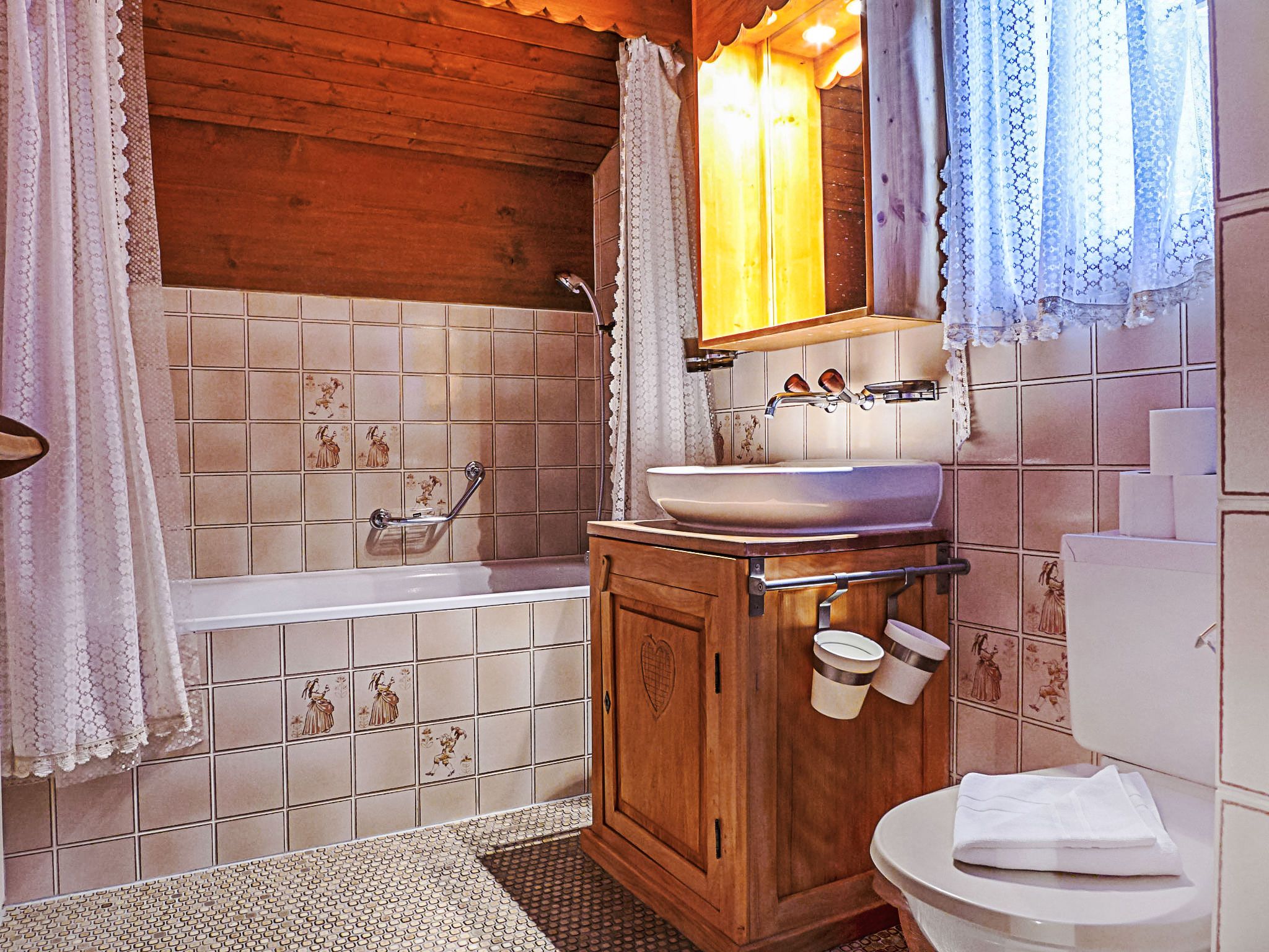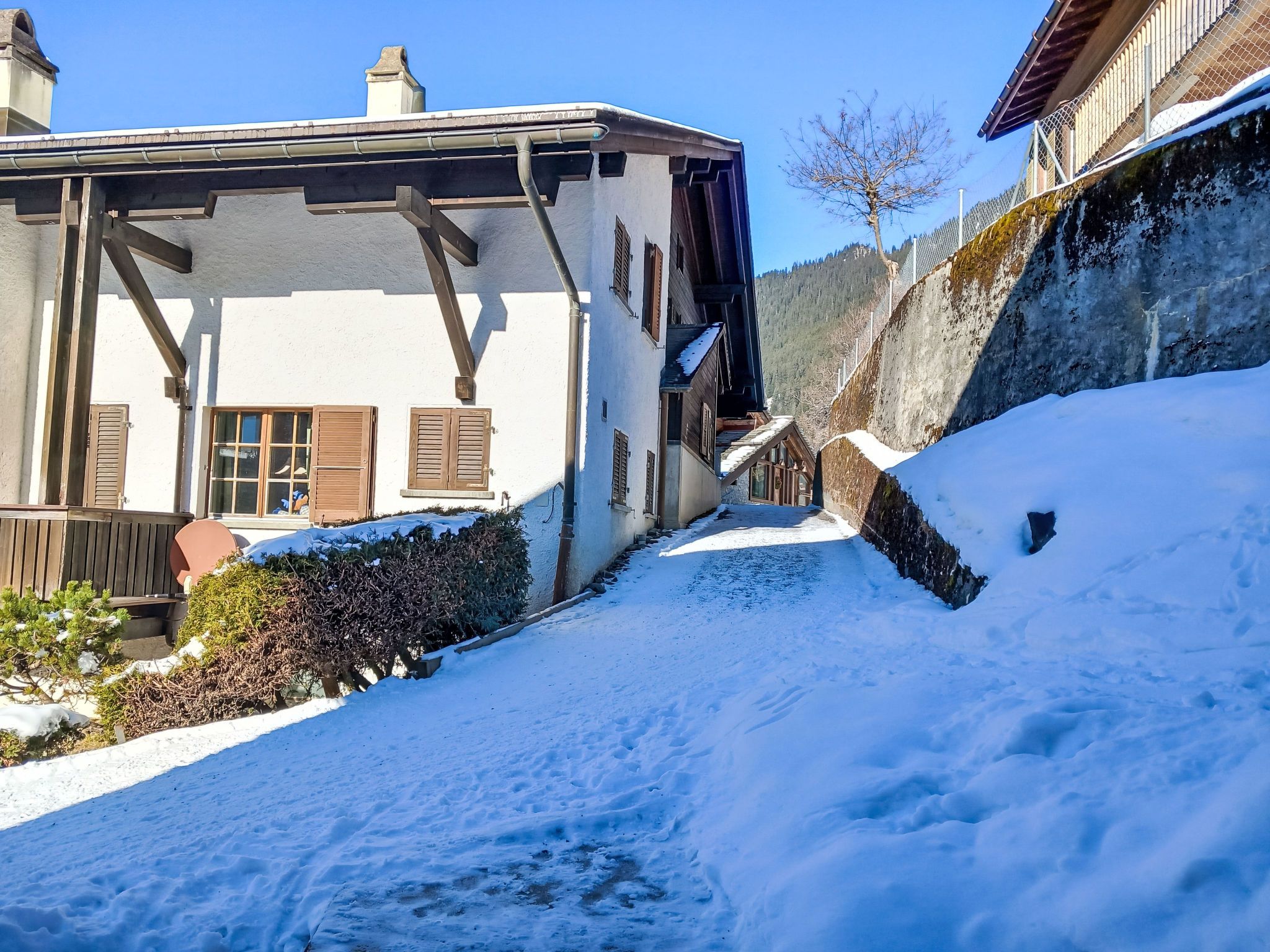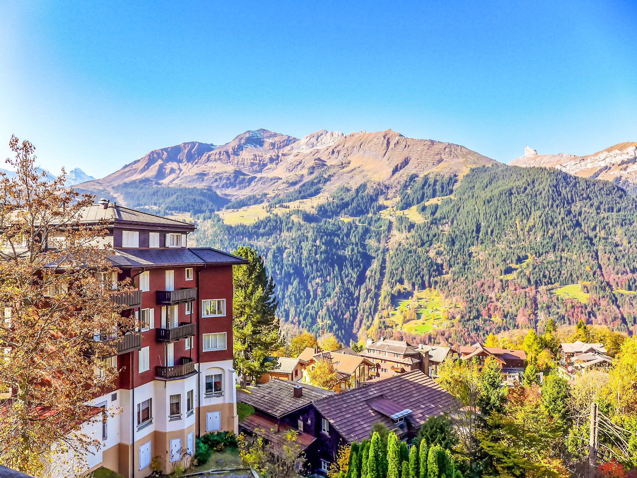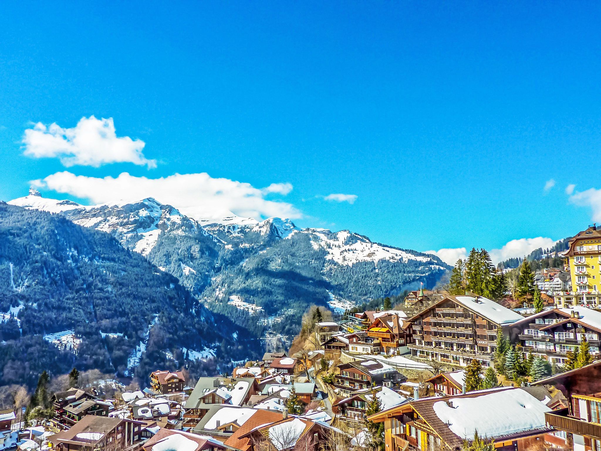 Wengen: Gemütliches Chalet Biwak. Im Ort, 350 m vom Zentrum, ruhige, sonnige Lage, Richtung Westen. Im Hause: Zentralheizung, Waschmaschine, Wäschetrockner (zur Mitbenutzung). Einkaufsservice vor Anreise möglich. Einkaufsgeschäft 400 m, Supermarkt 350 m, Einkaufszentrum 400 m, Restaurant 300 m, Bäckerei, Fußgängerzone 400 m, Bushaltestelle Lauterbrunnen (by train) 3.4 km, Bahnstation Wengen 350 m, Freibad 400 m. Tennis, Luftseilbahn, Bergeisenbahn, Gondelbahn, Skisportanlagen 400 m, Skipisten 50 m, Skiverleih, Kinderskischule, Eisfeld 400 m. Bekannte Skigebiete sind gut erreichbar: Jungfrauregion. Bekannte Seen in der Umgebung sind gut erreichbar: Thunersee 13 km, Brienzersee 13 km. Bitte beachten: autofreie Ferienanlage. Geeignet für Familien. Bei guter Schneelage Zufahrt mit den Skiern bis zum Haus. Anreise ist nur mit dem Zug ab Lauterbrunnen möglich – 14 Min. Fahrzeit.