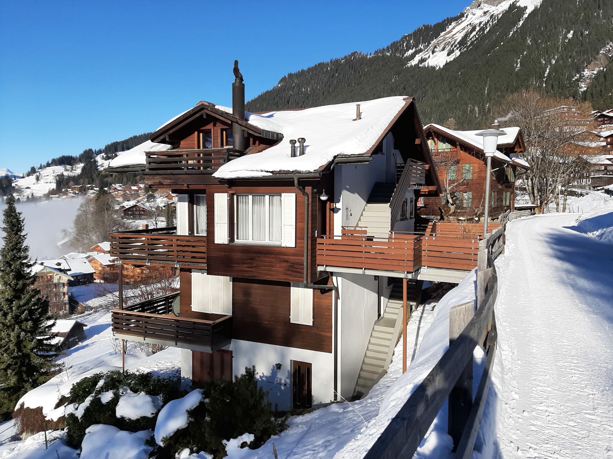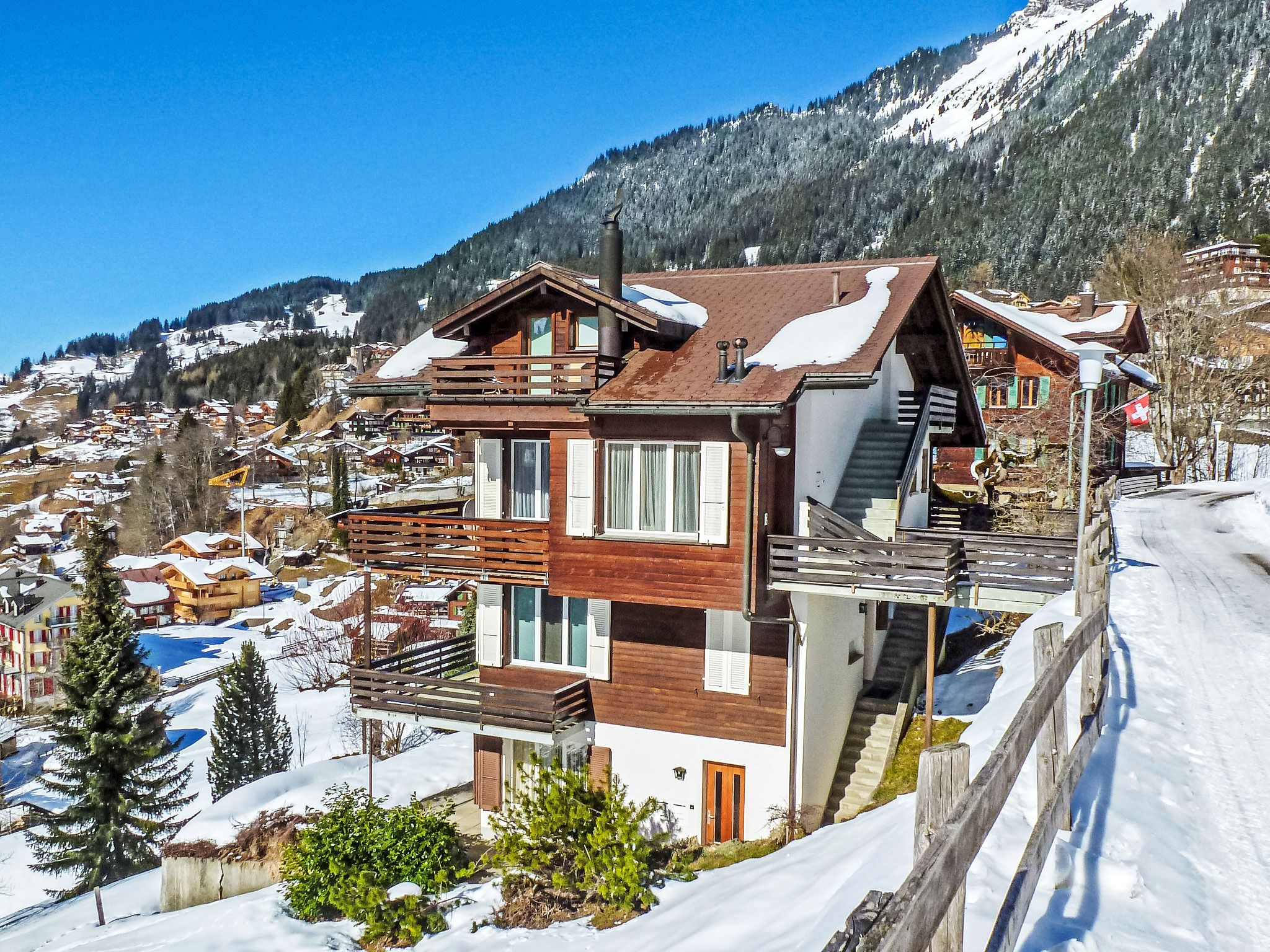 Appartementhaus Melodie. 700 m vom Zentrum von Wengen, ruhige, sonnige Lage am Hang. Im Hause: Zentralheizung. Einkaufsservice vor Anreise möglich. Einkaufsgeschäft, Supermarkt 700 m, Restaurant 400 m, Bar, Bäckerei 700 m, Zentrum zu Fuss in 8 Minuten erreichbar, Bushaltestelle Lauterbrunnen (by train) 3.7 km, Bahnstation Wengen 700 m, Freibad 900 m. Luftseilbahn, Skisportanlagen 700 m, Kinderspielplatz 450 m. Bekannte Seen in der Umgebung sind gut erreichbar: Thunersee 13 km, Brienzersee 13 km. Bitte beachten: autofreie Ferienanlage. Die Anreise erfolgt mit der Bergbahn. Anreise ist nur mit dem Zug ab Lauterbrunnen möglich – 14 Min. Fahrzeit.