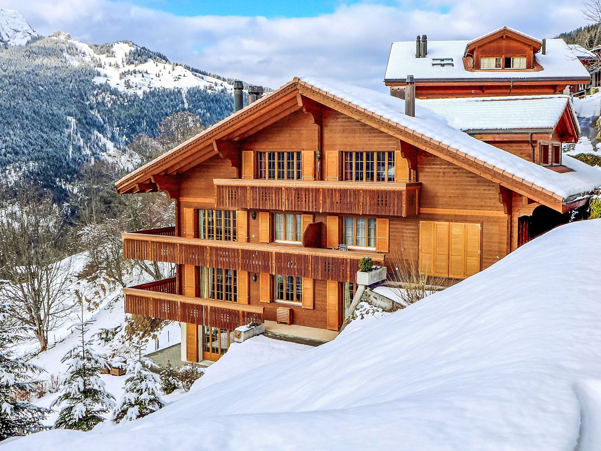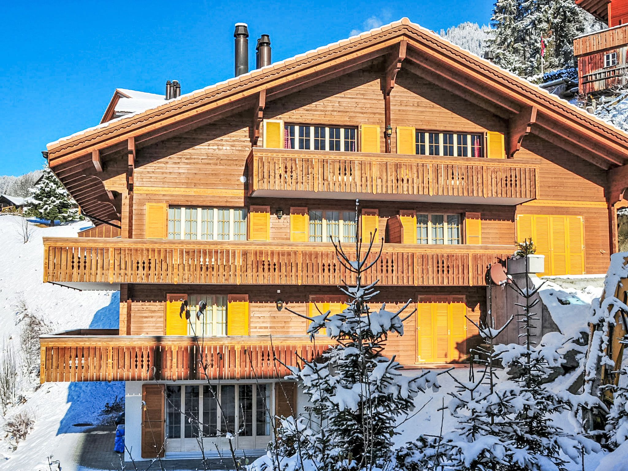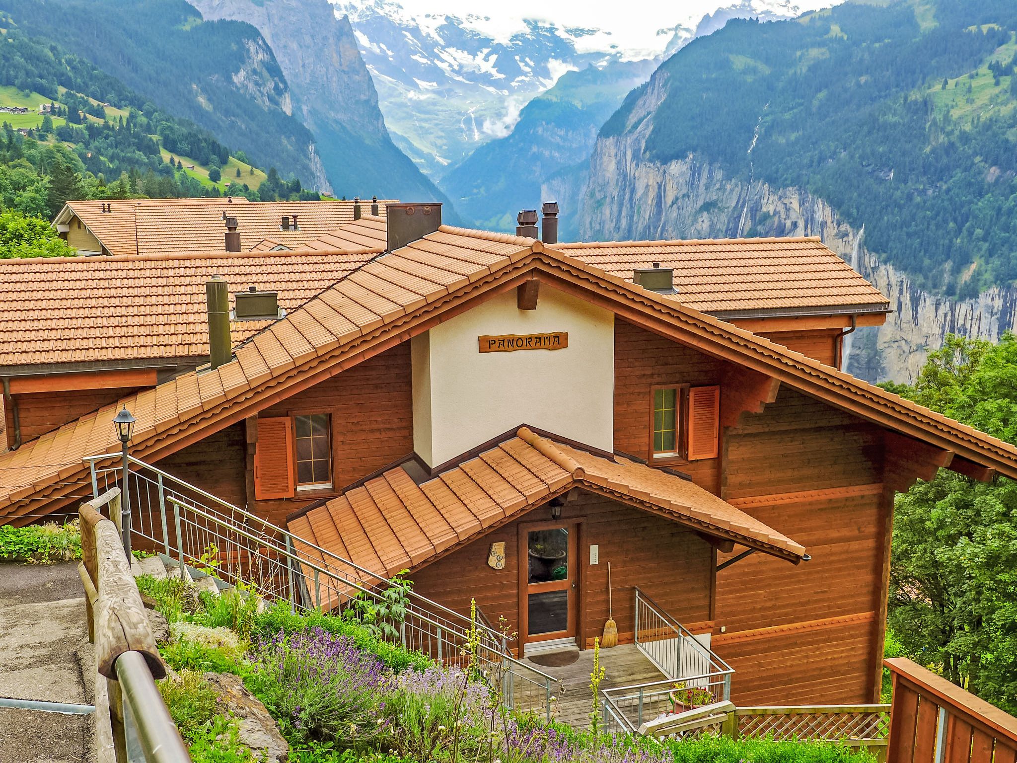 Appartementhaus Panorama, Baujahr 2003. Unterhalb von Wengen, 800 m vom Zentrum, ruhige, sonnige Lage am Hang. Im Hause: Zentralheizung. Einkaufsservice vor Anreise möglich. Zufahrt bis 30 m zum Haus. Treppenweg (20 Stufen) bis zum Haus. Einkaufsgeschäft, Supermarkt 800 m, Restaurant 500 m, Bar 800 m, Zentrum zu Fuss in 15 Minuten erreichbar, Bushaltestelle Lauterbrunnen (by train) 3.8 km, Bahnstation Wengen 800 m, Freibad 1.3 km. Luftseilbahn, Skisportanlagen 800 m, Kinderspielplatz 500 m. Bekannte Seen in der Umgebung sind gut erreichbar: Thunersee 13 km, Brienzersee 13 km. Bitte beachten: autofreie Ferienanlage. Die Anreise erfolgt mit der Bergbahn. Weitere Unterkünfte sind buchbar. Anreise ist nur mit dem Zug ab Lauterbrunnen möglich – 14 Min. Fahrzeit.