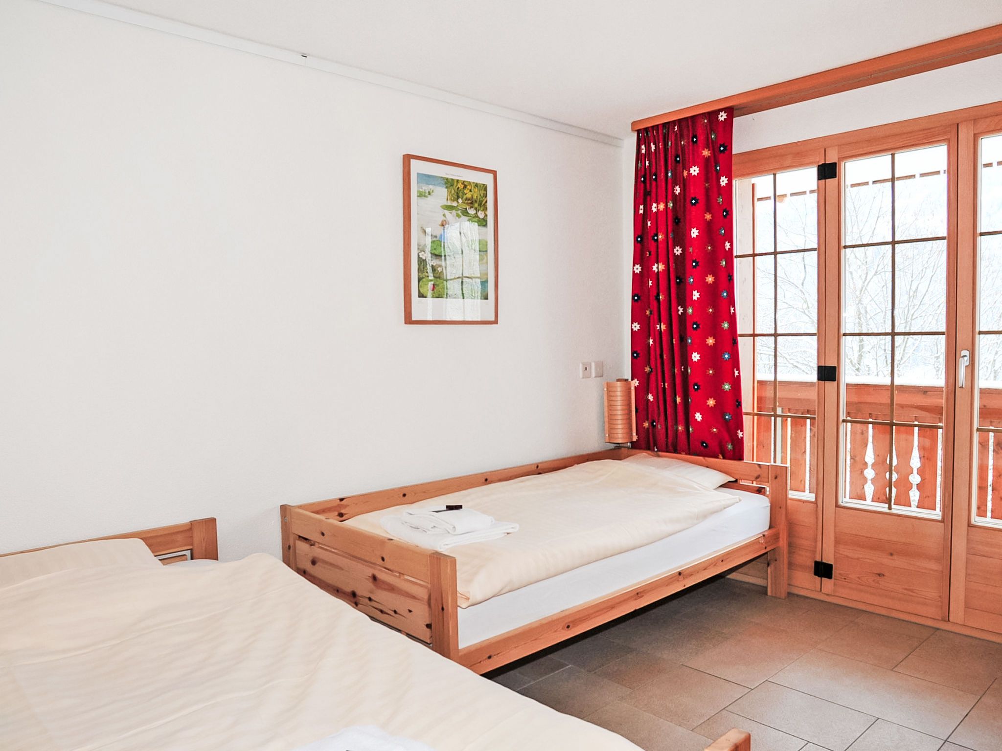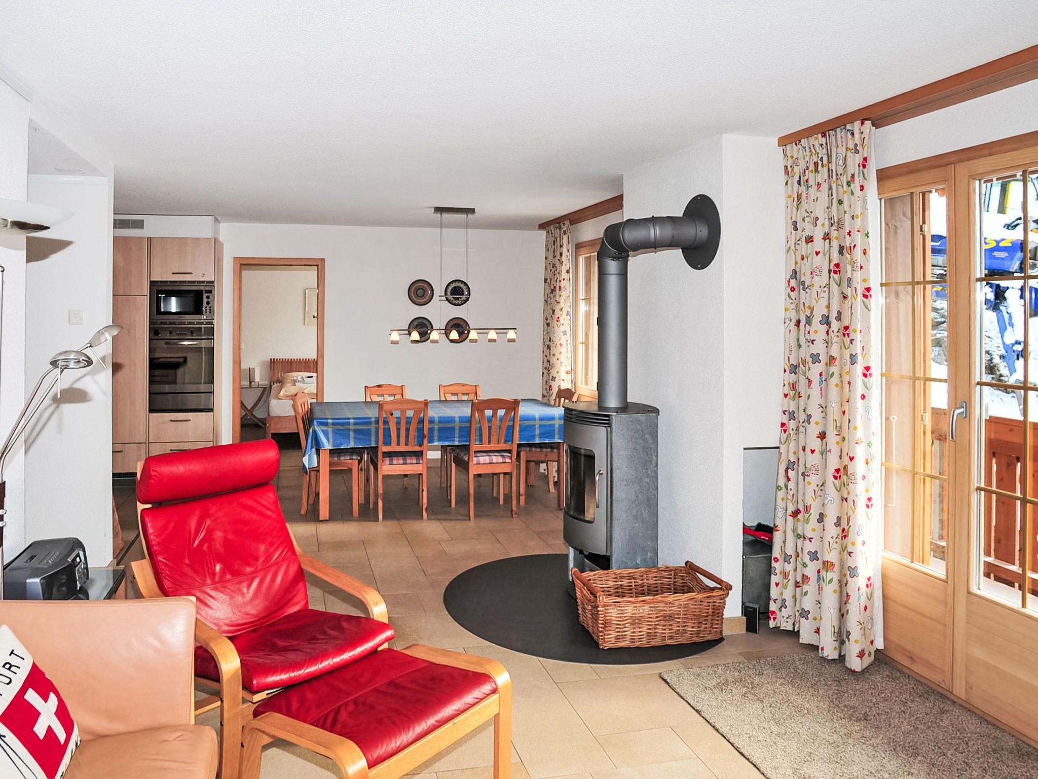 Panorama Apt. P, 4-Zimmer-Wohnung 100 m2 im 1. Stock. Hell, modern und geschmackvoll eingerichtet: Wohn-/Esszimmer mit Schwedenofen, Esstisch, Sat-TV und Radio. Ausgang zum Balkon. 2 Zimmer, jedes Zimmer mit 1 Doppelbett (2 x 90 cm, Länge 200 cm). 1 Zimmer mit 2 Betten (90 cm, Länge 200 cm). Offene Küche (Backofen, Geschirrspüler, 4 Induktionskochplatten, Toaster, Wasserkocher, Mikrowelle, elektrische Kaffeemaschine, Kapseln für die Kaffeemaschine (Nespresso) extra, Fondue Set (Käse)). Dusche/WC, Bad/Dusche/WC. Grosser Balkon. Balkonmöbel. Sehr schöne Sicht auf die Berge und das Tal. Zur Verfügung: Bügeleisen, Haartrockner, Holz (extra). Internet (Wireless LAN, gratis). Bitte beachten: Nichtraucher-Unterkunft.