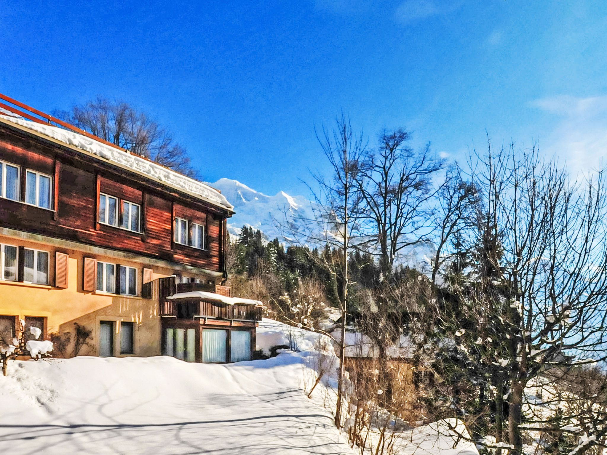 Appartementhaus Schweizerhof. 400 m vom Zentrum von Wengen, ruhige, sonnige Lage am Hang. Im Hause: Zentralheizung, Waschmaschine, Wäschetrockner (zur Mitbenutzung). Einkaufsservice vor Anreise möglich. Einkaufsgeschäft, Supermarkt 400 m, Restaurant 100 m, Bar, Bäckerei 400 m, Zentrum zu Fuss in 5 Minuten erreichbar, Bushaltestelle Lauterbrunnen (by train) 3.4 km, Bahnstation Wengen 400 m, Freibad 600 m. Luftseilbahn, Skisportanlagen 400 m, Kinderspielplatz 150 m. Bekannte Seen in der Umgebung sind gut erreichbar: Thunersee 13 km, Brienzersee 13 km. Bitte beachten: autofreie Ferienanlage. Die Anreise erfolgt mit der Bergbahn. Weitere Unterkünfte sind buchbar. Anreise ist nur mit dem Zug ab Lauterbrunnen möglich – 14 Min. Fahrzeit.