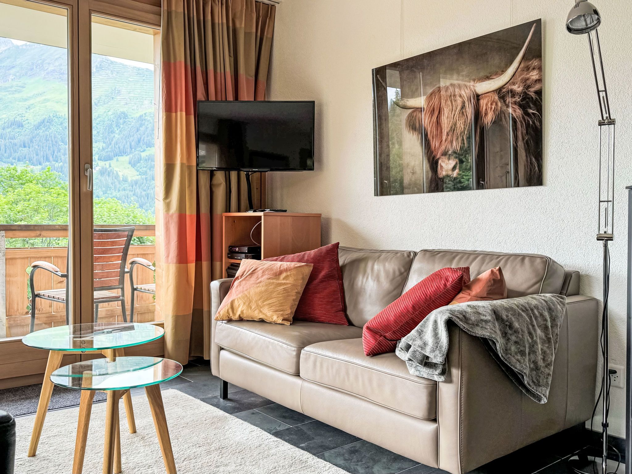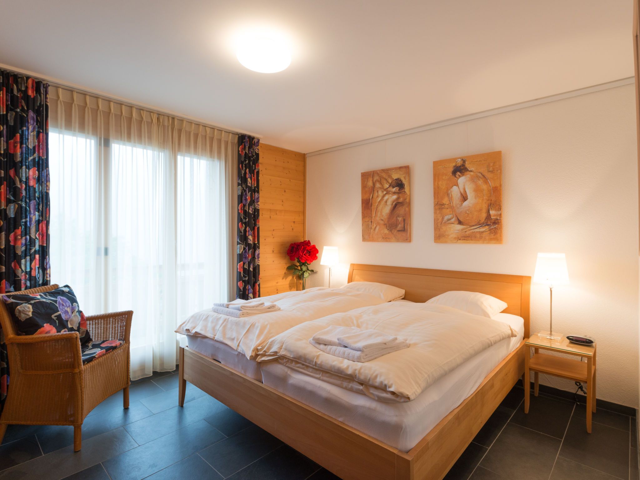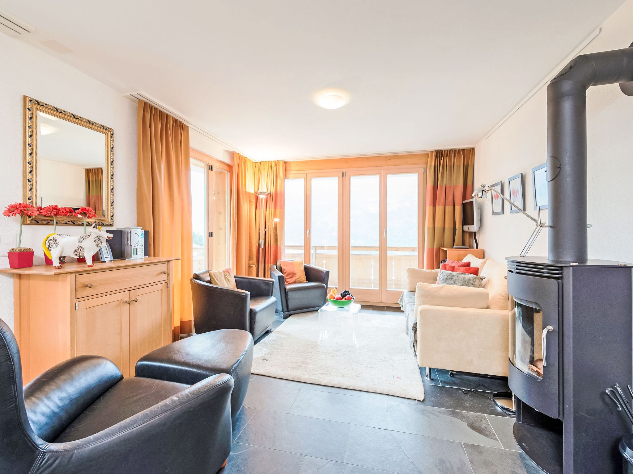Silberhorn Apt. DW, 3-Zimmer-Wohnung 65 m2 im 1. Stock. Hell, modern und geschmackvoll eingerichtet: Wohn-/Esszimmer mit Schwedenofen, Esstisch, Sat-TV, Kabel-TV, Internationale TV-Sender, Radio, CD und DVD. 1 Zimmer mit 1 Doppelbett (2 x 90 cm, Länge 200 cm) mit 1 Doppelbett (2 x 80 cm, Länge 200 cm). Offene Küche (Backofen, Geschirrspüler, 4 Induktionskochplatten, Toaster, Wasserkocher, elektrische Kaffeemaschine, Kapseln für die Kaffeemaschine (Nespresso) extra, Fondue Set (Käse)). Dusche/WC, Bad/Dusche/WC. Balkon 30 m2, Südlage und Westlage. Balkonmöbel. Sehr schöne Panoramasicht auf die Berge. Zur Verfügung: Bügeleisen, Haartrockner, Holz (extra). Internet (Wireless LAN, gratis). Blu-Ray Player. Bitte beachten: Nichtraucher-Unterkunft. CH3824.42.1