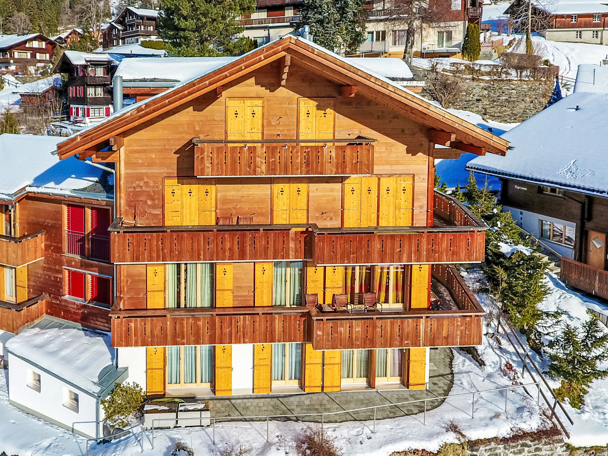 Appartementhaus Silberhorn, Baujahr 2002. 350 m vom Zentrum von Wengen, am Hang, exzellente Lage: Absolut zentral und dennoch ruhig. Im Hause: Zentralheizung. Einkaufsservice vor Anreise möglich. Einkaufsgeschäft, Supermarkt 350 m, Restaurant 200 m, Bar, Bäckerei 350 m, Zentrum zu Fuss in 5 Minuten erreichbar, Bushaltestelle Lauterbrunnen (by train) 3.4 km, Bahnstation Wengen 350 m, Freibad 500 m. Luftseilbahn, Skisportanlagen 400 m, Kinderspielplatz 200 m. Bekannte Seen in der Umgebung sind gut erreichbar: Thunersee 13 km, Brienzersee 13 km. Bitte beachten: autofreie Ferienanlage. Die Anreise erfolgt mit der Bergbahn. Weitere Unterkünfte sind buchbar. Anreise ist nur mit dem Zug ab Lauterbrunnen möglich – 14 Min. Fahrzeit.