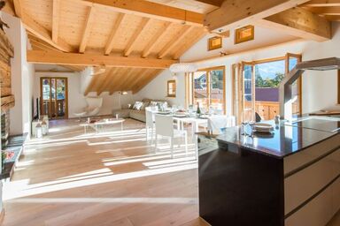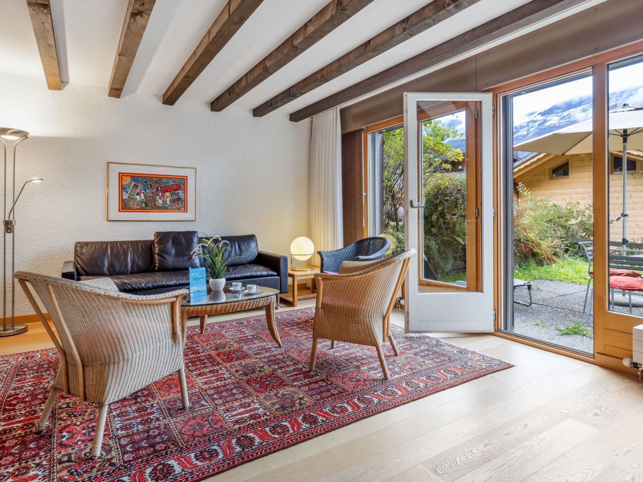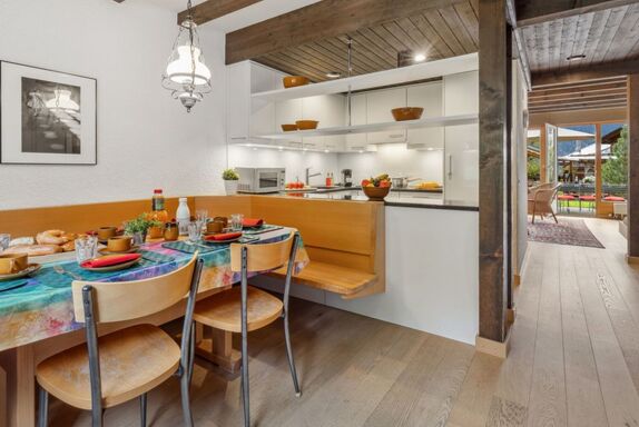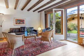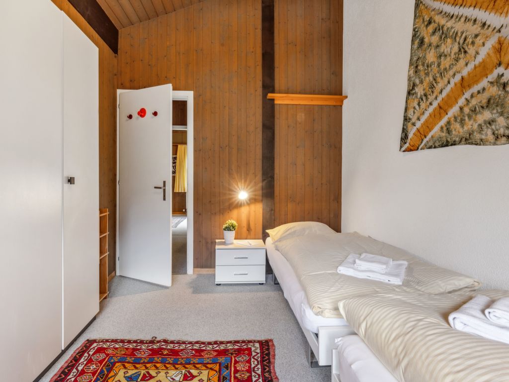 Bärnermutz, 4-Zimmer-Wohnung 90 m2 auf 2 Stockwerken. Geräumig und hell, teilweise abgeschrägt, komfortabel und gemütlich eingerichtet: Wohnzimmer mit offenem Kamin, Kabel-TV, Radio, CD und DVD. Wohnküche (Backofen, Geschirrspüler, 4 Glaskeramikplatten, Toaster, Wasserkocher, Mikrowelle, elektrische Kaffeemaschine, Kapseln für die Kaffeemaschine (Nespresso) extra, Racletteofen, Fondue Set (Käse)). Sep. WC. Obergeschoss: 1 Zimmer mit 1 Doppelbett (2 x 90 cm, Länge 200 cm). 1 Zimmer mit 2 Betten (90 cm, Länge 200 cm). 1 Zimmer mit 1 Bett (90 cm, Länge 190 cm), 1 x 2 Etagenbetten (90 cm, Länge 190 cm). Dusche/WC. Grosser Gartensitzplatz. Terrassenmöbel. Sehr schöne Sicht auf die Berge. Zur Verfügung: Haartrockner, Holz (extra). Internet (WLAN). Bitte beachten: geeignet für Familien. Nichtraucher-Unterkunft. Maximal 1 Haustier/Hund erlaubt.
