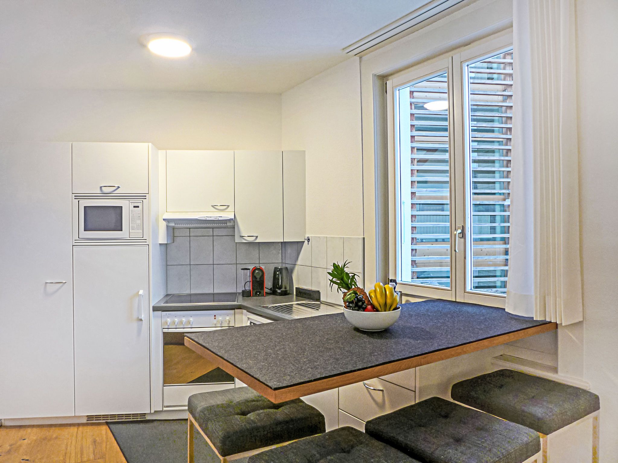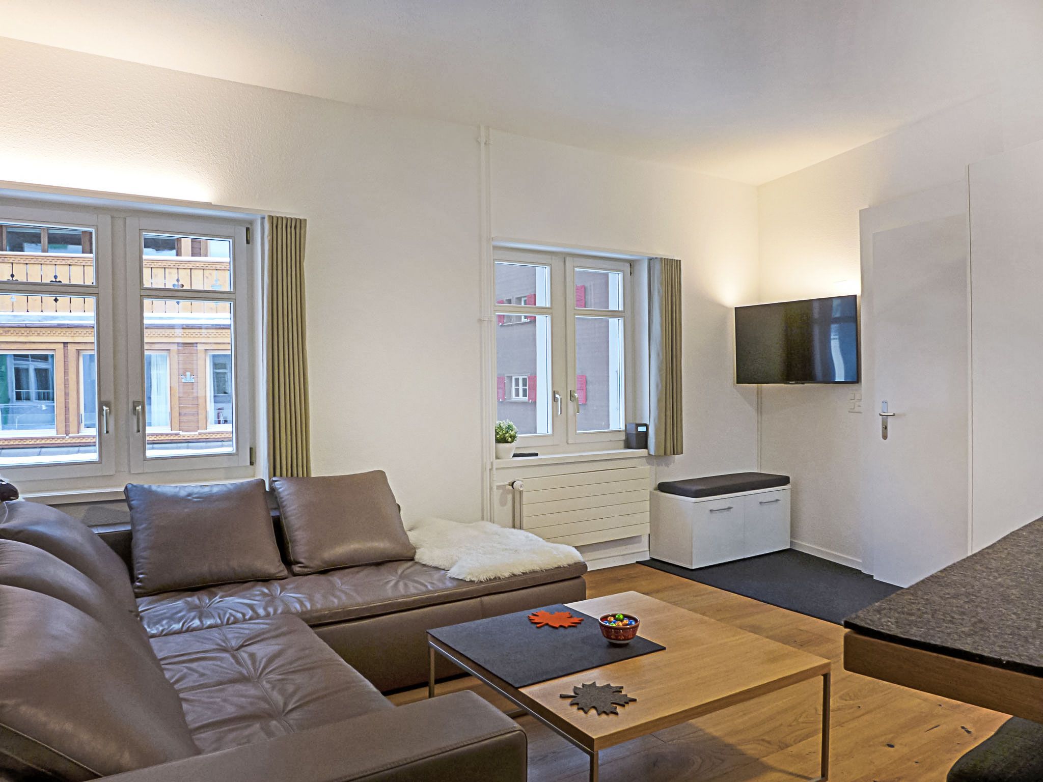 Haus Lauber Apt.1, 2-Zimmer-Wohnung 40 m2 im 1. Stock. Objekt geeignet für 2 Erwachsene + 2 Kinder. Modern und geschmackvoll eingerichtet: Wohn-/Esszimmer mit TV und Radio. 1 Zimmer mit 2 Doppelbetten (2 x 90 cm, Länge 200 cm). Offene Küche (Backofen, Geschirrspüler, 4 Glaskeramikplatten, Toaster, Wasserkocher, Mikrowelle, elektrische Kaffeemaschine, Kapseln für die Kaffeemaschine (Nespresso) extra, Racletteofen, Fondue Set (Käse)). Dusche/WC. Boiler. Holzdielenboden. Schöne Sicht auf die Ortschaft. Zur Verfügung: Haartrockner. Internet (Wireless LAN, gratis). Bitte beachten: nicht geeignet für Kinder unter 8 Jahren. Nichtraucher-Unterkunft.