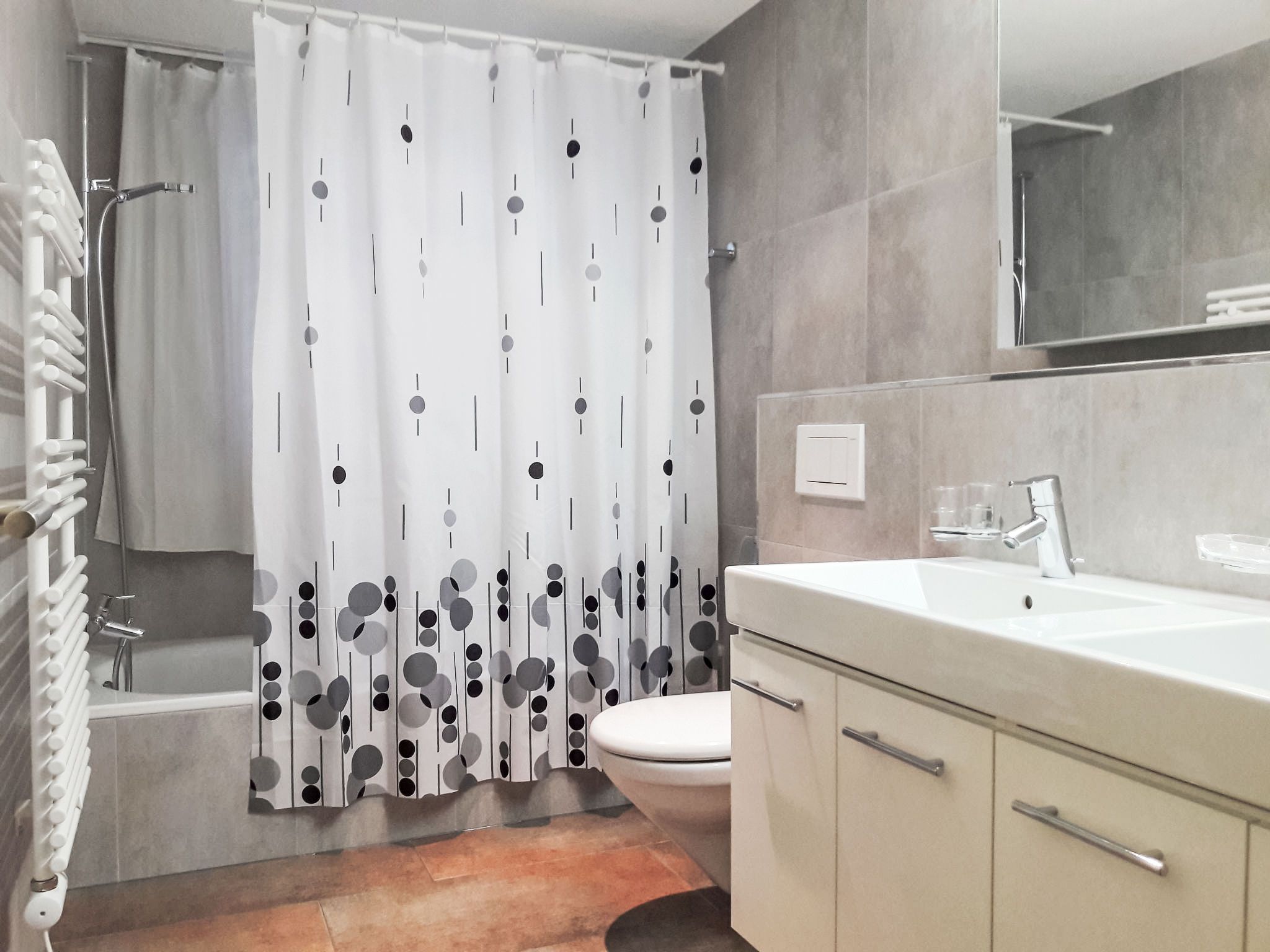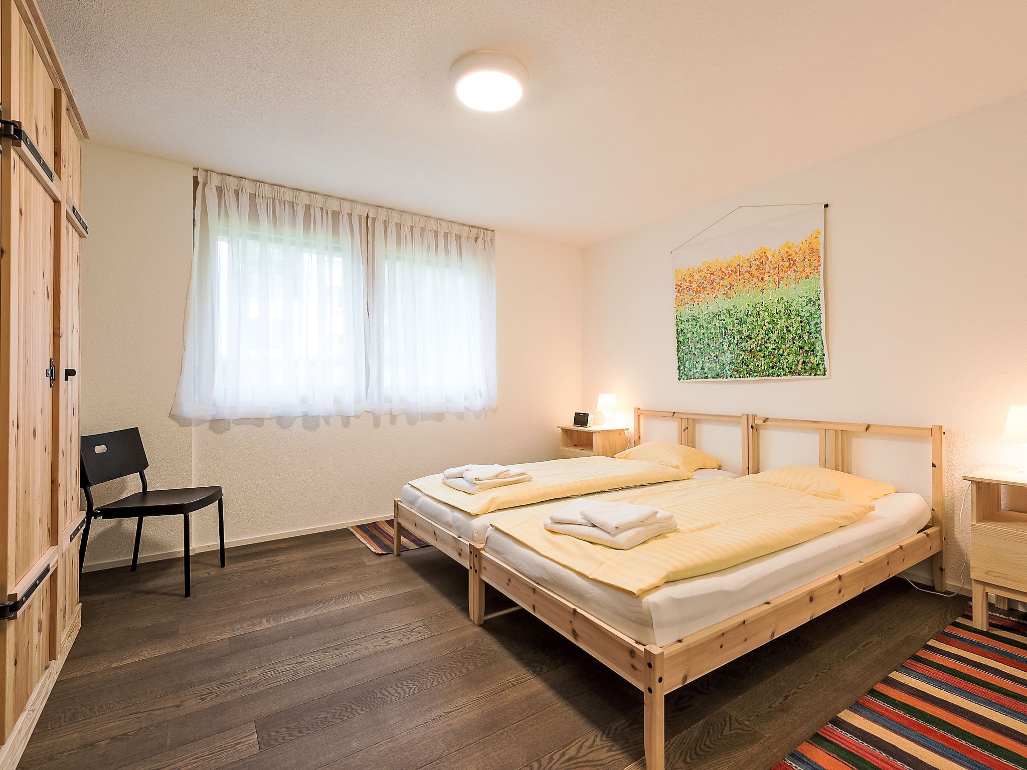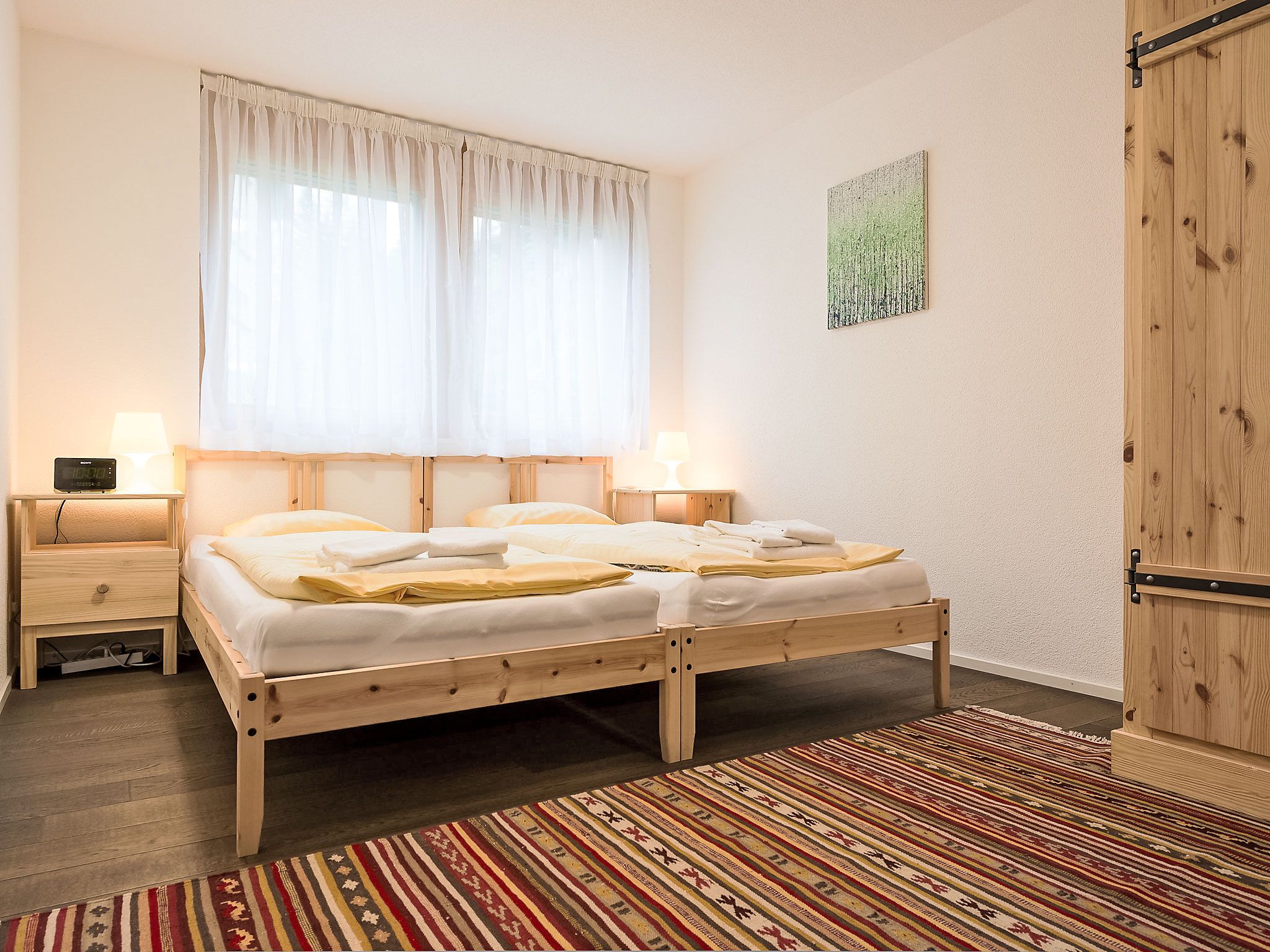 Bergfrieden Apt. 2, 3-Zimmer-Wohnung 100 m2 im 2. Stock. Geräumig und hell, modern und geschmackvoll eingerichtet: Wohnzimmer mit Kabel-TV. 2 Zimmer, jedes Zimmer mit 2 Betten (90 cm, Länge 200 cm), Radio. Offene Küche (Backofen, Geschirrspüler, 4 Glaskeramikplatten, Toaster, Wasserkocher, elektrische Kaffeemaschine, Kapseln für die Kaffeemaschine (Nespresso) extra, Fondue Set (Käse)). Dusche/WC, Bad/Dusche/WC. Grosse Terrasse. Terrassenmöbel. Sehr schöne Panoramasicht auf die Berge. Zur Verfügung: Haartrockner. Internet (Wireless LAN, gratis). Bitte beachten: Nichtraucher-Unterkunft.