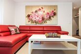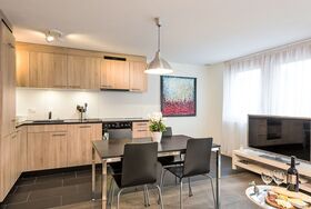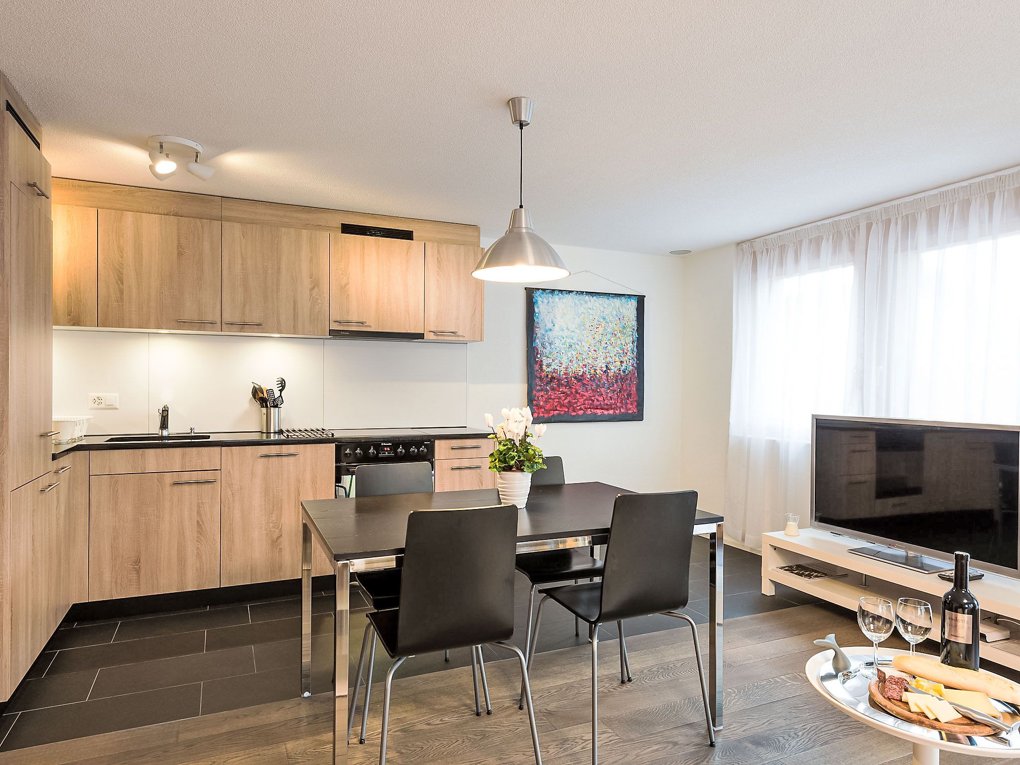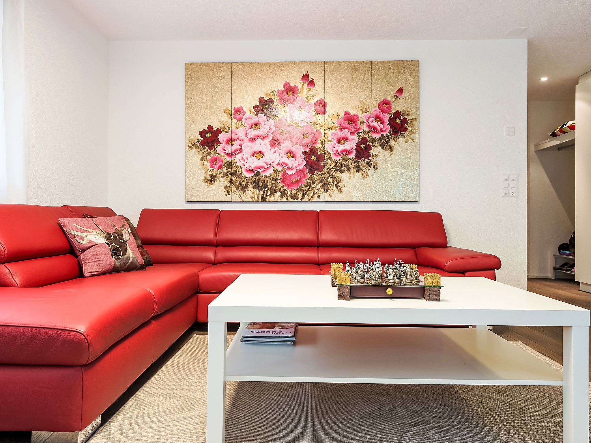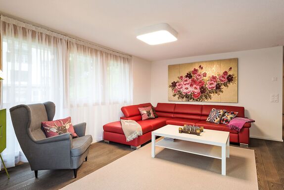 Bergfrieden Apt. 2, 3-Zimmer-Wohnung 100 m2 im 2. Stock. Geräumig und hell, modern und geschmackvoll eingerichtet: Wohnzimmer mit Kabel-TV. 2 Zimmer, jedes Zimmer mit 2 Betten (90 cm, Länge 200 cm), Radio. Offene Küche (Backofen, Geschirrspüler, 4 Glaskeramikplatten, Toaster, Wasserkocher, elektrische Kaffeemaschine, Kapseln für die Kaffeemaschine (Nespresso) extra, Fondue Set (Käse)). Dusche/WC, Bad/Dusche/WC. Grosse Terrasse. Terrassenmöbel. Sehr schöne Panoramasicht auf die Berge. Zur Verfügung: Haartrockner. Internet (Wireless LAN, gratis). Bitte beachten: Nichtraucher-Unterkunft.
