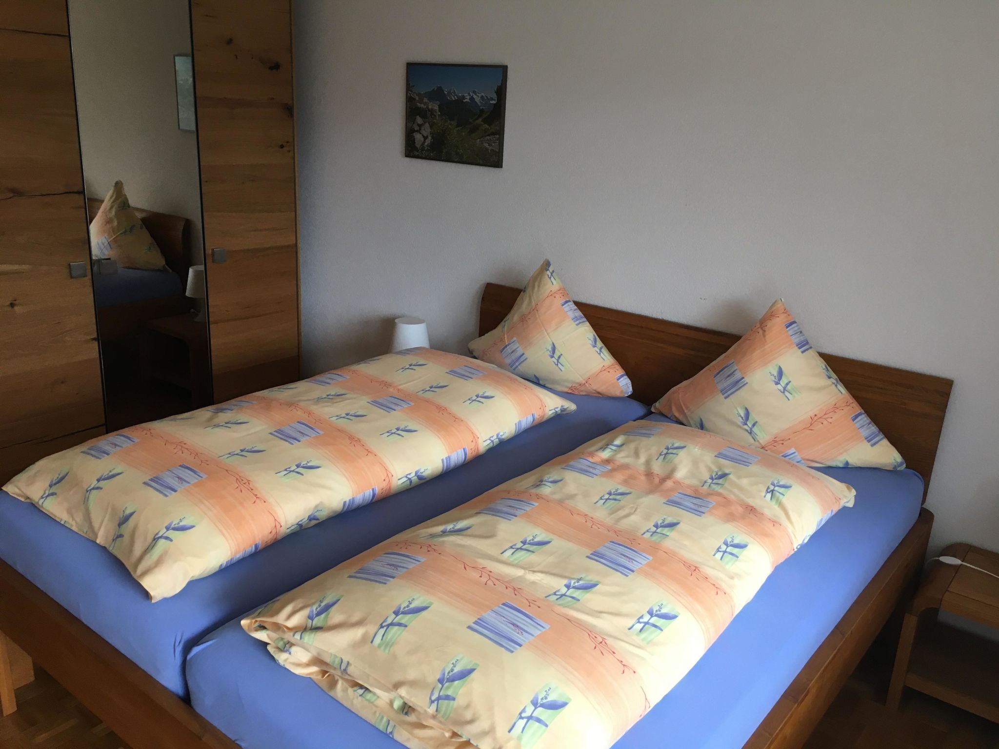 57 m2. Weitere Angaben des Anbieters: In unmittelbarer Nähe zum malerischen Brienzersee verbringen Sie in unseren grosszügigen Wohnungen in Ringgenberg erholsame Urlaubstage im Kreise Ihrer Liebsten. Getreu dem Motto „Als Gäste kommen, als Freunde gehen” empfangen wir seit 1990 Urlauber aus aller Welt mit herzlicher Gastfreundschaft. Damit es Ihnen während Ihres Aufenthalts an nichts fehlt, sind wir für Sie da. Für Ihren Urlaub bei uns benötigen Sie lediglich Ihre Kleider und gute Laune. Für den Rest sorgen wir. Alle Wohnungen sind mit einer Mikrowelle, einem Backofen, einem Kühlschrank, einem Fernseher, Balkon- und Gartenmöbel sowie gratis W-Lan ausgestattet. Die Aussenansicht ist nur ein Hausbeispiel und kann zum effektiven Haus variieren. Wohnung Nr. 3 Blumenweg 6 3852 Ringgenberg Diese Wohnung liegt im Haus mit den Wohnungen 1 - 4 am Blumenweg 6 in Ringgenberg. 3½-Zimmer-Wohnung, 57m², 4 Personen (2 Schlafzimmer, 1 Badezimmer) Wohn-/Esszimmer mit Cheminée, Sofa, grosser Esstisch. Offene Küche mit Geschirrspüler. 1 Schlafzimmer mit Doppelbett 180cm, 1 kleines Schlafzimmer mit franz. Bett 140cm. 1 Badezimmer mit Dusche/WC. Gartensitzplatz 40m2 mit Aussengrill. Autozufahrt bis zum Haus, gratis Parkplatz. Bett-, Bad- und Küchenwäsche stehen gratis zur Verfügung. Heizung, Strom, Wasser, TV sowie die Endreinigung sind im Totalpreis inbegriffen.