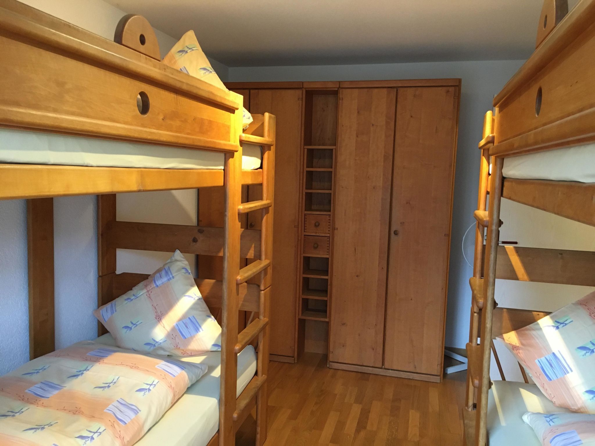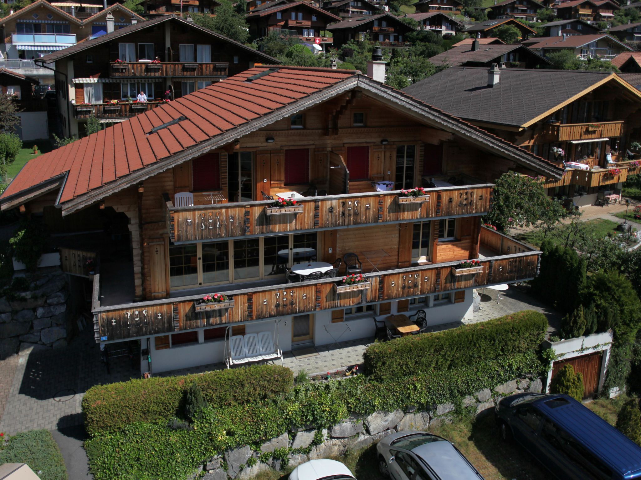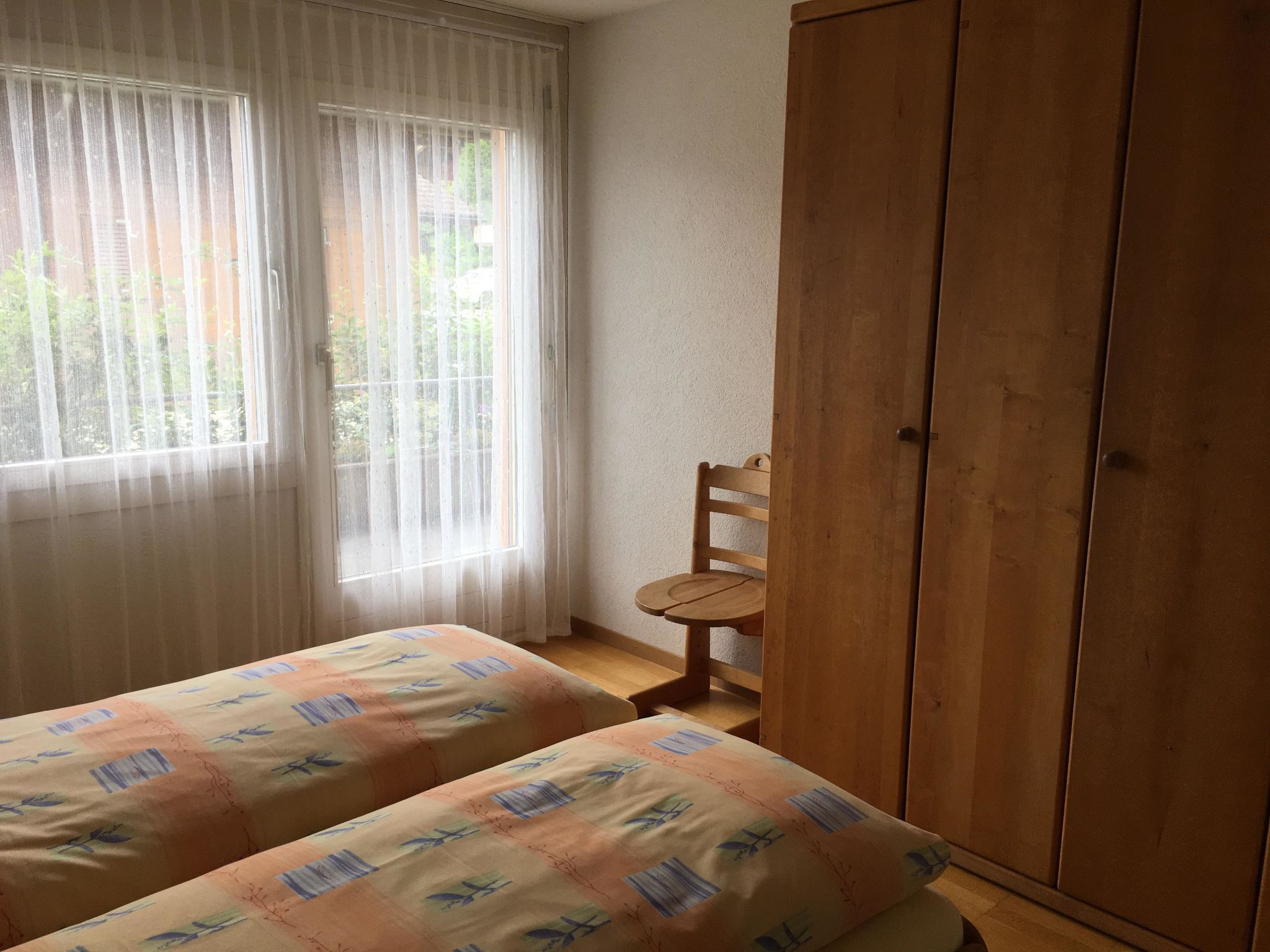 68 m2. Weitere Angaben des Anbieters: In unmittelbarer Nähe zum malerischen Brienzersee verbringen Sie in unseren grosszügigen Wohnungen in Ringgenberg erholsame Urlaubstage im Kreise Ihrer Liebsten. Getreu dem Motto „Als Gäste kommen, als Freunde gehen” empfangen wir seit 1990 Urlauber aus aller Welt mit herzlicher Gastfreundschaft. Damit es Ihnen während Ihres Aufenthalts an nichts fehlt, sind wir für Sie da. Für Ihren Urlaub bei uns benötigen Sie lediglich Ihre Kleider und gute Laune. Für den Rest sorgen wir. Alle Wohnungen sind mit einer Mikrowelle, einem Backofen, einem Kühlschrank, einem Fernseher, Balkon- und Gartenmöbel sowie gratis W-Lan ausgestattet. Die Aussenansicht ist nur ein Hausbeispiel und kann zum effektiven Haus variieren. Wohnung Nr. 1 Blumenweg 6 3852 Ringgenberg Diese Wohnung liegt im Haus mit den Wohnungen 1 - 4 am Blumenweg 6 in Ringgenberg. 3½-Zimmer-Wohnung, 68m², 4-6 Personen (2 Schlafzimmer, 1 Badezimmer) Wohn-/Esszimmer mit Cheminéeofen, Sofa, Esstisch mit Eckbank. Offene Küche mit Geschirrspüler. 1 Schlafzimmer mit Doppelbett, 1 Schlafzimmer mit 2 Etagenbetten für 4 Personen. 1 Badezimmer mit Dusche/WC/Doppellavabo. Balkon 35m2 mit schöner Aussicht. Autozufahrt bis zum Haus, gratis Parkplatz. Bett-, Bad- und Küchenwäsche stehen gratis zur Verfügung. Heizung, Strom, Wasser, TV sowie die Endreinigung sind im Totalpreis inbegriffen.