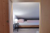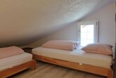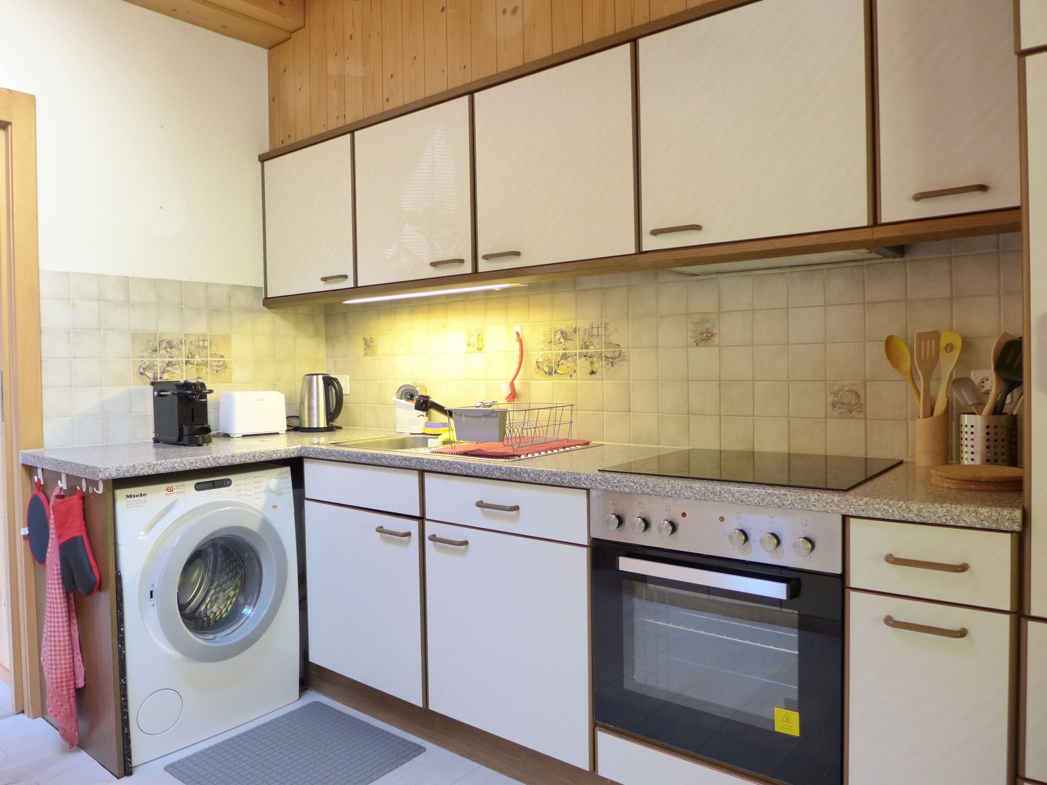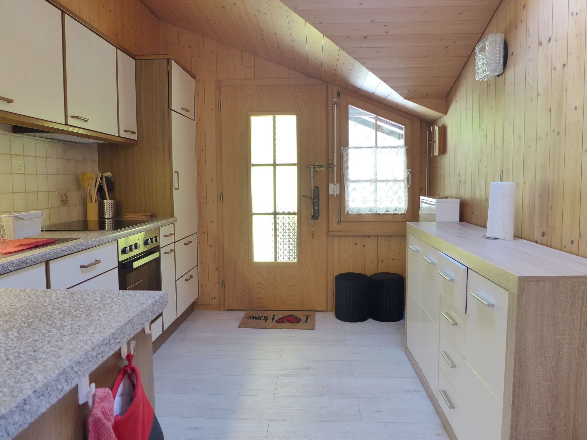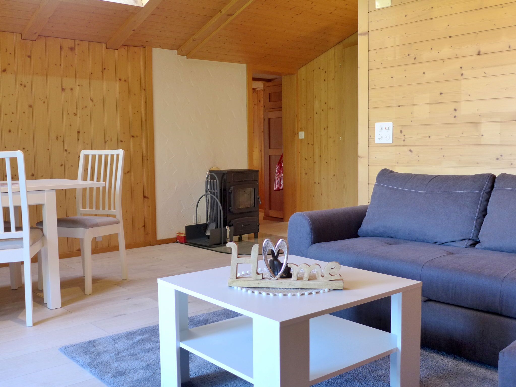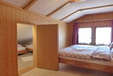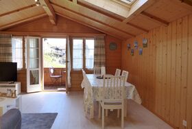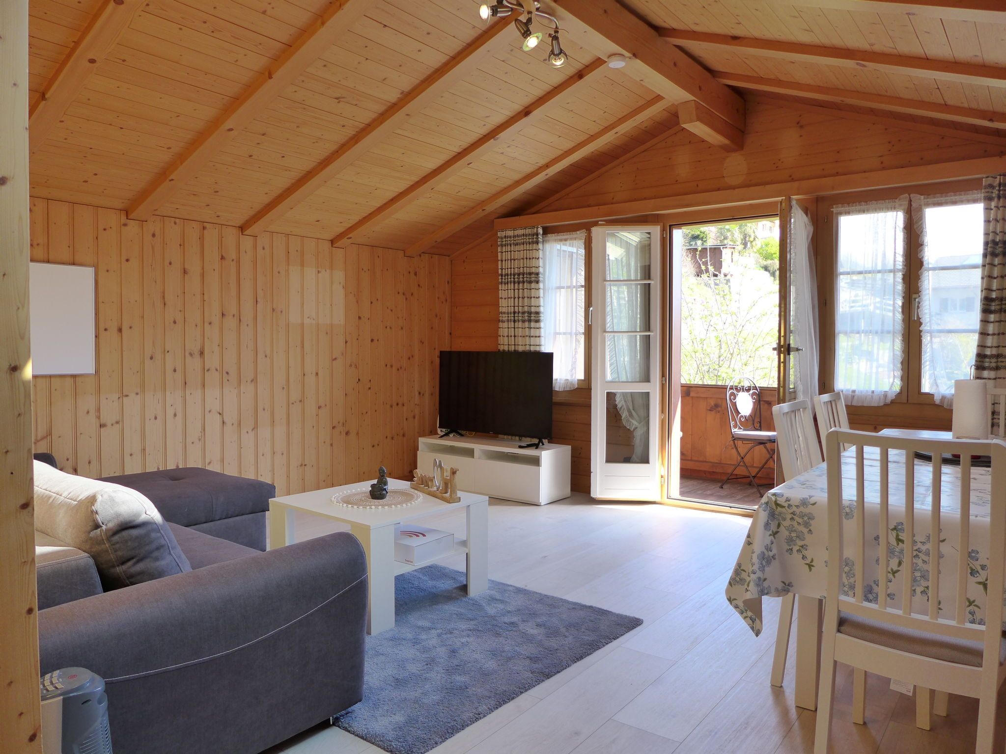 Chalet Vamika, 2-Zimmer-Wohnung 52 m2, im Dachgeschoss. Objekt geeignet für 2 Erwachsene + 2 Kinder. Hell, teilweise renoviert im Jahre 2023, zweckmässig und gemütlich eingerichtet: offenes Wohn-/Schlafzimmer mit 1 Doppeldiwanbett (140 cm, Länge 200 cm), Schwedenofen, Esstisch und Digital-TV. Ausgang zum Balkon. 1 Doppelzimmer mit 1 Doppelbett (180 cm, Länge 200 cm). Abgeschrägtes kleines, verbundenes Zimmer, niedrige Türrahmen, Höhe 150 cm mit 2 Betten (90 cm, Länge 200 cm). Offene Küche im Eingang (4 Kochplatten, Backofen, Toaster, Wasserkocher, elektrische Kaffeemaschine, Kapseln für die Kaffeemaschine (Nespresso) extra, Racletteofen, Fondue Set (Käse)). Dusche/WC. E-Heizung, Holzheizung. Heizung nicht in allen Räumen. Balkon, Ostlage und Südlage. Balkonmöbel. Herrliche Sicht auf den See und die Berge. Zur Verfügung: Waschmaschine, Babybett bis 2 Jahre (extra), Haartrockner, Holz (gratis). Internet (WLAN, gratis). Parkplatz (1 Auto). Bitte beachten: Nichtraucher-Unterkunft. Rauchmelder, Feuerlöscher.