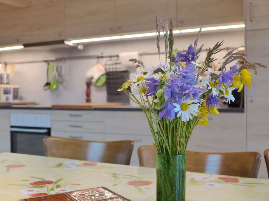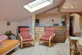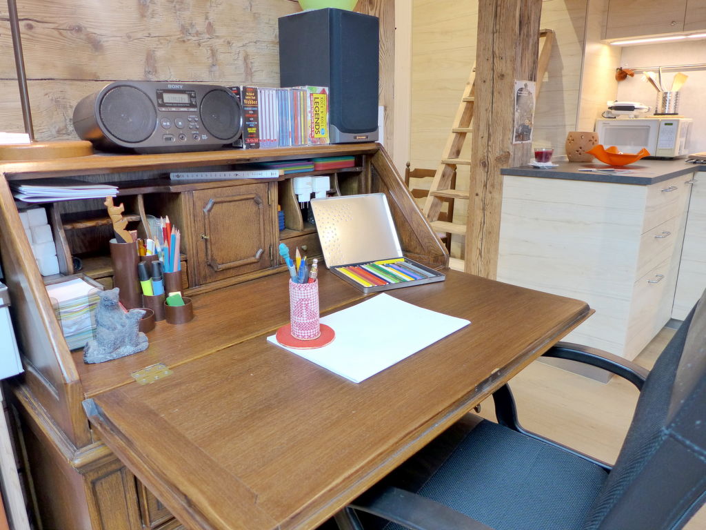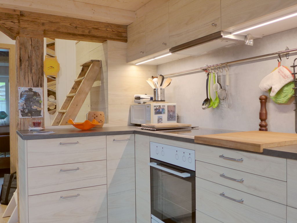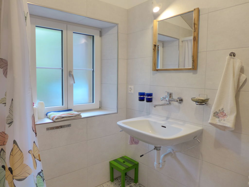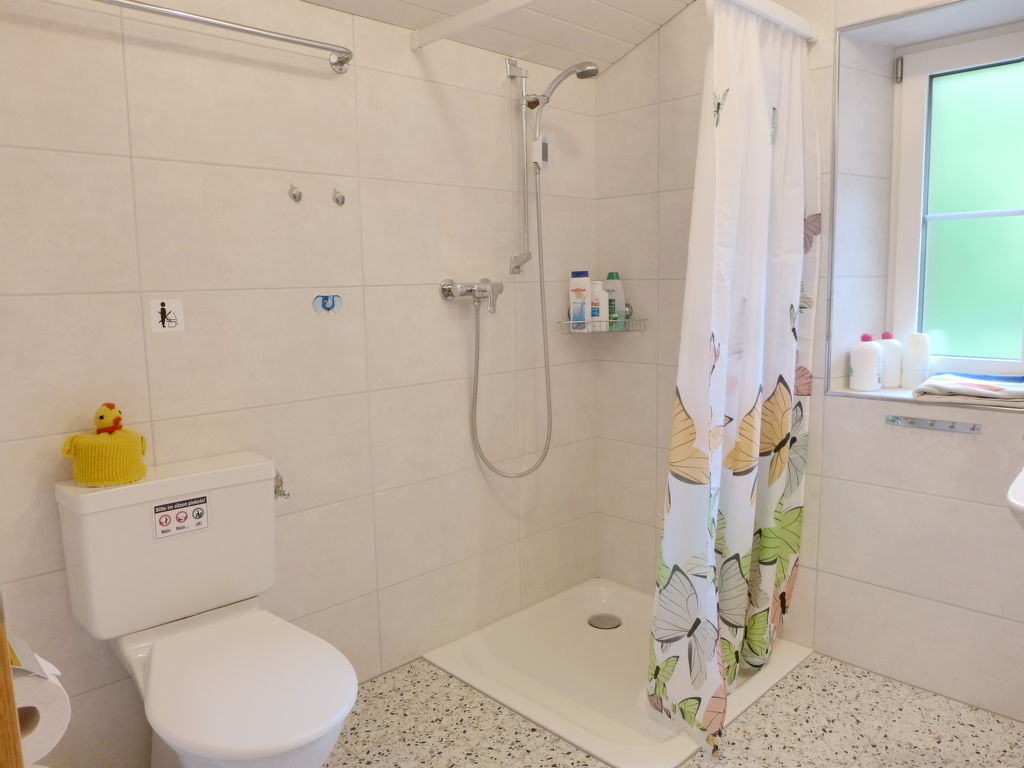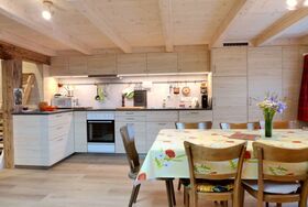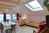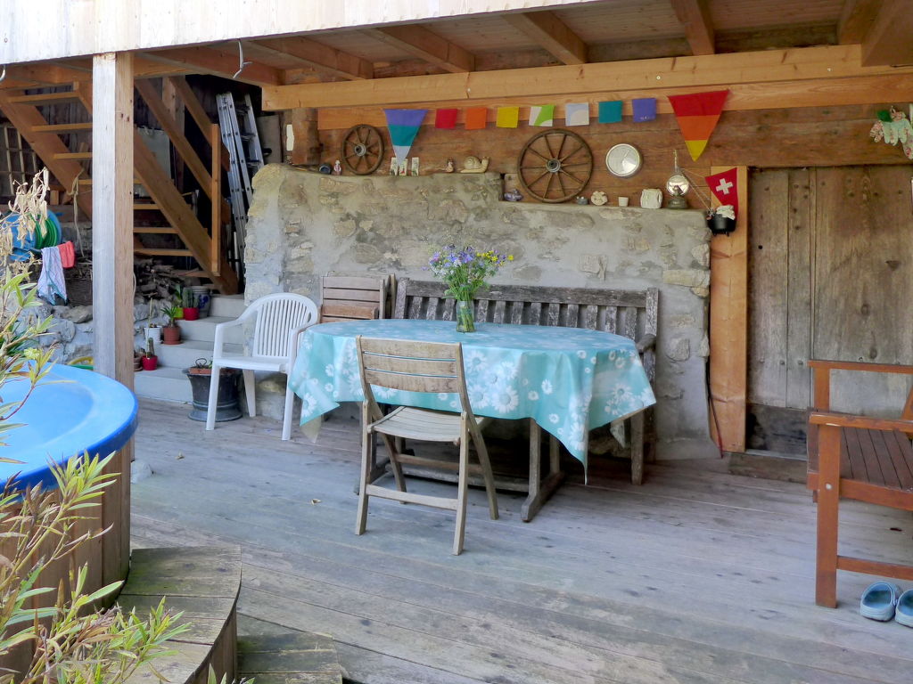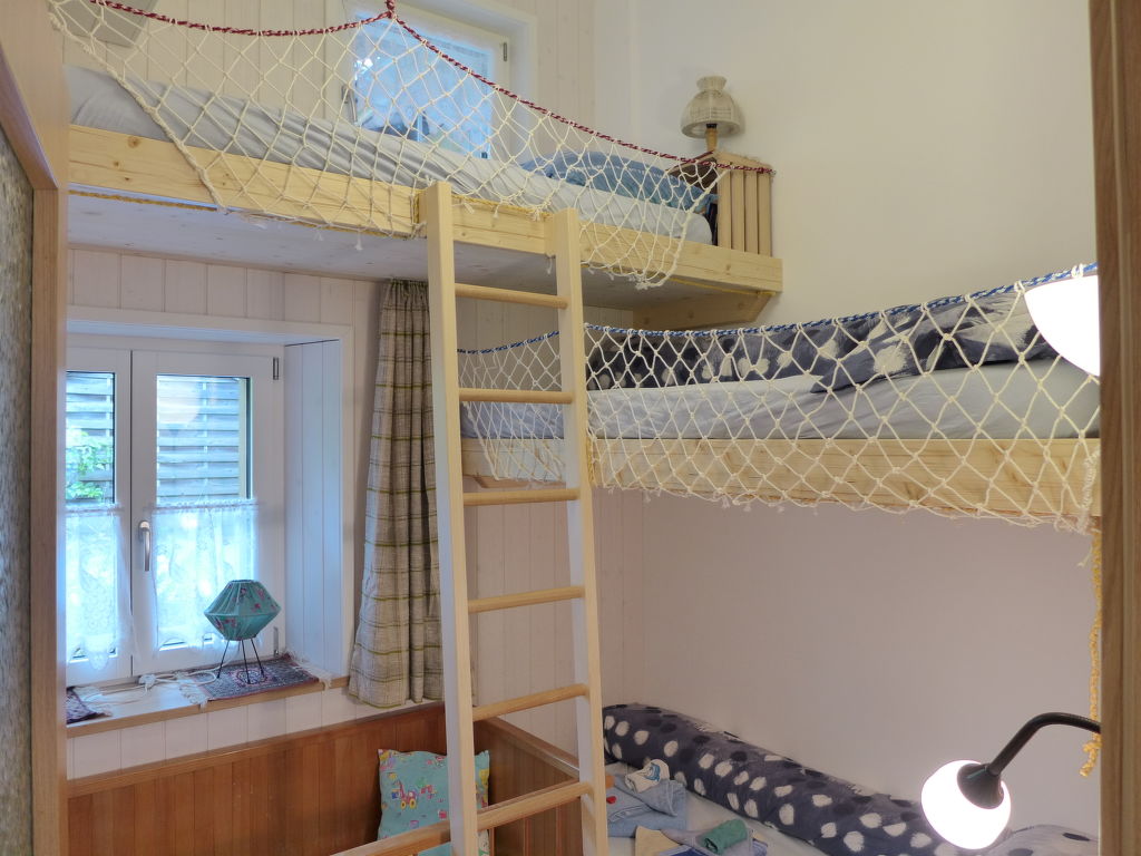 Beim Thor, 2-Zimmer-Wohnung 40 m2 auf 2 Stockwerken, im Obergeschoss. Geräumig und hell, sehr gemütlich eingerichtet: offenes grosses Wohn-/Schlafzimmer mit 2 Betten (90 cm, Länge 200 cm), Esstisch, Flachbildschirm, Radio, Stereoanlage und DVD. 1 Zimmer, auf 3 Ebenen, 3 Etagenbetten (90 cm, Länge 200 cm). Offene Küche (Backofen, Geschirrspüler, 3 Glaskeramikplatten, Toaster, Wasserkocher, Mikrowelle, elektrische Kaffeemaschine, Kapseln für die Kaffeemaschine (Delizio) extra, Racletteofen, Fondue Set (Käse)). Dusche/WC. Dachgeschoss: (Leiter) 1 abgeschrägtes Zimmer mit 4 Schlafmöglichkeiten (90 cm, Länge 200 cm). Kleine Terrasse. Balkonmöbel. Schöne Sicht auf die Berge und die Landschaft. Zur Verfügung: Babybett bis 2 Jahre (extra), Haartrockner. Internet (WLAN, gratis). Maximal 1 Haustier/Hund erlaubt. Bei Belegung mit weniger Personen als der maximalen Personenzahl stehen nicht alle Wohneinheiten zur Verfügung.