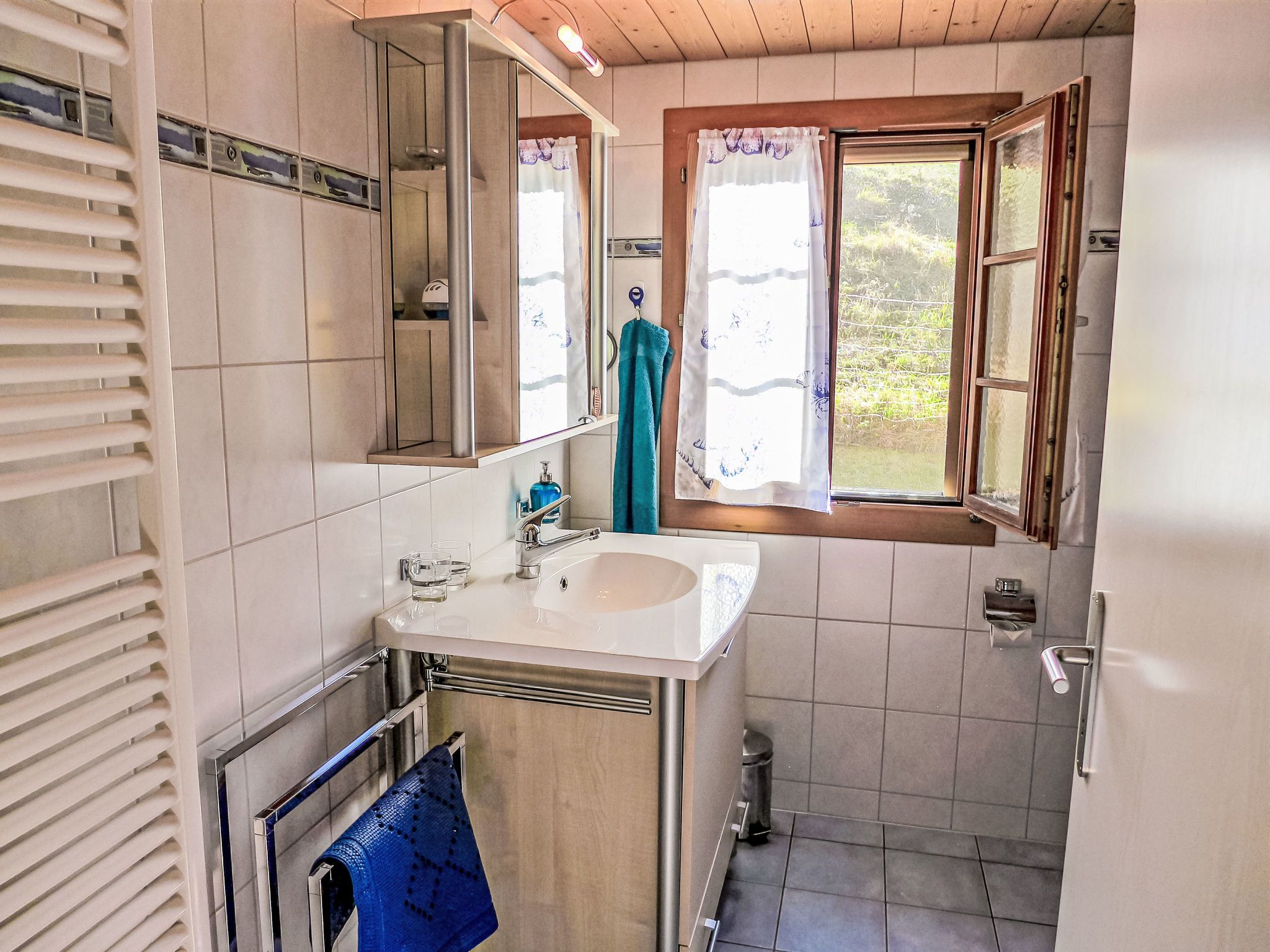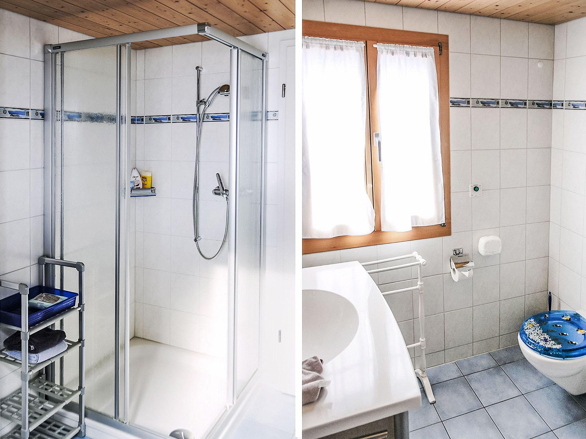 Reindli, 4-Zimmer-Doppelhaushälfte 90 m2 auf 2 Stockwerken. Geräumig, teilweise abgeschrägt, gemütlich und mit viel Holz eingerichtet: grosses Wohn-/Esszimmer mit Esstisch, Sat-TV, Internationale TV-Sender, Flachbildschirm und Radio. 1 Doppelzimmer 13 m2 mit 1 Doppelbett (2 x 90 cm, Länge 200 cm). Grosse Wohnküche 17 m2 (Geschirrspüler, 4 Glaskeramikplatten, Toaster, Wasserkocher, elektrische Kaffeemaschine, Racletteofen, Fondue Set (Käse)) mit Essecke. Dusche/WC. Obergeschoss: (steile Treppe) 1 abgeschrägtes Zimmer, Deckenhöhe 170 - 260 cm mit Dachfenster mit 1 Doppelbett (2 x 90 cm, Länge 200 cm). Offene Galerie 14 m2, Deckenhöhe 130 - 230 cm mit 1 Diwanbett (160 cm, Länge 200 cm). Grosser Gartensitzplatz. Gartengrill, Liegestühle (5). Herrliche Sicht auf die Berge und das Tal. Zur Verfügung: Kinderhochstuhl, Babybett bis 2 Jahre (extra), Haartrockner, Holz (gratis). Internet (Wireless LAN, gratis). Bitte beachten: geeignet für Familien. Nichtraucher-Unterkunft. Feuerlöscher. Anstelle eines abgeschlossenen Schlafzimmers befinden sich manche Schlafplätze in einem offenen Bereich (Galerie, Nische etc.).