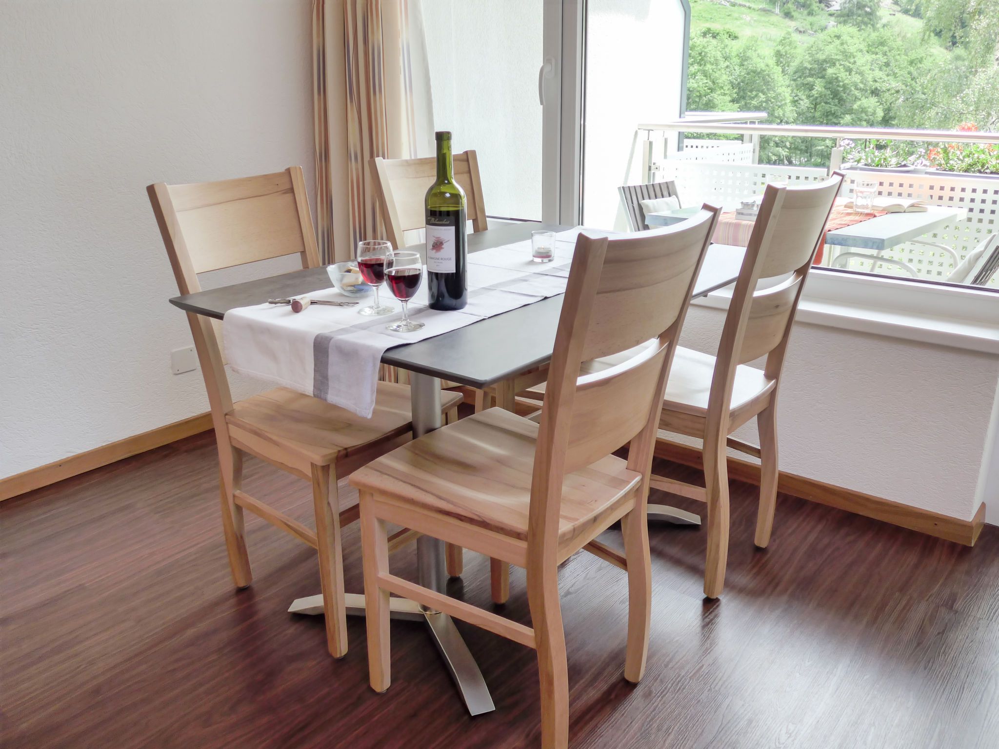 3-Zimmer-Wohnung 65 m2. Renoviert im Jahre 2015, schön und gemütlich eingerichtet: Wohn-/Esszimmer mit Sat-TV und Radio. 1 Zimmer mit 1 Doppelbett. 1 Zimmer mit 2 Betten. Offene Küche (Backofen, Geschirrspüler, 4 Glaskeramikplatten, elektrische Kaffeemaschine, Kapseln für die Kaffeemaschine (Nespresso) extra, Fondue Set (Käse)). Bad/WC. Bodenheizung. Balkon, Südlage. Terrassenmöbel. Sehr schöne Sicht auf die Berge. Zur Verfügung: Babybett, Haartrockner. Internet (Wireless LAN, gratis). Parkplatz (1 Auto). Bitte beachten: Nichtraucher-Unterkunft. Maximal 1 Haustier/Hund erlaubt.