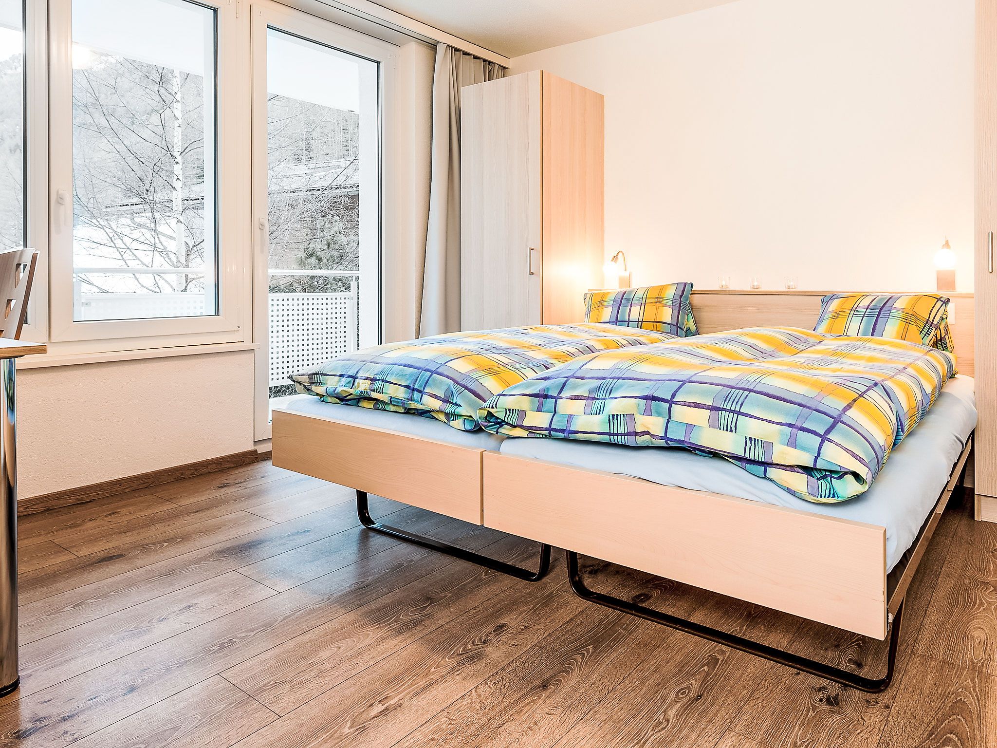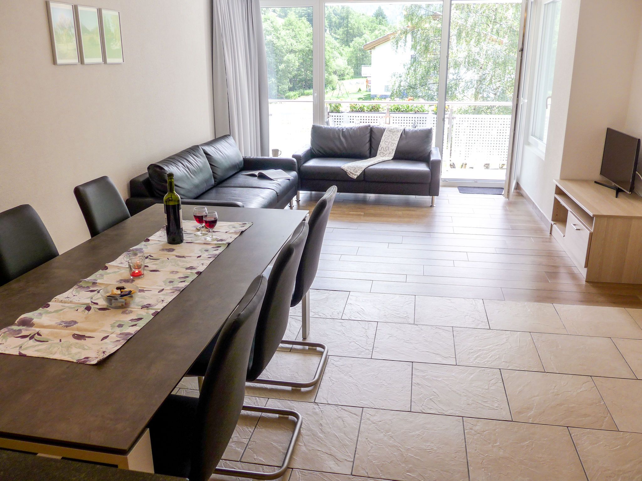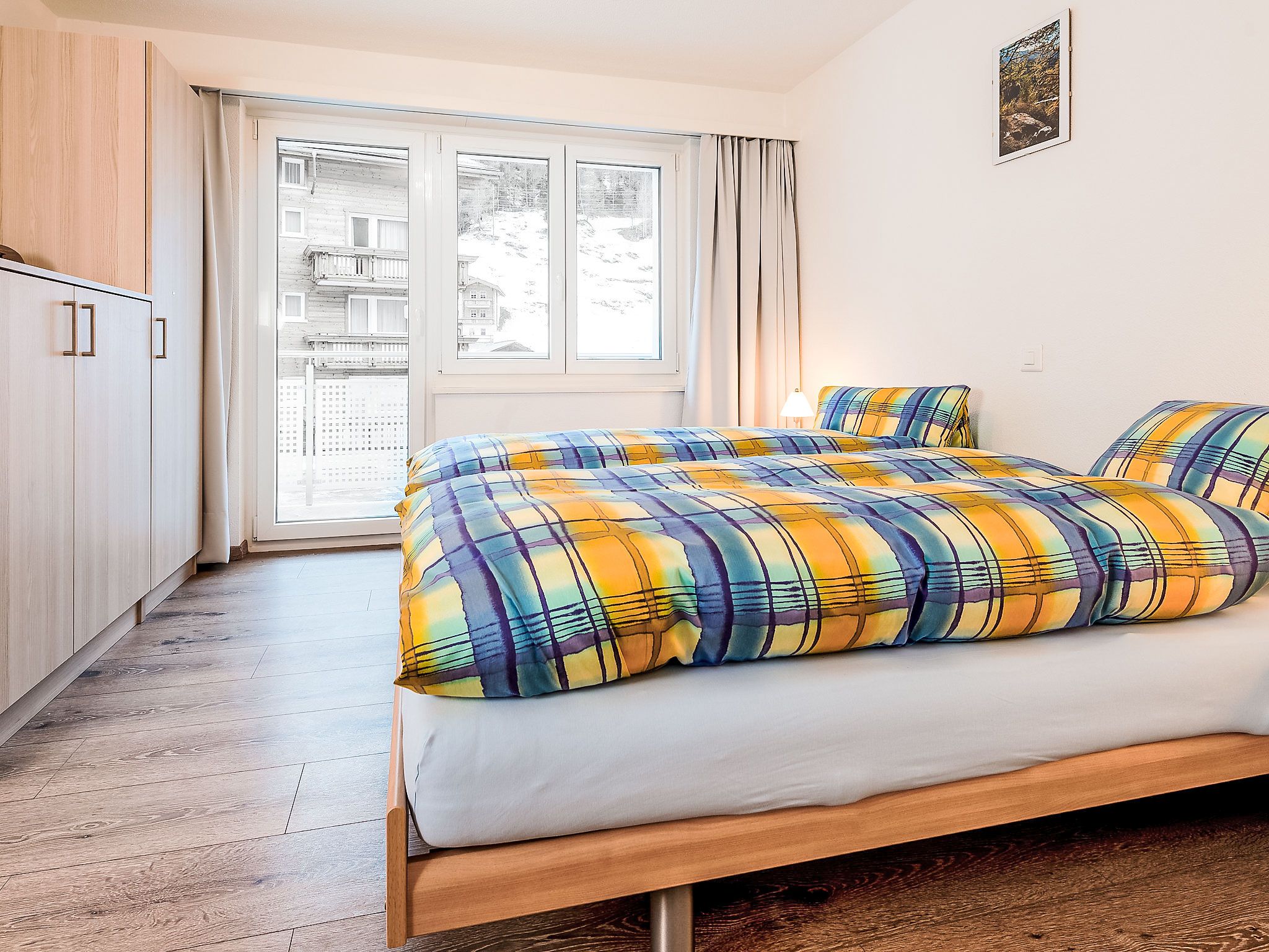4-Zimmer-Wohnung 105 m2 im 2. Stock. Renoviert im Jahre 2015, modern eingerichtet: Wohn-/Esszimmer mit Sat-TV und Radio. Ausgang zum Balkon, Richtung Süden. 1 Zimmer mit 2 Betten (90 cm, Länge 190 cm). Ausgang zum Balkon, Richtung Westen. 1 Zimmer mit 2 Betten. Ausgang zum Balkon, Richtung Süden. 1 Zimmer mit 2 Betten (90 cm, Länge 190 cm). Offene Küche (Backofen, Geschirrspüler, 4 Glaskeramikplatten, Toaster, Mikrowelle, elektrische Kaffeemaschine, Kapseln für die Kaffeemaschine (Nespresso) extra, Fondue Set (Käse)) mit Esstisch. Bad/WC, Dusche/WC. Bodenheizung. Balkon, Südlage und Westlage. Terrassenmöbel. Sehr schöne Sicht auf die Berge. Zur Verfügung: Babybett, Haartrockner. Internet (Wireless LAN, gratis). Parkplatz (1 Auto). Bitte beachten: Nichtraucher-Unterkunft. Maximal 1 Haustier/Hund erlaubt.