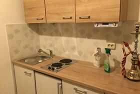 Wohn-Schlafzimmer, Küche extra, kleine Terrasse.