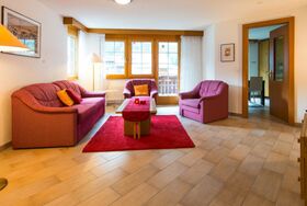 100 m2. Weitere Angaben des Anbieters: Das 1997 gebaute Mehrfamilienhaus Evita steht in sonniger und zentraler Lage, unmittelbar neben der Talstation der Bergbahnen Hohsaas AG, Skibushaltestelle nahe beim Haus. Die Wohnungen sind freundlich und gemütlich eingerichtet, alle mit TV und Radio, Geschirrspüler, Kaffeemaschine, geheizter Skiraum, Waschküche mit Münzwaschmaschine und-Trockner, Lift und Parkplatz beim Haus ergänzen das Angebot. Skifahren bis vor die Haustüre. 4 1/2 Zimmerwohnung mit 6 Betten, grosses Wohnzimmer, 3 Doppelschlafzimmer, komplet eingerichtete Küche mit Esstisch, Bad/WC, Dusche/WC, 2 Balkone, Lift, Parkplatz. Die Wohnung ist ausgestattet mit TV, Radio. Kurtaxe Sommer (01.06. - 31.10.): CHF 7.- für Erwachsene/Tag, CHF 3.50 für Kinder (6 - 15.99 Jahre). Kurtaxe Winter (01.11. -31.05.): CHF 4.50 für Erwachsene/Tag, CHF 2.25 für Kinder (6 - 15.99 Jahre). Endreinigung: Apartment 60 + 62 CHF 90.-, Apartment 61 CHF 100.-. Bettwäsche, Hand-und Geschirrtücher sind vorhanden.