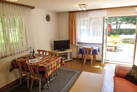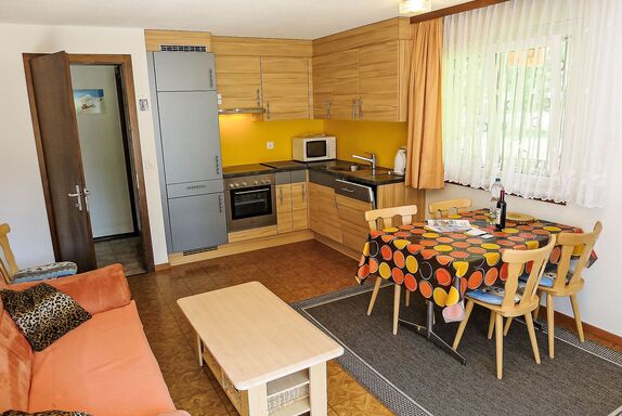 3-Zimmer-Wohnung 65 m2, im Erdgeschoss. Gemütlich eingerichtet: Wohn-/Esszimmer mit Sat-TV, Flachbildschirm und Radio. Ausgang zum Garten, zum Gartensitzplatz. 2 Doppelzimmer, jedes Zimmer mit 2 Betten und Waschbecken. Offene Küche (Backofen, Geschirrspüler, 4 Glaskeramikplatten, Mikrowelle). Dusche/WC. Grosser Gartensitzplatz. Gartengrill, Liegestühle. Sehr schöne Sicht auf die Berge und die Landschaft. Zur Verfügung: Babybett. Internet (WLAN, gratis). Parkplatz beim Haus. Bitte beachten: Nichtraucher-Unterkunft. Maximal 2 Haustiere/Hunde erlaubt.
