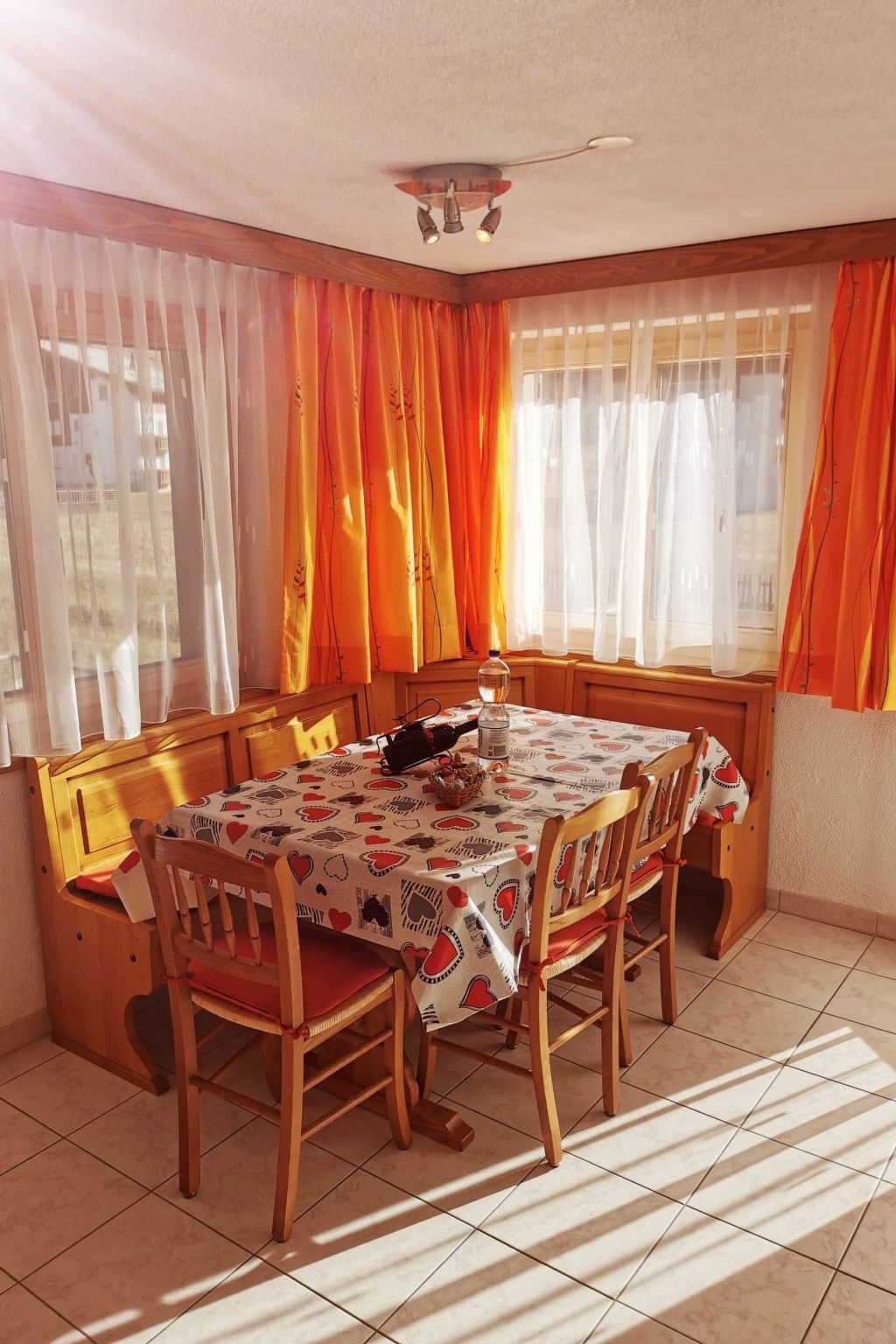 90 m2. Weitere Angaben des Anbieters: Das Haus befindet sich direkt am Flussbett der schönen Saaservispe am Eingang von Saas-Grund. Es ist ruhig und sonnig gelegen. Park befindet sich direkt vor dem Haus. Auf der grossen Terrasse an der Südseite des Hauses, kann man mit Hilfe der tollen Sonneneinstrahlungen täglich wieder Energie tanken. Der perfekte Ort um sich zu erholen! Bushaltestelle ist in weniger als 100 m erreichbar. Die Wohnung befindet sich im ersten Stock. Sie verfügt über 3 Schlafzimmer sowie einem Wohn/Esszimmer und eine grosse voll ausgestattenen Küche und 2 Badezimmern. 2 Schlafzimmer mit je einem Doppelbett von den Massen 180cm x 200cm 1 Schlafzimmer mit 2 Einzelbetten von je 90cm x 200cm 1 Badezimmer mit WC/Dusche 1 Badezimmer mit WC/Badewanne 1 grosse Terrasse auf der Südseite 1 kleiner Balkon auf der Ostseite 1 Balkon auf der Westseite Im Mietpreis inbegriffen sind die Bett-, Bad- und Küchenwäsche, sowie die Nebenkosten wie 1 Parkplatz, Strom, Heizung und Warmwasser. Zusätzliche Kosten: Kurtaxe Sommer (01.06. - 31.10.): CHF 7.- für Erwachsene/Tag, CHF 3.50 für Kinder (6 - 15.99 Jahre). Kurtaxe Winter (01.11. -31.05): CHF 4.50 für Erwachsene/Tag, CHF 2.25 für Kinder (6 - 15.99 Jahre).