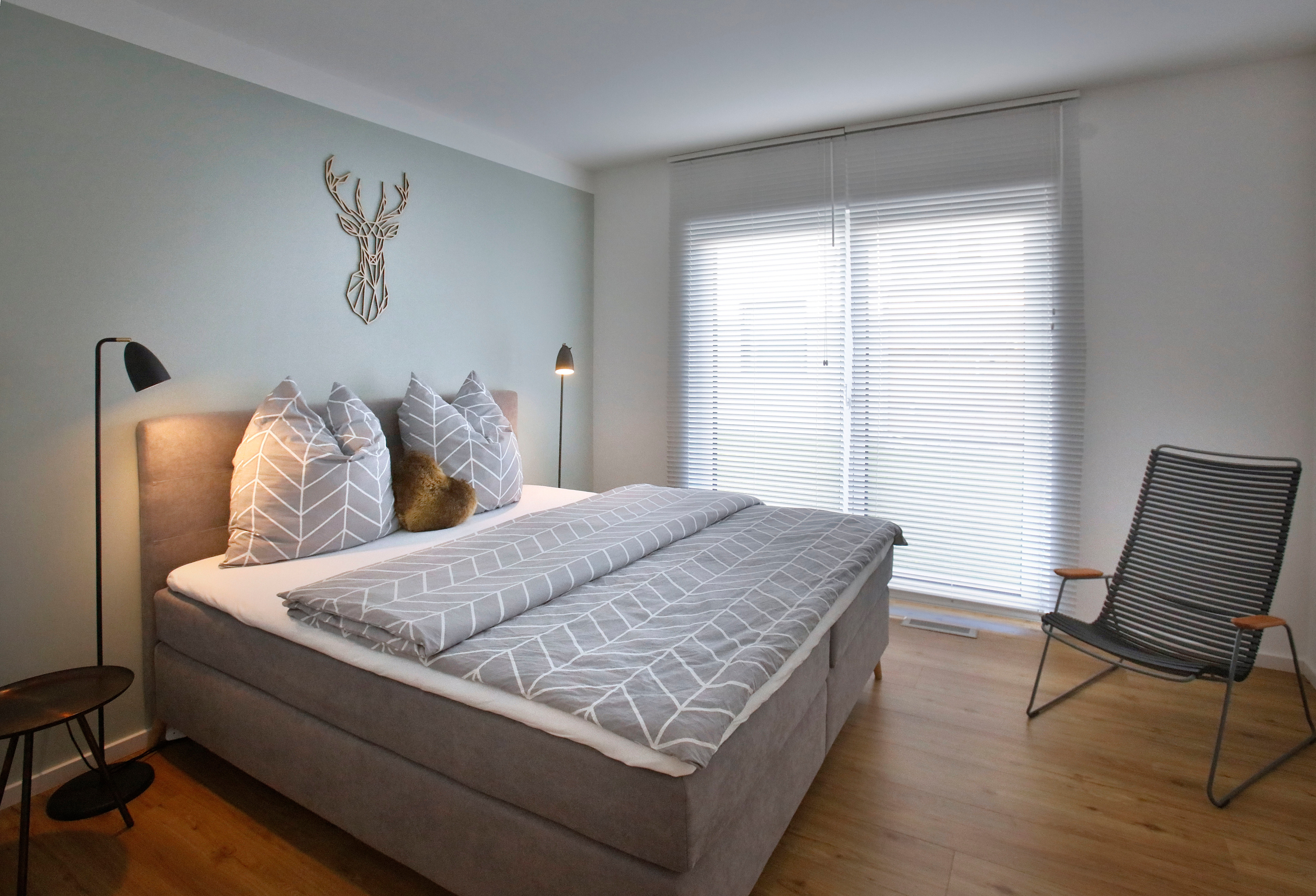 - Zwei Eltern-Schlafzimmer mit Boxspringbetten (183 cm B x 213 cm L)