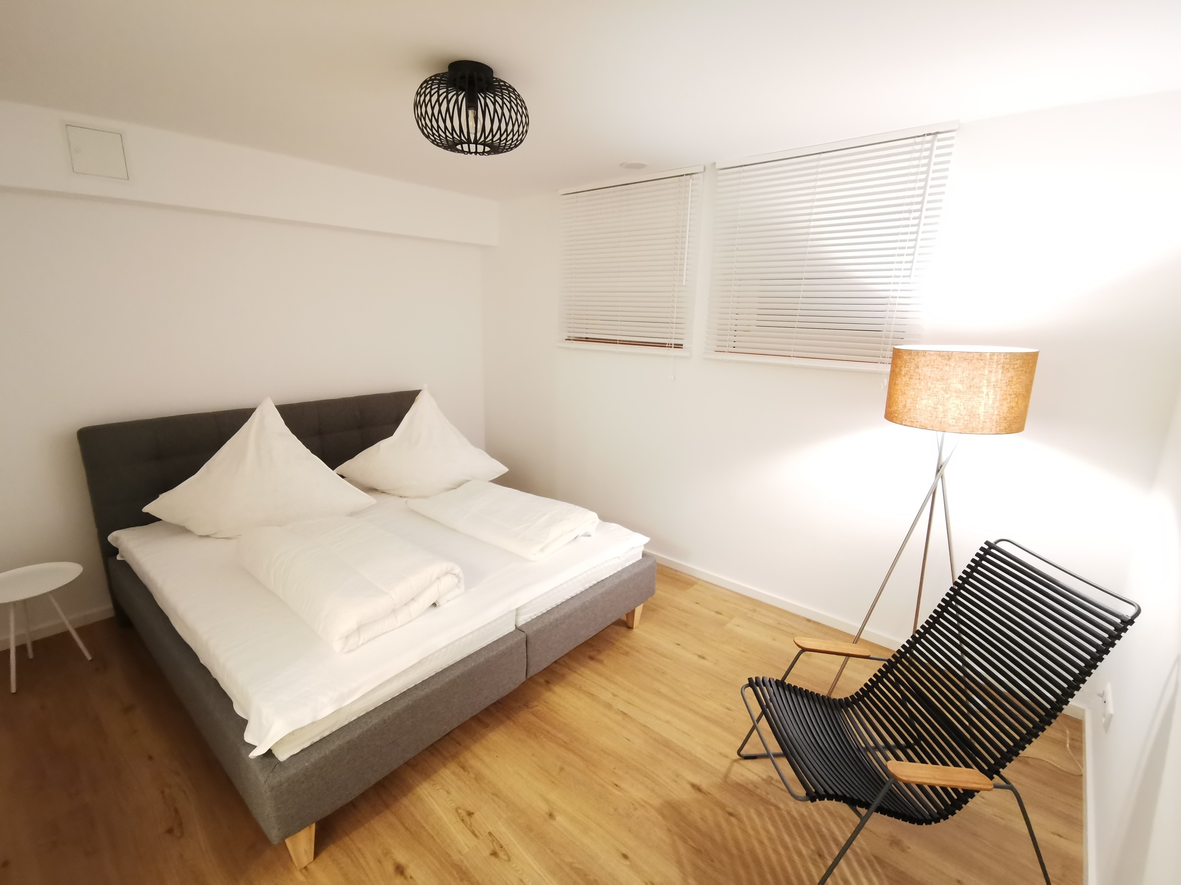 - Ein Schlafzimmer im Souterrain mit einem Doppelbett und einem Stockbett (Ideal auch als Kinderzimmer)