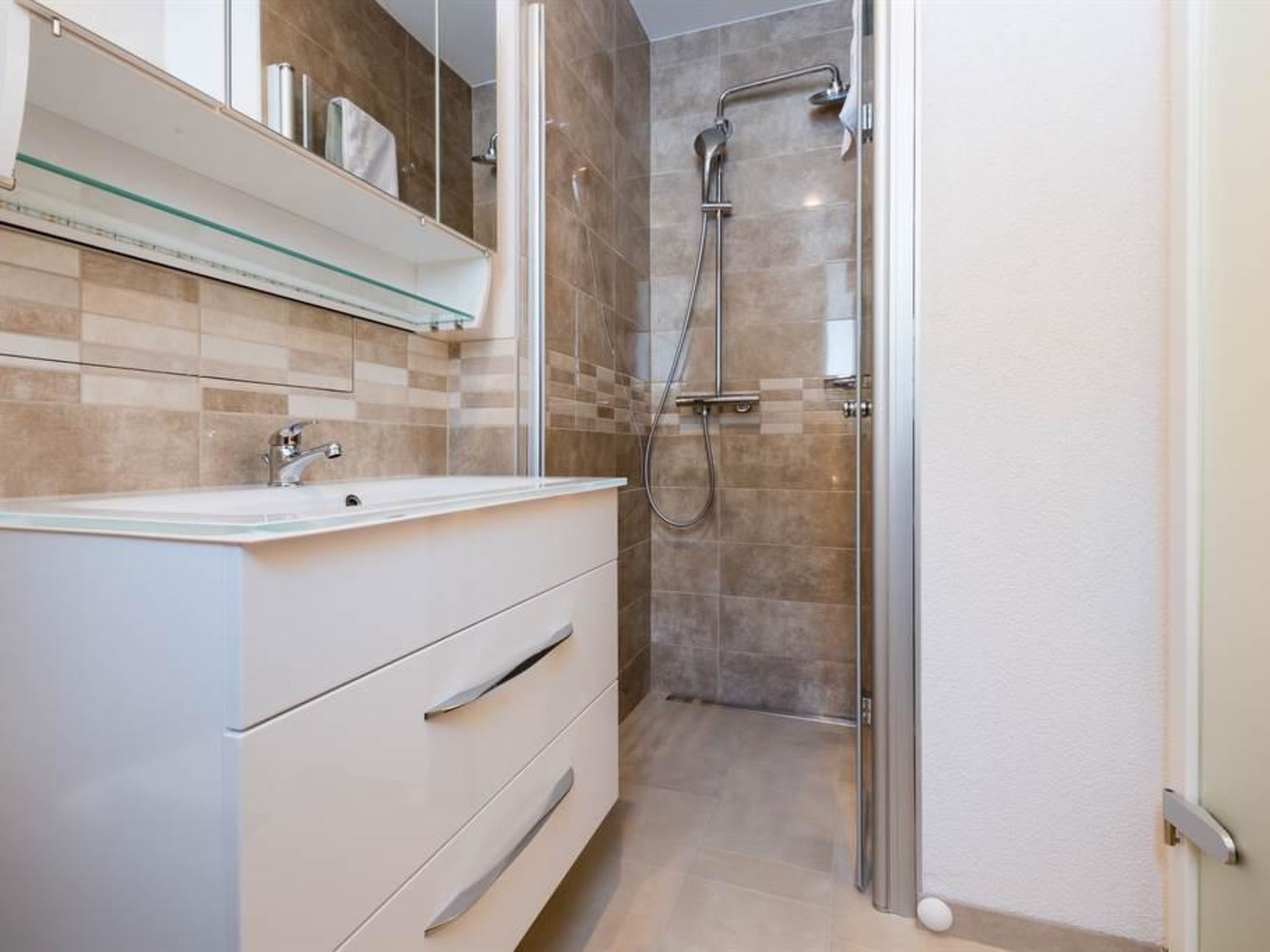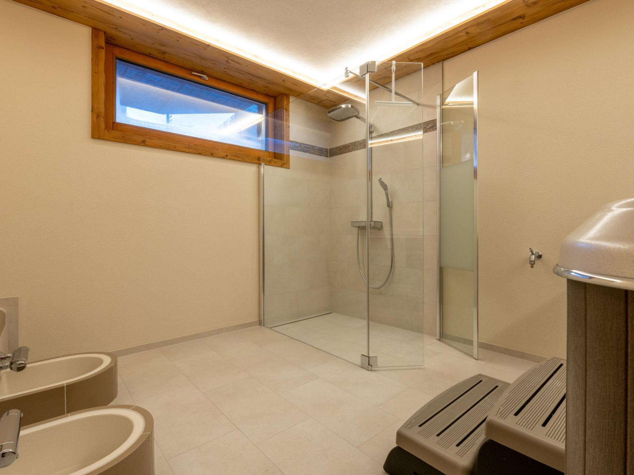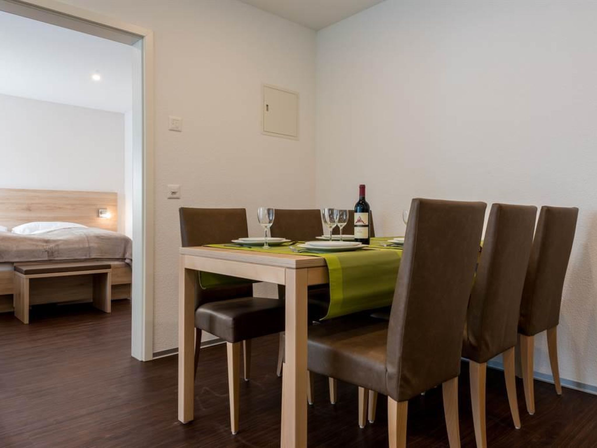 92 m2. Weitere Angaben des Anbieters: Das Apartmenthaus Alpenrose mit Wellness und Fitnessanlage in Saas-Almagell bietet Unterkünfte zur Selbstverpflegung an. Es liegt im nördlich Dorfteil in unmittelbarer Nähe zur Hauptstrasse. Im Kellergeschoss befinden sich die Lounge und Wellnessanlage, sowie Fitnessraum und die Waschküche. Im Erdgeschoss sind der Ski- und Schuhraum und sowie 2 Wohnungen und im 1. Obergeschoss hat es weitere 2 Wohnungen. Im Dachgeschoss gibt es weitere 2 Wohnungen. Das Haus hat einen Personenaufzug. Alle Wohnungen haben Fussbodenheizung. Jedes der geräumigen Apartments verfügt über einen Balkon, eine Küche, Schlafzimmer sowie jeweils Schlafzimmer mit eigenem WC/Dusch Restaurants und Lebensmittelgeschäfte erwarten Sie nur 300 m von der Unterkunft entfernt. Von der Bahnstation, der Natureisbahn und den Tennis-/Fussballplätzen trennen Sie 500 m. Zur Bushaltestelle mit Anbindung an das 4 km entfernte Saas Grund und Saas Fee gehen Sie 100 m. Die Ortschaft Visp befindet sich 30 km entfernt. Freie Benutzung der Fitness- und Wellnessanlagen Komfortable 4-Zimmerwohnung für 6 Personen im Erdgeschoss Ost 3 Doppelschlafzimmer mit WC und Dusch, Wohn-/Essraum mit Küche und Balkon, Radio, Flachbildfernseher, Swisscom-TV, WLAN, Internet, modern eingerichtete Küche mit Backofen mit Mikrowelle, Induktionskochfeld, Geschirrwaschmaschine, Kühlschrank, Kaffeemaschine, Fonduegeschirr, Racletteofen etc. Kurtaxe: CHF 7.00 für Erwachsene, CHF 3.50 für Kinder/Tag* im Sommer Kurtaxe: CHF 4.50 für Erwachsene, CHF 2.25 für Kinder/Tag* im Winter Bett-, Küchen- und Badezimmerwäsche sowie die Nebenkosten für Strom, Wasser Heizung, etc. sind im Preis inbegriffen. Für ein Zusatzbett werden CHF 100.00 berechnet. Parkplatz gegen eine kleine Gebühr * Mit der Bezahlung der obligatorischen Kurtaxe (nich im Preis inbegriffen) erhalten Sie bei uns direkt bei Ankunft die attraktive SaastalCard Ihre Ferienfreiheit im Saastal ist und bleibt damit grenzenlos!