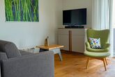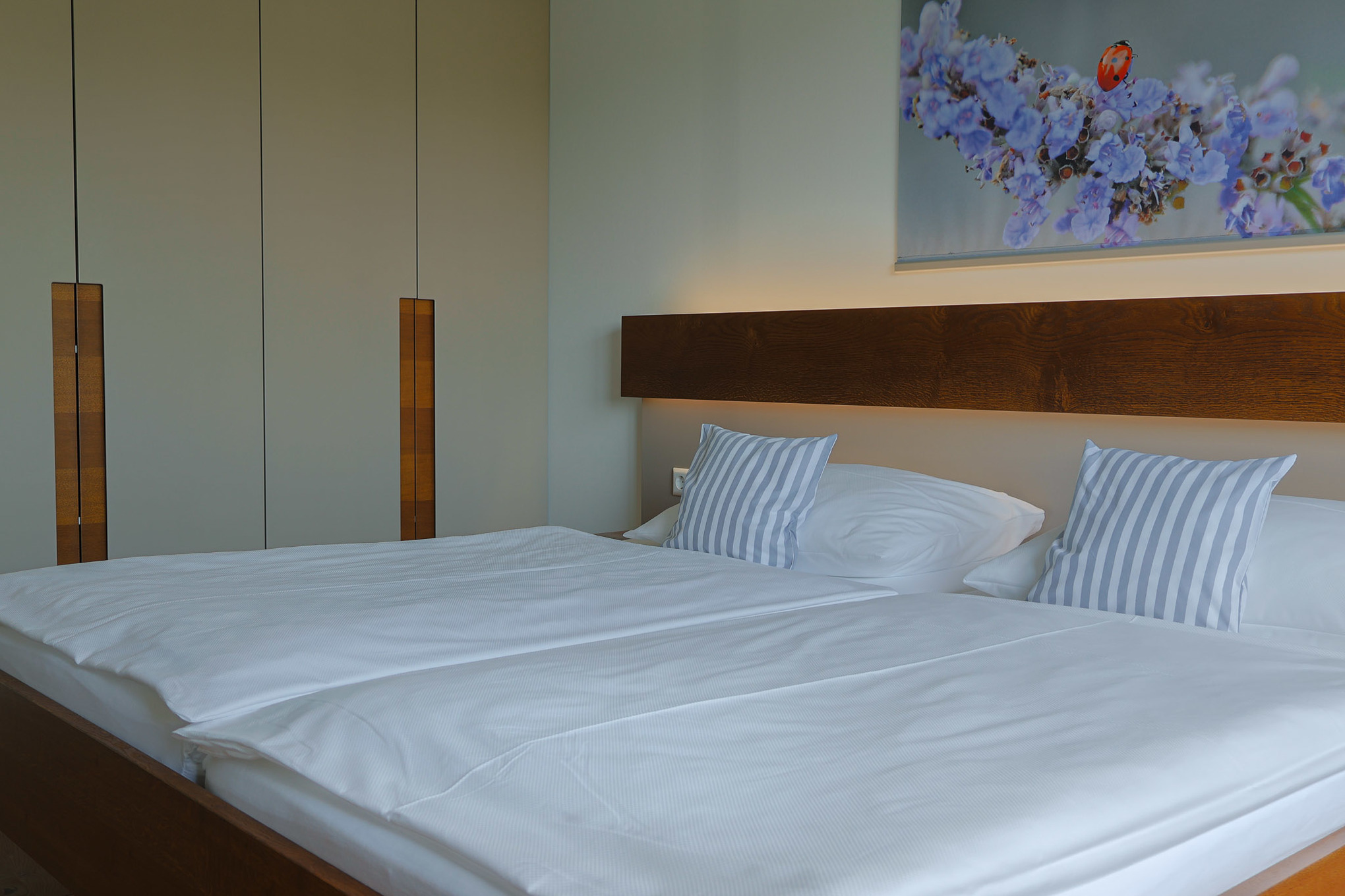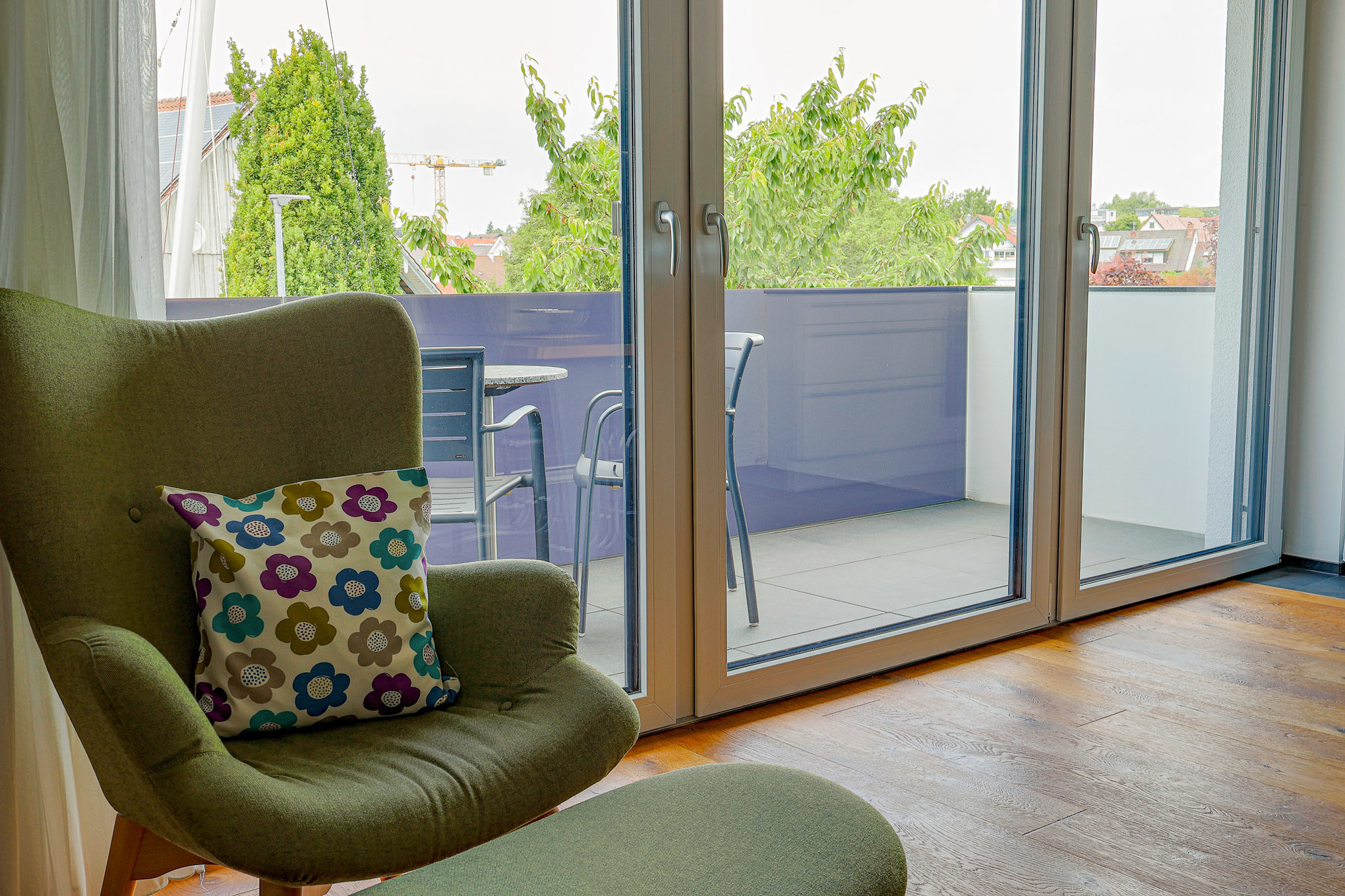 Friedrichshafen hat einen Balkon von ca 7 qm der ein tolles See- und Obstbaumpanorama mit Dorfblick bietet. Der offene Wohn- Essbereich mit Einbauküche, Schlafzimmer mit 200×200 cm Bett und das Bad mit einer Dusch-Badewanne, haben eine Wohnfläche von ca. 55qm. Für 4 Personen Belegung kann das Sofa im Wohnbereich mit einem Handgriff in ein Bett, mit separater Matratze 160×200 cm, umgeklappt werden. 2 TV Geräte, Bose Sound-Kompaktanlage, geölte Holzparkettböden und individuelle Möbel vom Schreiner bieten ihnen Urlaub pur.